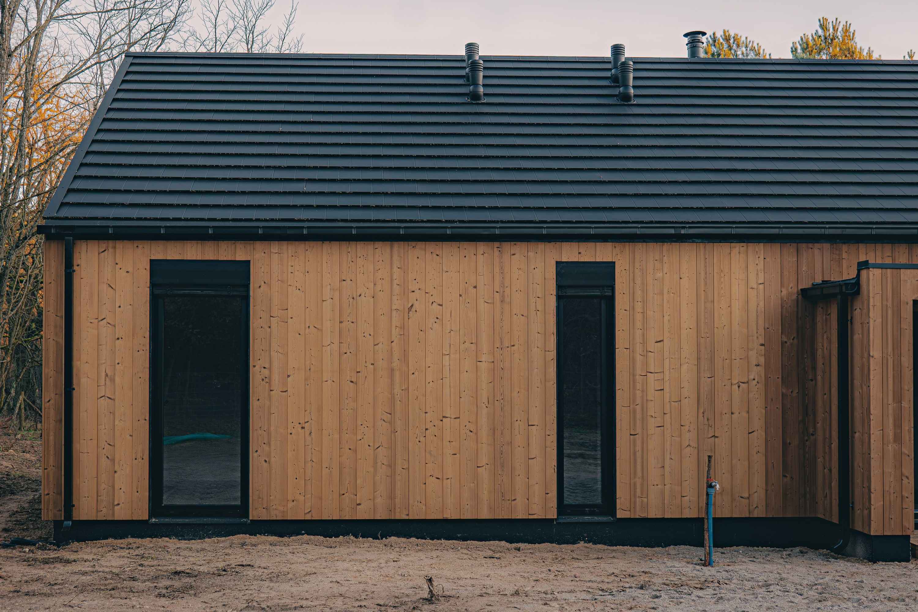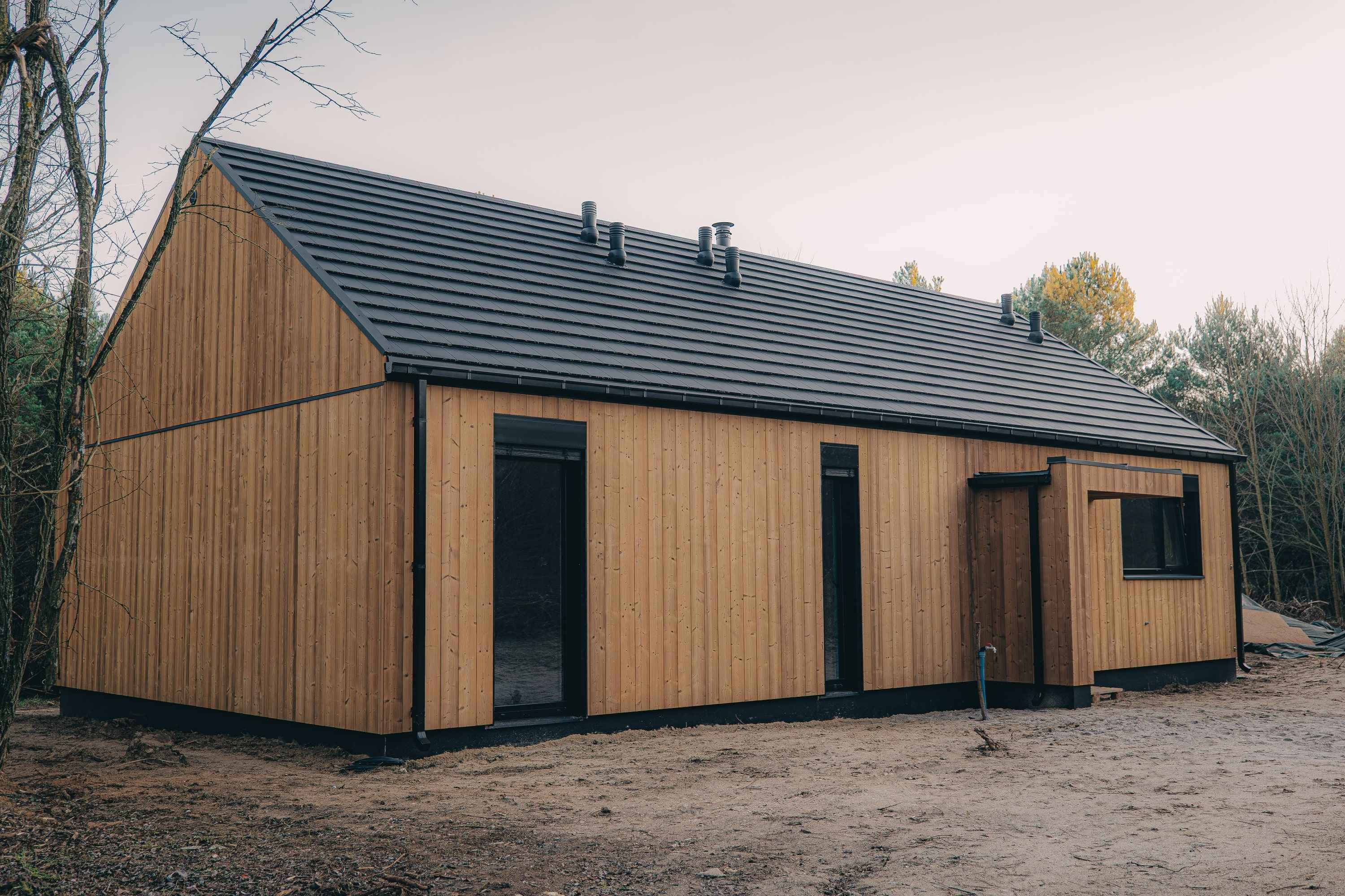 Grand House 90 to dom, który nie próbuje imponować na siłę. Jego siła tkwi w prostocie, proporcjach i funkcjonalności dopasowanej do codziennych potrzeb. Parterowa bryła inspirowana stylem nowoczesnej stodoły łączy współczesną estetykę z wygodą użytkowania, tworząc przestrzeń idealną do życia dla czteroosobowej rodziny.