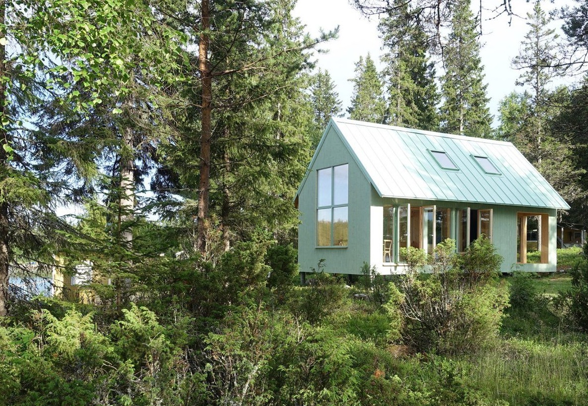 Choć w Szwecji wiele wiejskich domów i stodół malowanych jest na charakterystyczny czerwony kolor, w archipelagu Luleå na północy kraju nie istnieją historyczne dowody na stosowanie tej barwy. Architekci z pracowni Bornstein Lyckefors zdecydowali się więc nadać nowemu budynkowi własną tożsamość, dopasowaną do surowego krajobrazu wyspy Kallaxön. Projekt, który można odczytywać jako nowoczesną stodołę inspirowaną lokalną architekturą, otrzymał wapienny, zielony kolor elewacji harmonizujący z iglastym lasem i trawiastym otoczeniem. Sosnowa konstrukcja, cofnięty ganek w naturalnym drewnie oraz dach z oksydowanej miedzi tworzą spójną bryłę, która subtelnie wtapia się w krajobraz i zachowuje podrzędny charakter wobec przyrody.