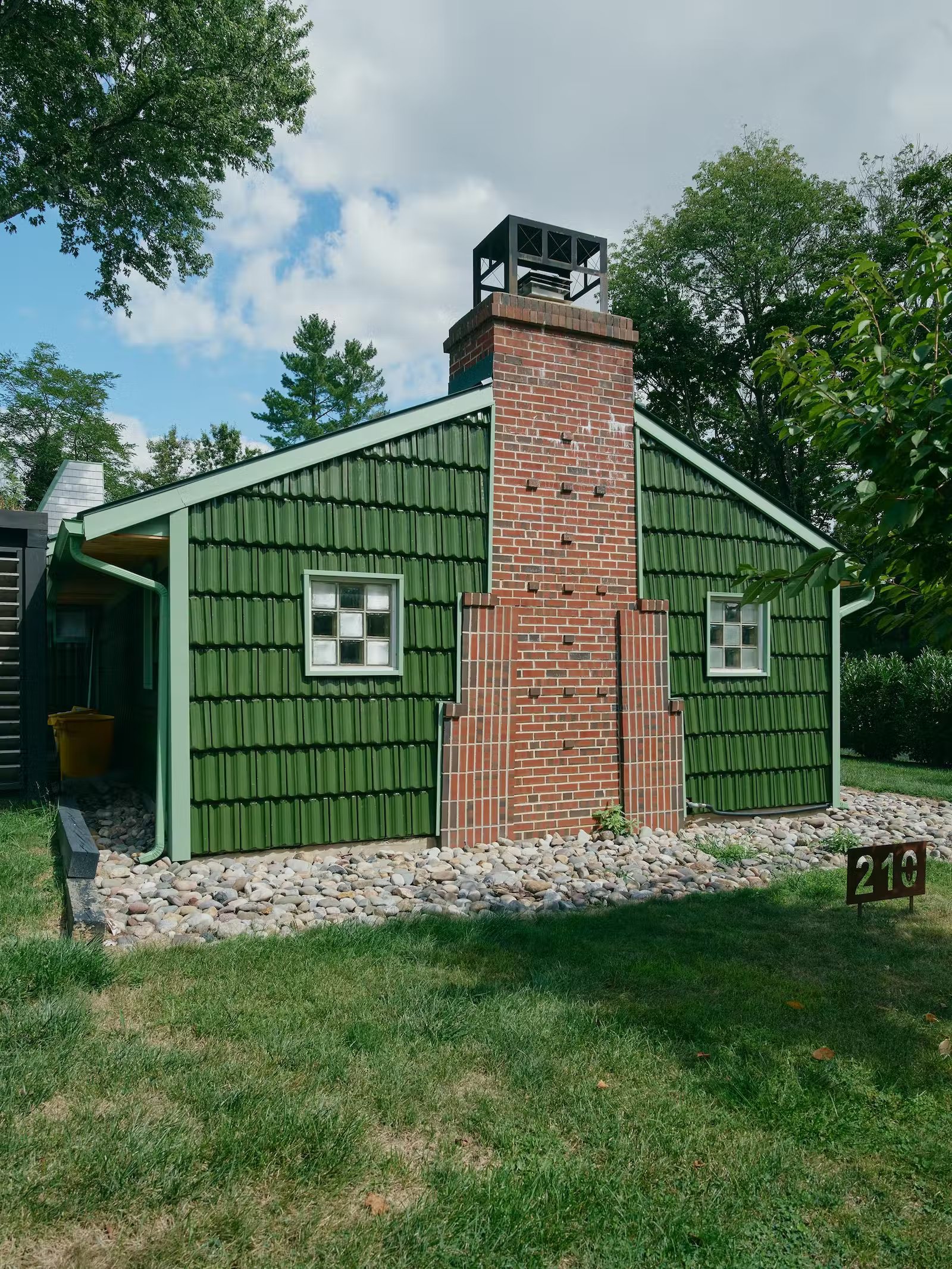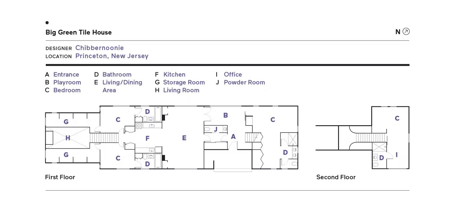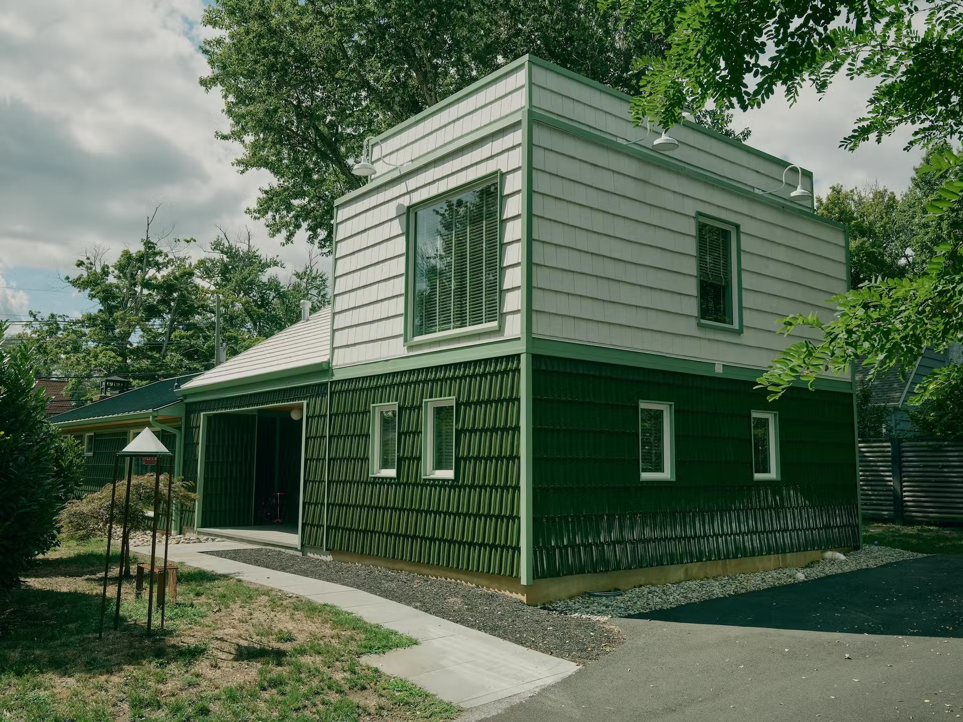 W 2016 roku David i Rachel Mostafavi natrafili na wyjątkowy dom – Green Tile House w Princeton, New Jersey. Zbudowany z prefabrykatów w latach 50., a powiększony w 1986 roku przez lokalnego projektanta Kevina Wilkesa, dom wyróżniał się charakterystyczną zieloną dachówką i nietypową bryłą. Podczas gdy typowe domy deweloperskie w Edison nie miały unikalnego charakteru, Green Tile House od razu przyciągnął uwagę Davida. Mimo sceptycyzmu Rachel para wprowadziła się do domu w lipcu 2016 roku. Z czasem pojawiła się potrzeba większej przestrzeni – po narodzinach córki Violet i częstych wizytach rodziny Mostafavisowie zdecydowali się na rozbudowę, łącząc postmodernizm lat 80. z nowoczesną architekturą.