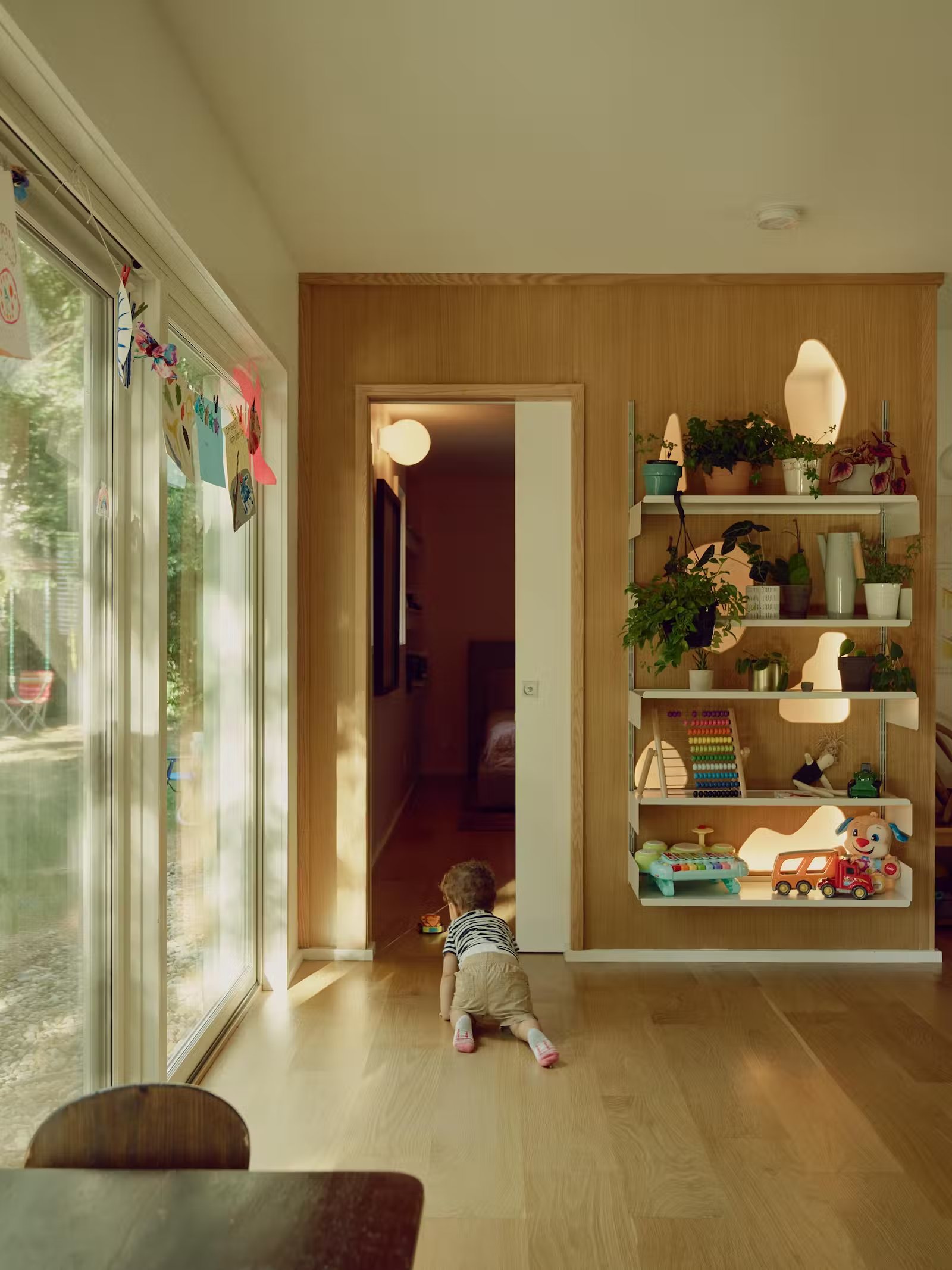 Najbardziej charakterystycznym elementem Green Tile House pozostał monumentalny komin z lat 80., który wznosi się ponad dwie kondygnacje. Rozbudowa wprowadziła nowe akcenty – taras na dachu z widokiem na park dla psów, przeszklone wnętrza oraz elastyczne przestrzenie do pracy i wypoczynku. Z zewnątrz uwagę przyciąga zielona dachówka zestawiona z białą terakotą, zastępującą część cedrowych gontów. Efekt jest odważny i nietuzinkowy – dokładnie taki, jakiego oczekiwali właściciele. Green Tile House w Princeton to dziś przykład, jak można przeobrazić dom z historią w unikalną, nowoczesną przestrzeń mieszkalną, która nie tylko spełnia potrzeby rodziny, ale też przyciąga wzrok sąsiadów i przechodniów.