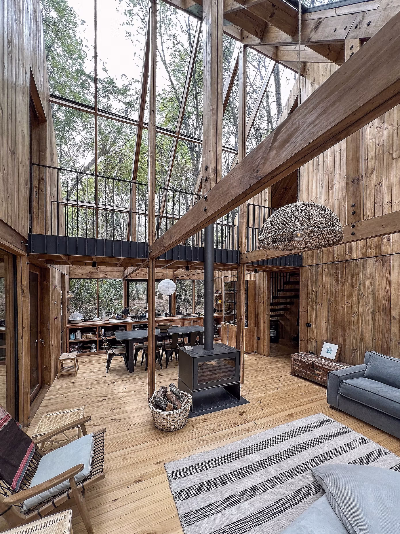 Budynek ma dwie kondygnacje, co pozwala ograniczyć powierzchnię zajętą przez zabudowę i zminimalizować wpływ na naturalne otoczenie. Projekt harmonijnie łączy nowoczesną architekturę z unikalnym pięknem lasu dębowego w Andach, oferując mieszkańcom wyjątkowe doświadczenie życia w zgodzie z naturą.