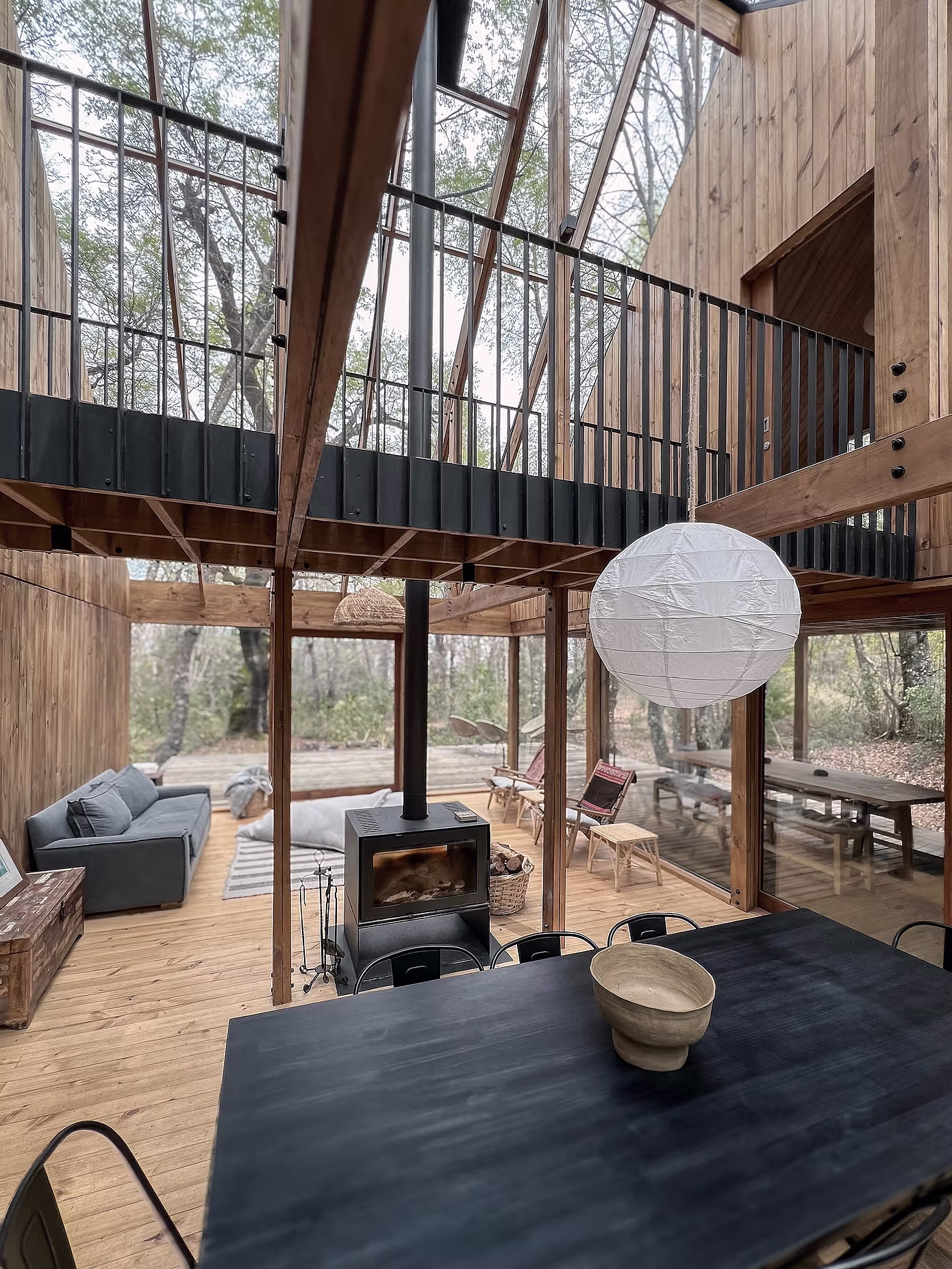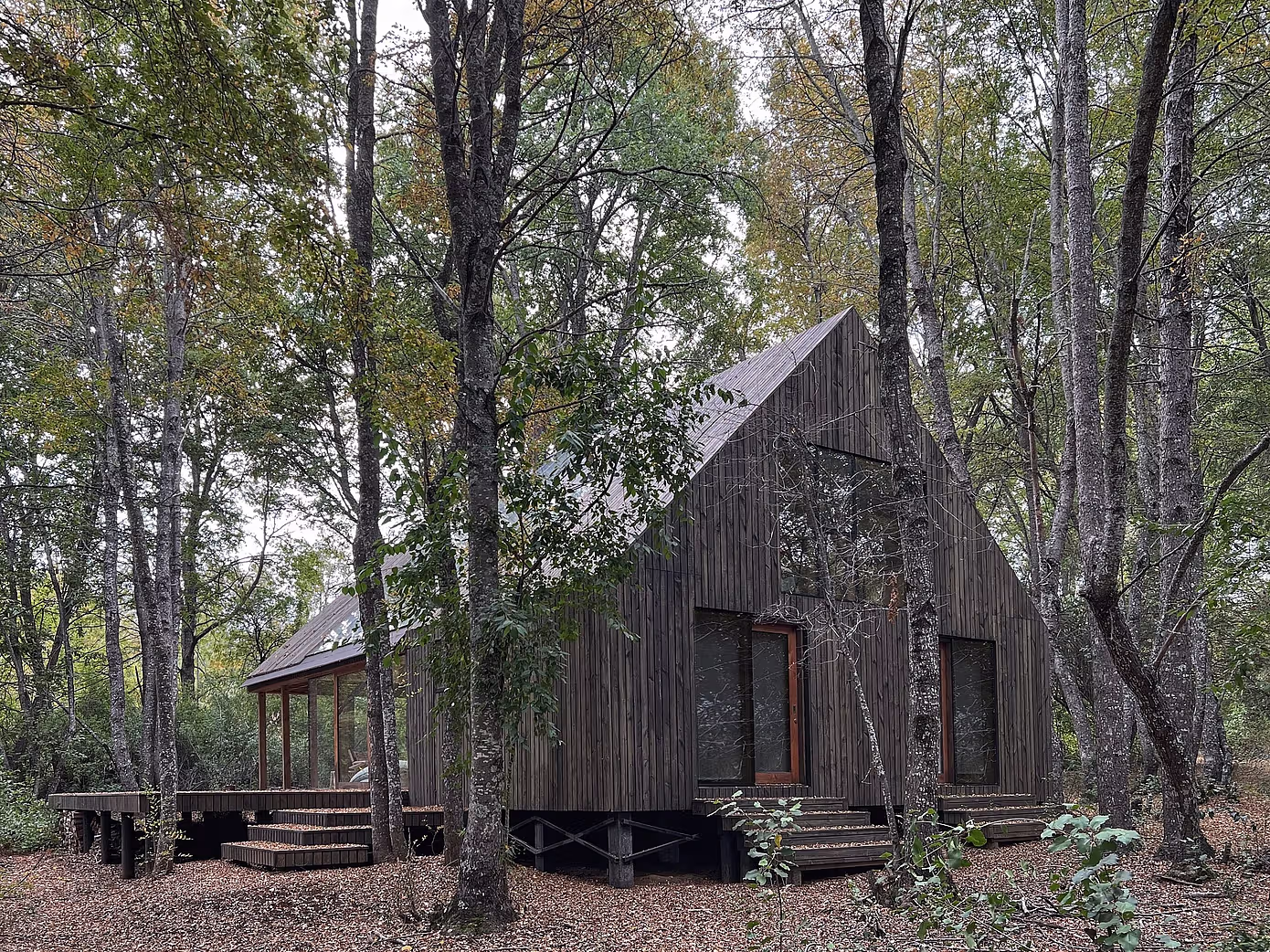 Posesja znajduje się w lesie dębowym na wysokości około 950 m n.p.m., gdzie temperatura nigdy nie jest zbyt wysoka. Dęby, jako drzewa liściaste, sprawiają, że krajobraz zmienia się dynamicznie przez cały rok. Cykl roczny barw i światła w lesie tworzy spektakl, który wciąga mieszkańców w kontakt z naturą. Ta wyjątkowa sceneria stała się inspiracją do stworzenia całkowicie przeszklonego wnętrza, które pozwala podziwiać las w pełnej krasie – od jego poziomych przestrzeni po pionowe korony drzew – bez ryzyka przegrzania wnętrza.
