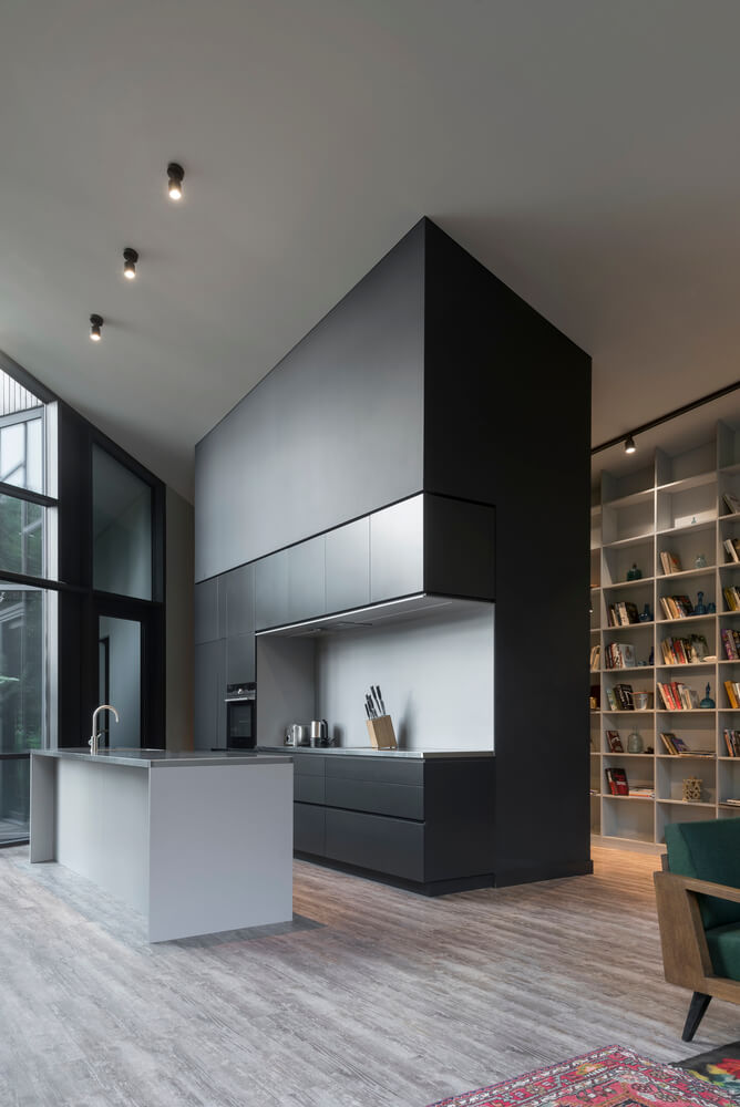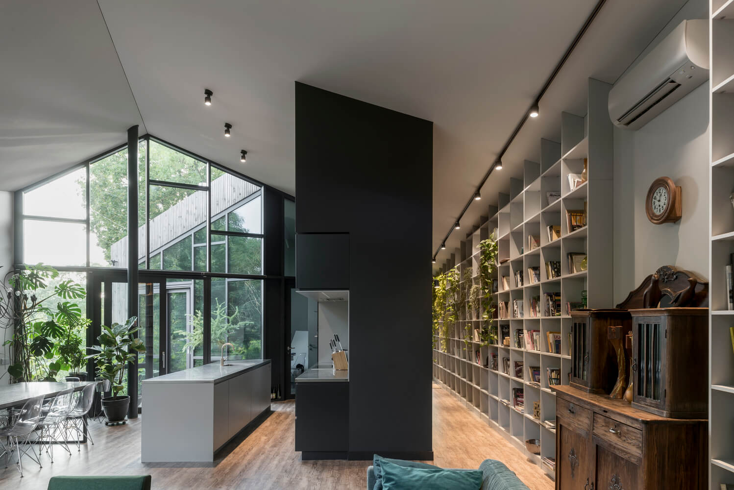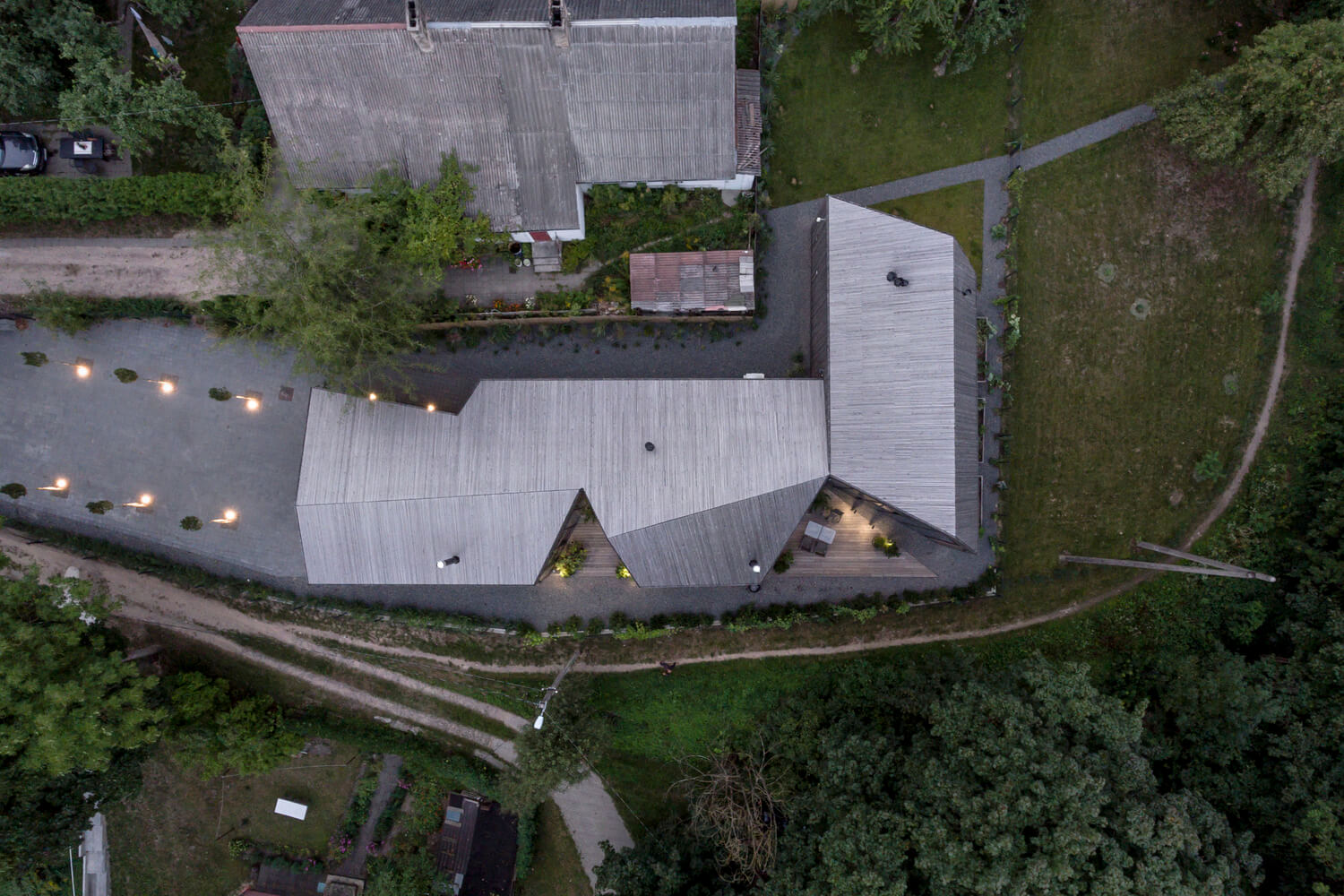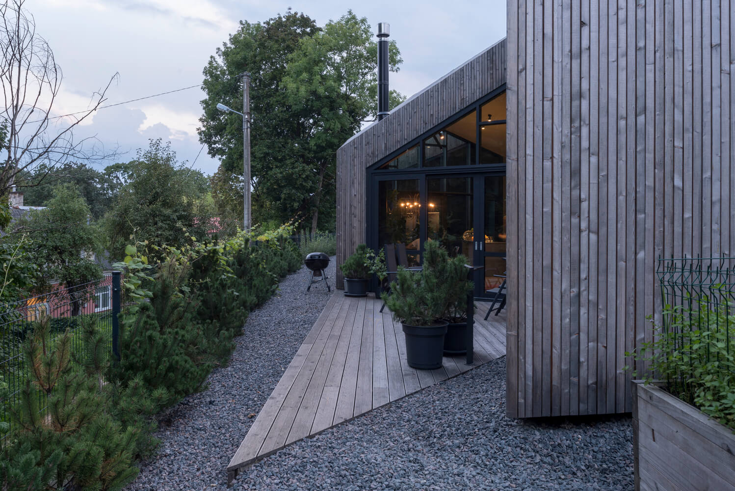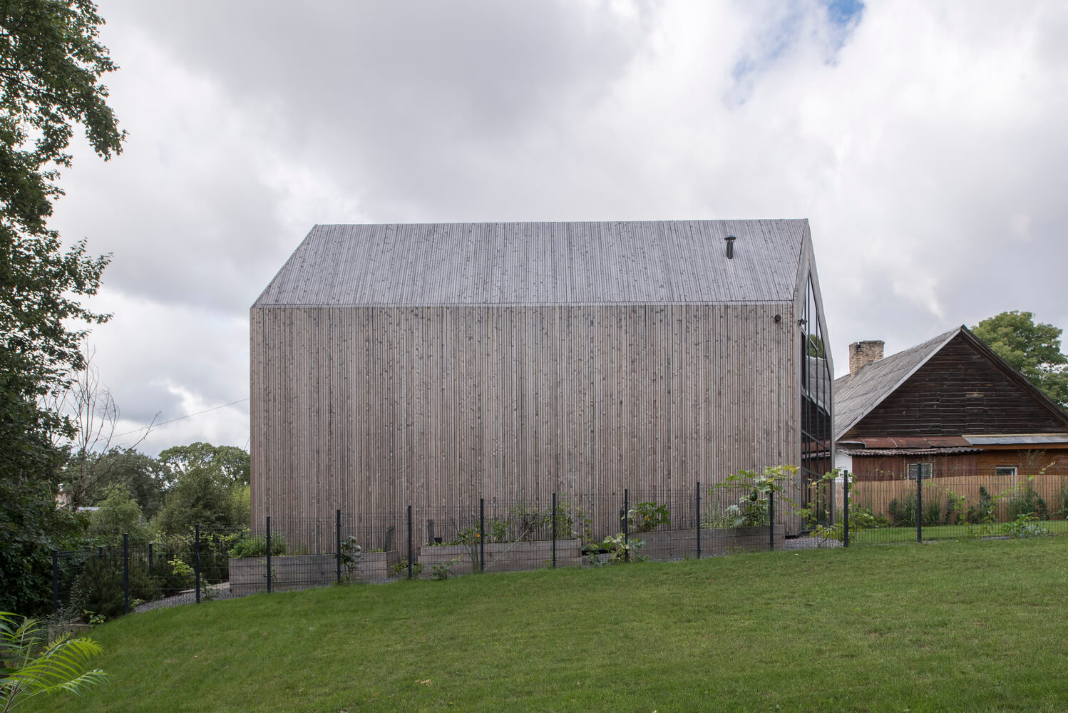 Niestandardowa działka w kształcie litery L, zlokalizowana w sercu Wilna – stolicy Litwy, wyróżnia się niezwykłym charakterem. Choć miejsce to tętni życiem wielkiego miasta, emanuje atmosferą małego miasteczka. Klientem projektu był jeden z najbardziej znanych litewskich projektantów, reprezentujący artystyczną społeczność, co postawiło architektów przed wyjątkowym wyzwaniem.