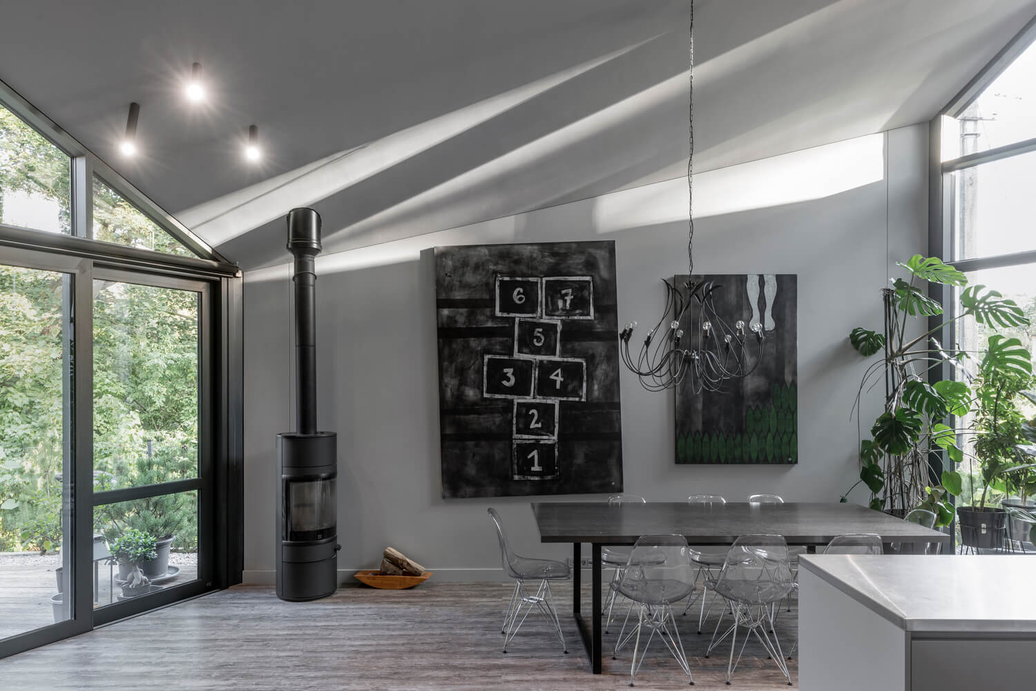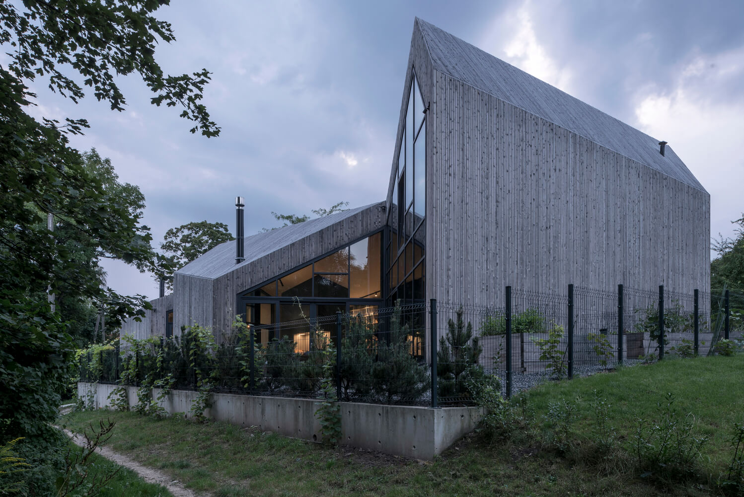 Społeczność artystyczna marzyła o unikalnym projekcie domu, który harmonijnie wkomponuje się w małomiasteczkowy kontekst i jednocześnie spełni wymogi dziedzictwa kulturowego. Wyzwaniem było sąsiedztwo historycznego i kulturalnego obiektu – starego cmentarza Bernardynów. W efekcie powstał projekt przypominający nowoczesną stodołę, która zachwyca ostrymi, geometrycznymi formami i subtelną, minimalistyczną kolorystyką.