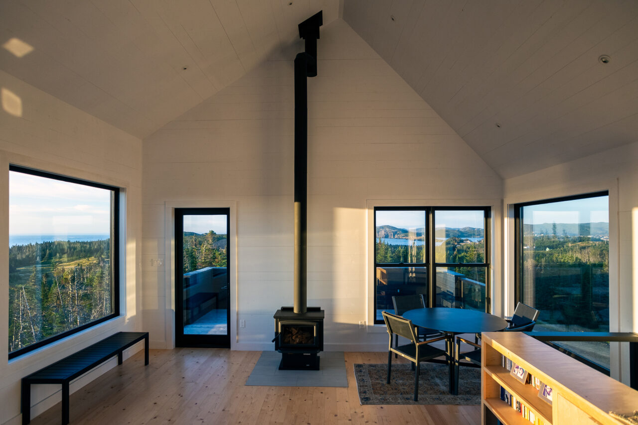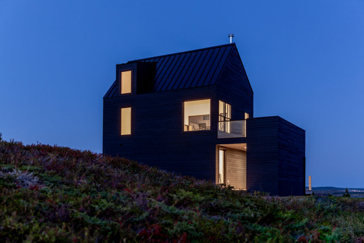 Halfway Hill House to kompaktowy, dwupiętrowy dom w stylu nowoczesnej stodoły, zlokalizowany na malowniczym zboczu w Port Rexton, na półwyspie Bonavista w Kanadzie. Powierzchnia budynku to zaledwie 88 m², jednak dzięki przemyślanej konstrukcji i lokalizacji oferuje on maksymalne wykorzystanie przestrzeni oraz spektakularne widoki na ocean i latarnię morską Trinity.
