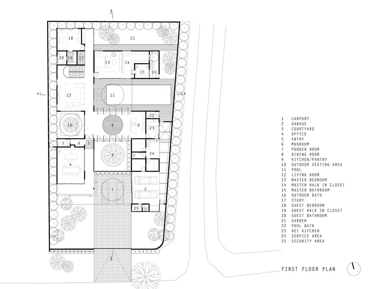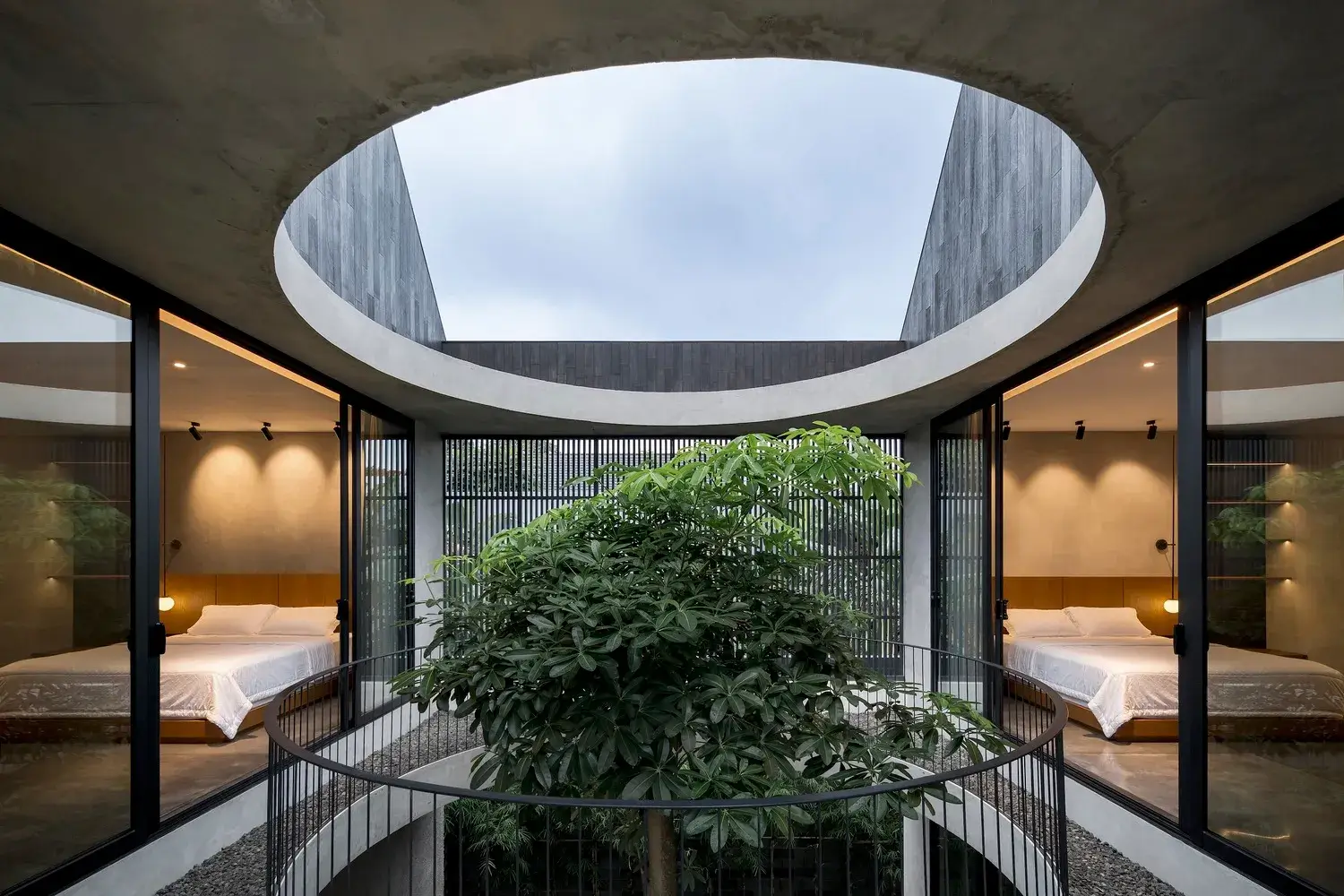 Położony w cichej okolicy w spokojnej dzielnicy Semarang, Halo House przybiera formę współczesnej, czarnej stodoły. Zaaranżowano ją w odniesieniu do lokalizacji istniejących drzew na miejscu, przy jednoczesnym zastosowaniu pasywnego projektu domu.