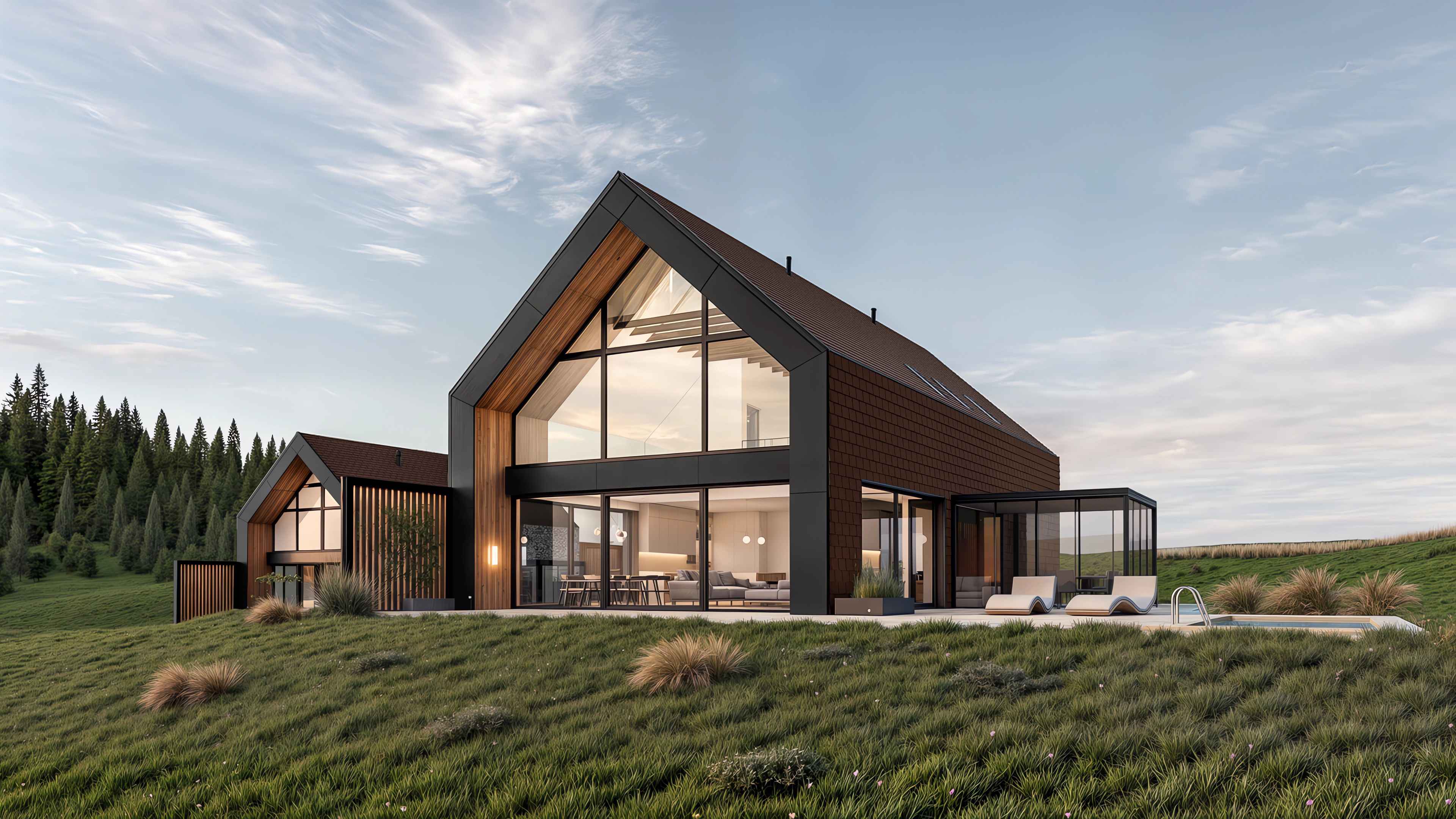 Projekt łączy prostotę formy, minimalizm i szlachetność detalu, tworząc przestrzeń, w której natura i architektura współistnieją w idealnej równowadze. To więcej niż miejsce wypoczynku — to doświadczenie spokoju i harmonii, jakie daje życie wśród natury, w domu, który naprawdę jest z widokiem.