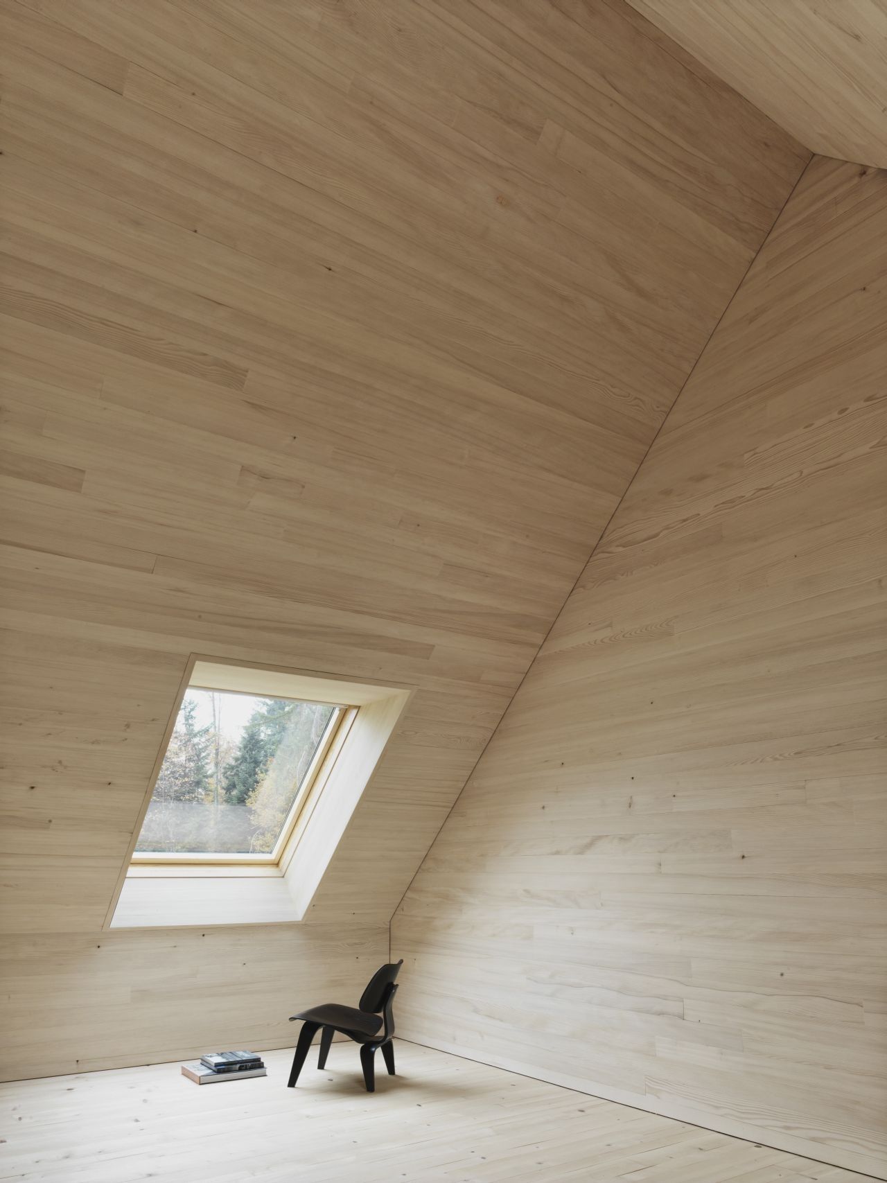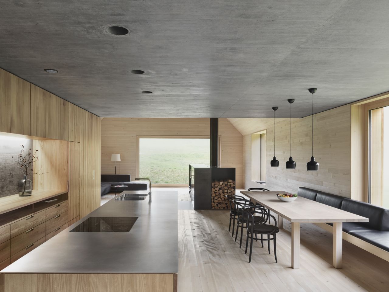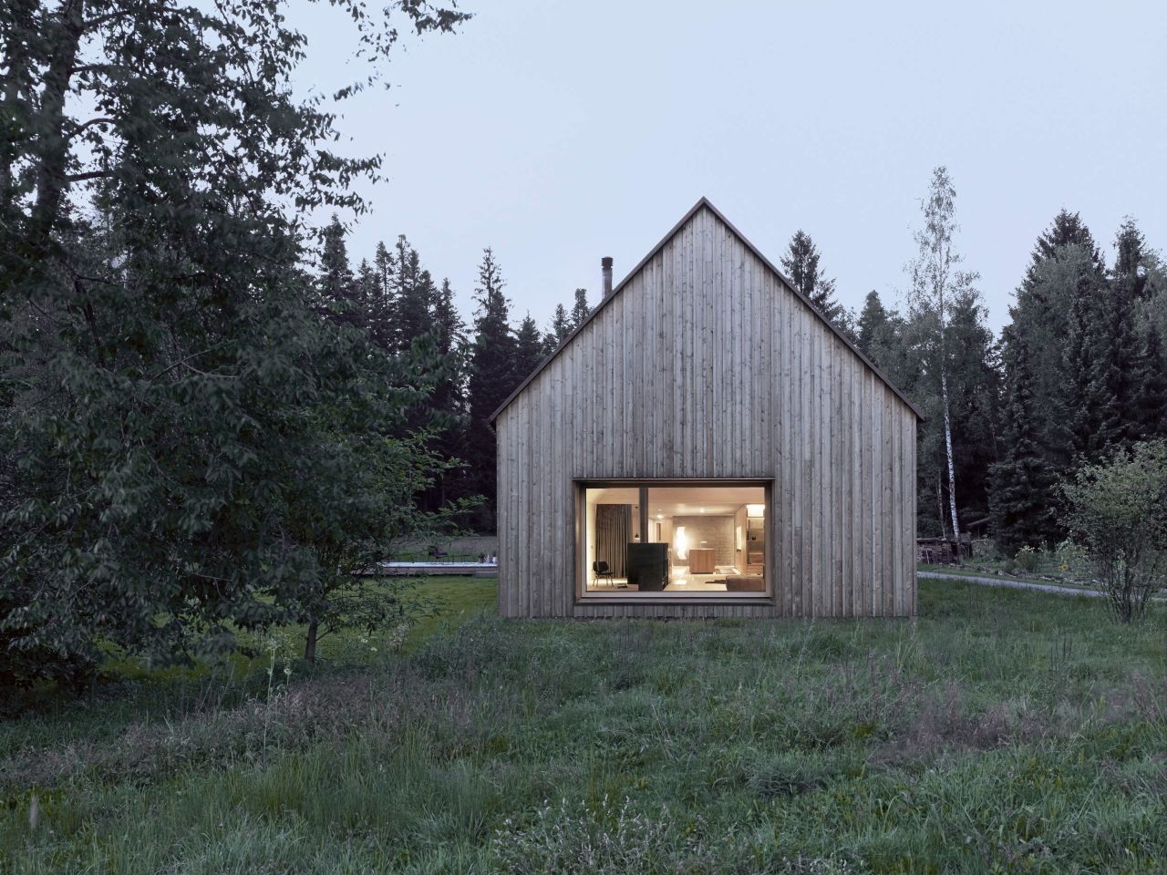 Firma Bernardo Bader Architects wykorzystała lokalnie pozyskiwane drewno świerku, jodły i wiązu, by wykończyć w środku i na zewnątrz ekologiczny dom. nowoczesna stodoła stoi w Vorarlberg w Austrii, a projekt bazuje na tradycyjnych domach, jakie można znaleźć w rejonie Bregenz. To dwupiętrowy dom na prostym, prostokątnym planie ze stromym, dwuspadowym dachem, stojący na drewnianym tarasie.Austriackie studio architektoniczne wykorzystało 60 drzew, by wyprodukować całe drewno, które miało być wykorzystane w tym domu z ograniczeniem drewnianych odpadów do minimum. Drewno wykorzystano nie tylko na ścianach, ale też na podłogach i do produkcji drzwi oraz niektórych mebli.