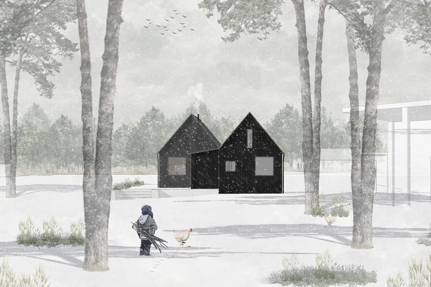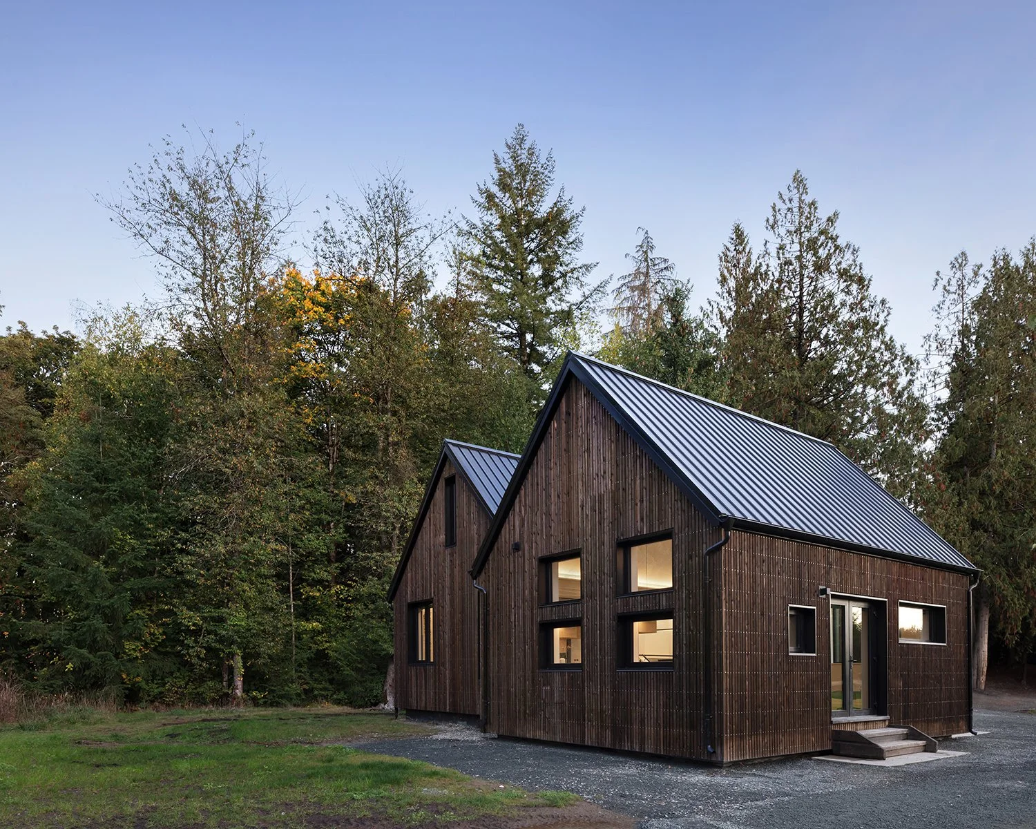 Heimaklettur House, czyli „Dom Skała Domowa”, powstał w Langley w Kolumbii Brytyjskiej na pięcioakrowej działce wpisanej do Agricultural Land Reserve (ALR). Teren przecina strumień Williamson Creek, dzieląc go na północną część z lasem i mokradłami oraz południową – przeznaczoną pod uprawy. Projekt został starannie osadzony w kontekście miejsca, z uwzględnieniem nasłonecznienia, cienia rzucanego przez istniejące drzewa oraz dominujących kierunków wiatru w dolinie.
