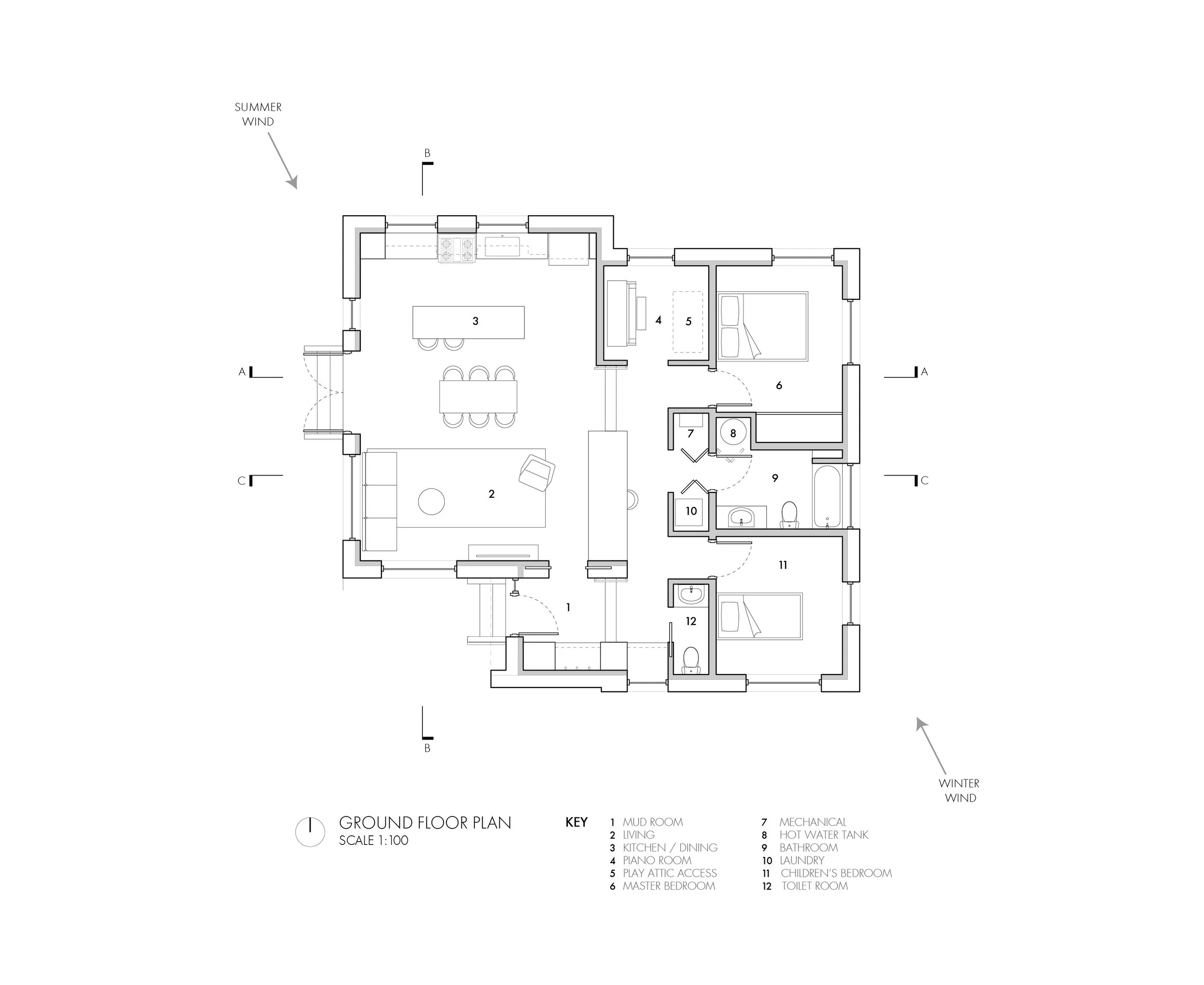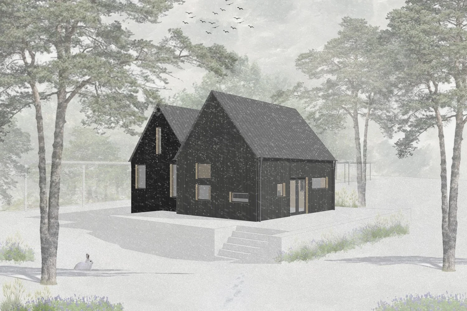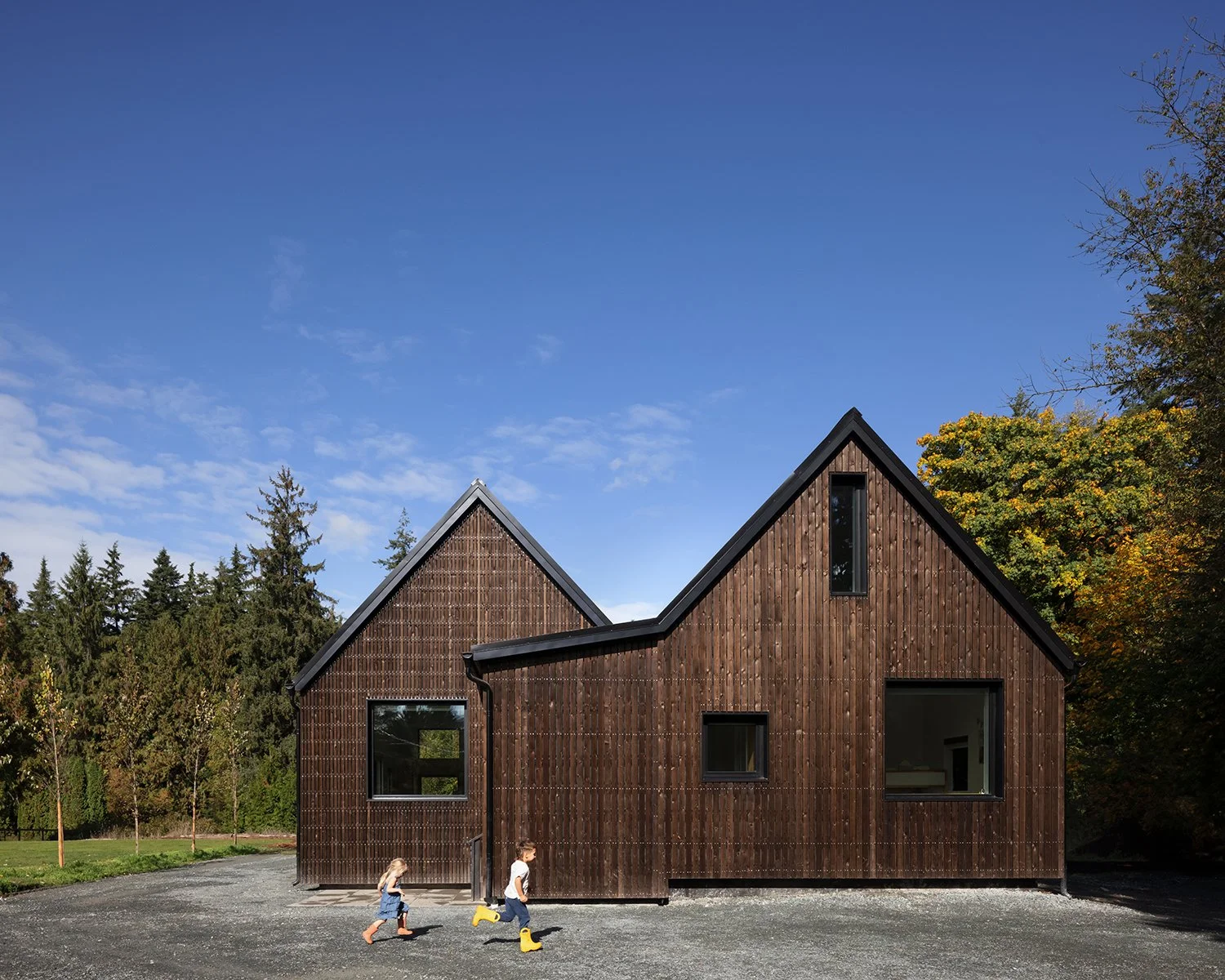 Inspiracją dla formy domu były nordyckie korzenie właścicielki, Ruth. Bryła odwołuje się do współczesnych islandzkich domów o stromych dachach dwuspadowych, z prostymi dobudówkami i konstrukcją w technologii drewnianego szkieletu. Dzięki temu większość materiałów udało się pozyskać lokalnie. Dom został podzielony na dwie główne strefy: „gable living” – część dzienną oraz „gable sleeping” – część nocną, oddzielone od siebie różnicą poziomów 45 cm. Taki układ pozwolił na zachowanie różnorodności przestrzeni i prywatności w kompaktowej powierzchni.