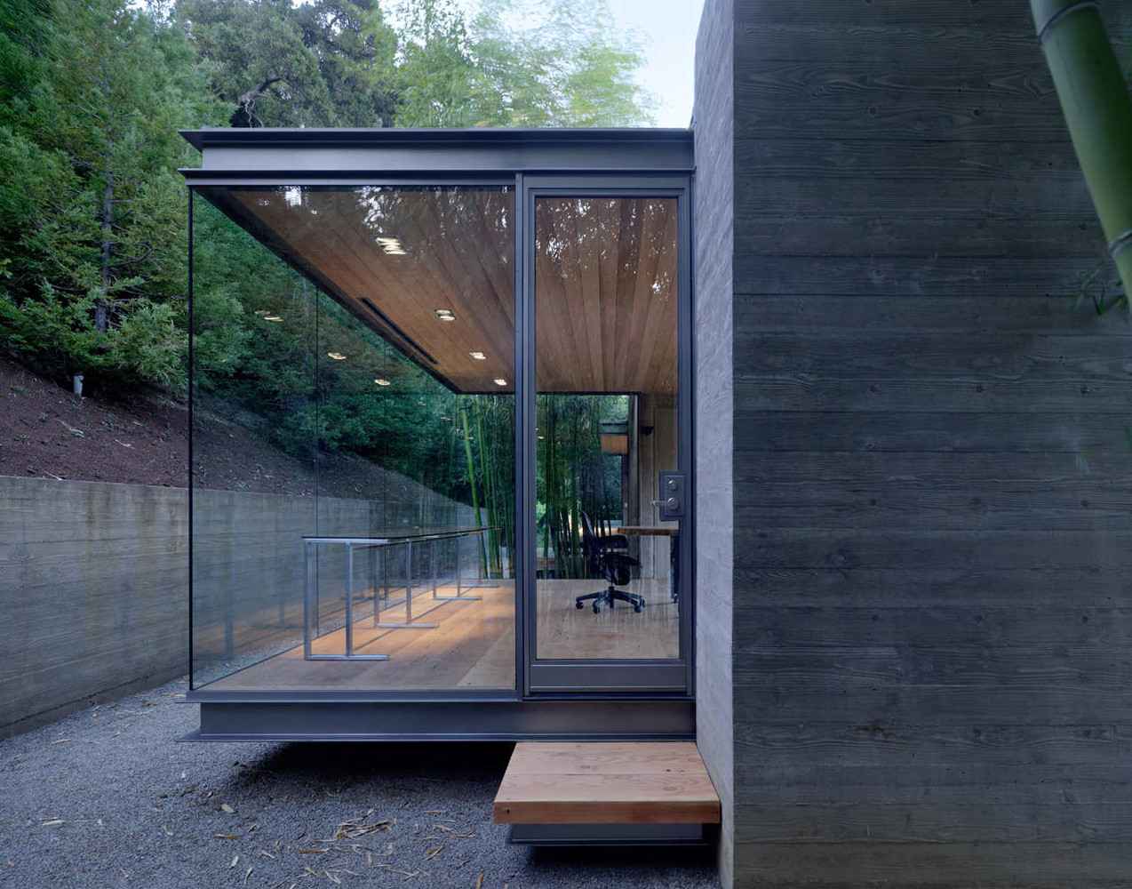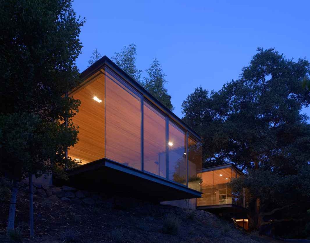 Dzięki zastosowaniu paneli fotowoltaicznych, ogrzewania podłogowego i ekologicznych rozwiązań projekt kładzie nacisk na komfort przy minimalnym wpływie na środowisko. O każdej porze dnia pawilony zmieniają swoje oblicze: o wschodzie słońca znikają w cieniu drzew, w ciągu dnia nabierają wyrazistości, a wieczorem połyskują jak lampiony w ogrodzie. Całość tworzy spójną, wyrafinowaną kompozycję, łączącą nowoczesną architekturę, minimalistyczny design i naturalną harmonię kalifornijskiego krajobrazu.