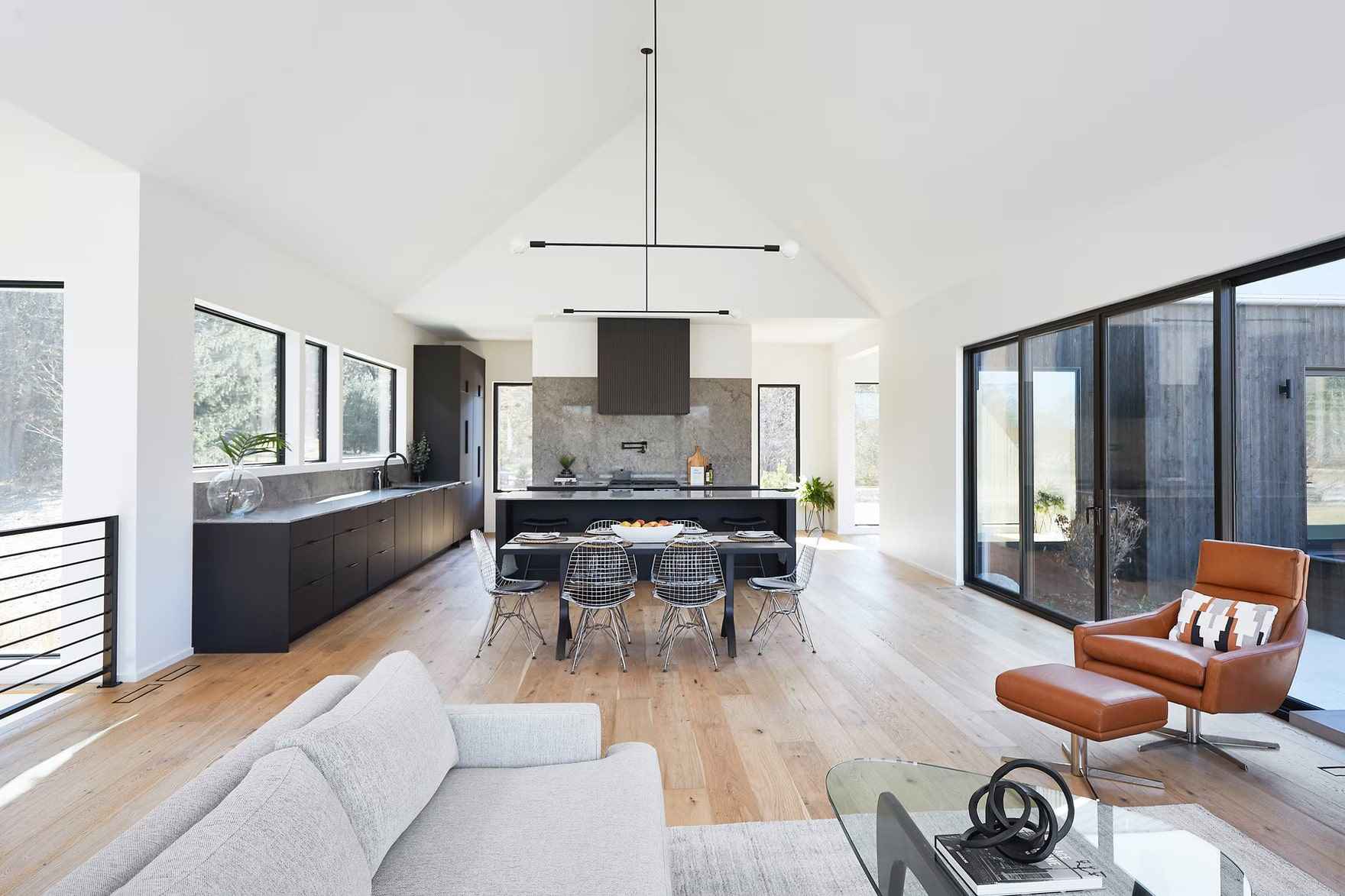 Architekci z Hygge Custom Homes stworzyli Hilltop Farm w stanie Michigan, stawiając na pełną integrację z otaczającą naturą. Projekt od samego początku koncentrował się na wykorzystaniu rozległych widoków rozciągających się od północy po zachód, a także na zachowaniu historii miejsca – dawnej farmy z kozami i końmi. Każdy detal nowoczesnej stodoły został zaprojektowany tak, aby harmonijnie wtopić się w krajobraz, zapewniając jednocześnie komfort i prywatność mieszkańcom.