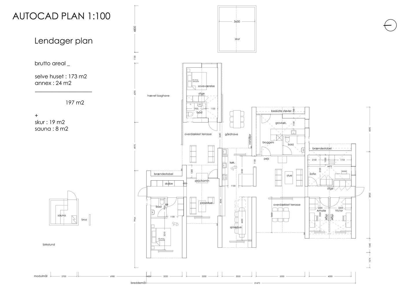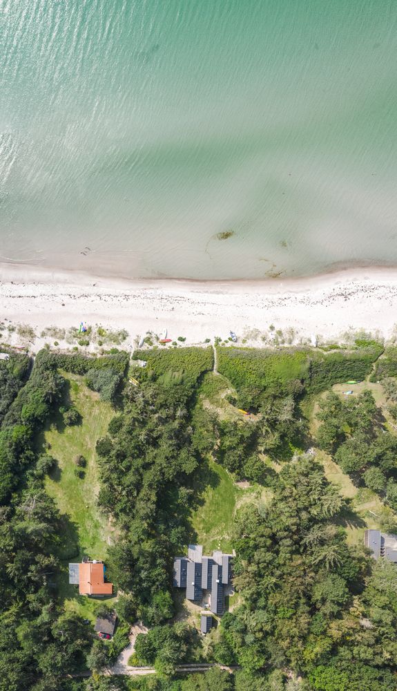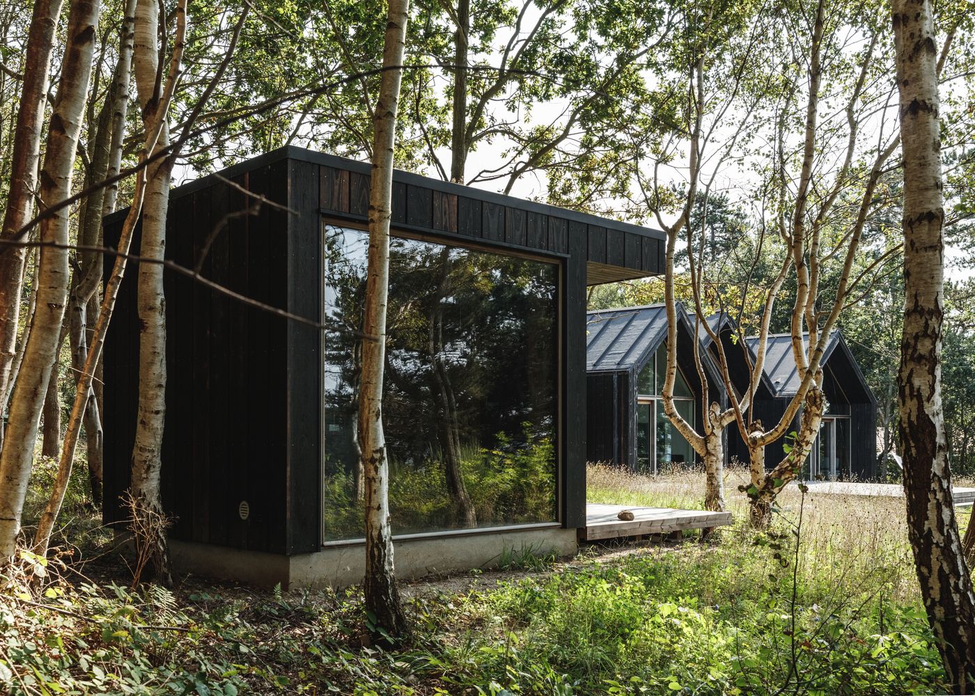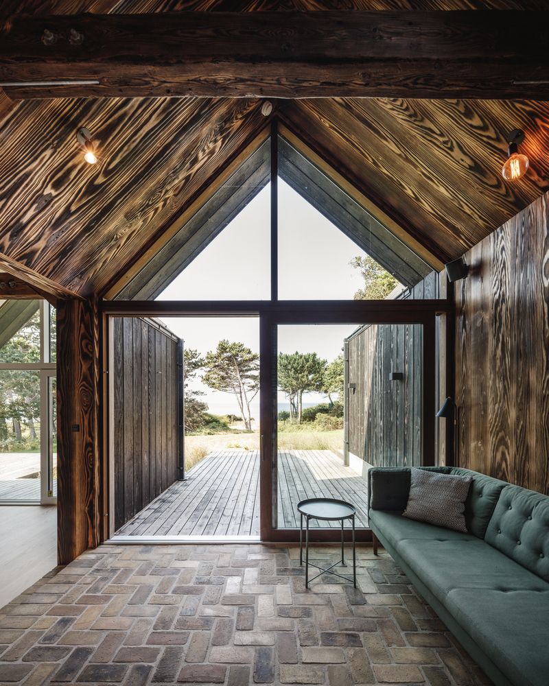 Każdy budynek zapewnia widok na morze i bezpośredni dostęp do drewnianego tarasu. W budynkach mieści się w sumie pięć sypialni, trzy łazienki, trzy salony i kuchnia, a wszystko wykonano z materiałów pochodzących z odzysku – odpadów drewnianych i starej cegły. To właśnie te dwa elementy były podstawowym materiałem budowlanym w tym projekcie. Ściany, panele i elewacja wykonano z drewna, które normalnie przeznaczone byłoby na odpad w fabryce zajmującej się produkcją ekskluzywnych podłóg. Firma produkuje deski podłogowe pod wymiar podawany przez klientów i niestety generuje dużą ilość drewnianych odpadów. Firma Lendager Group gromadzi takie drewno, przerabia je i wprowadza do swoich projektów.