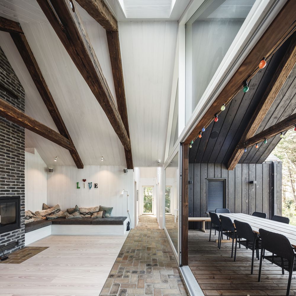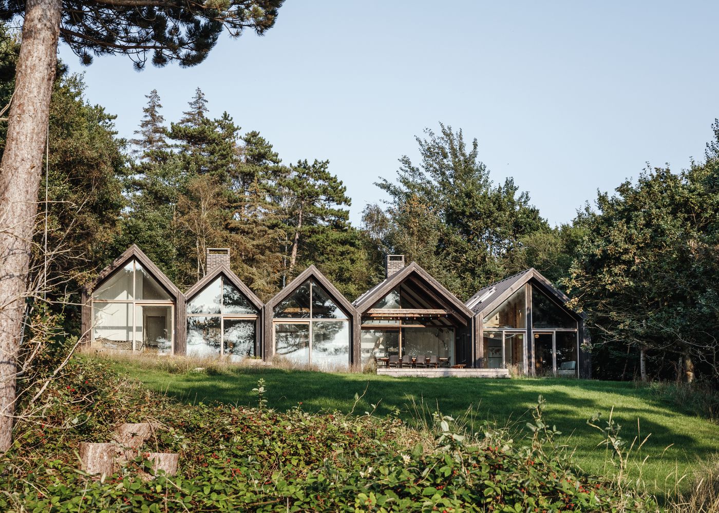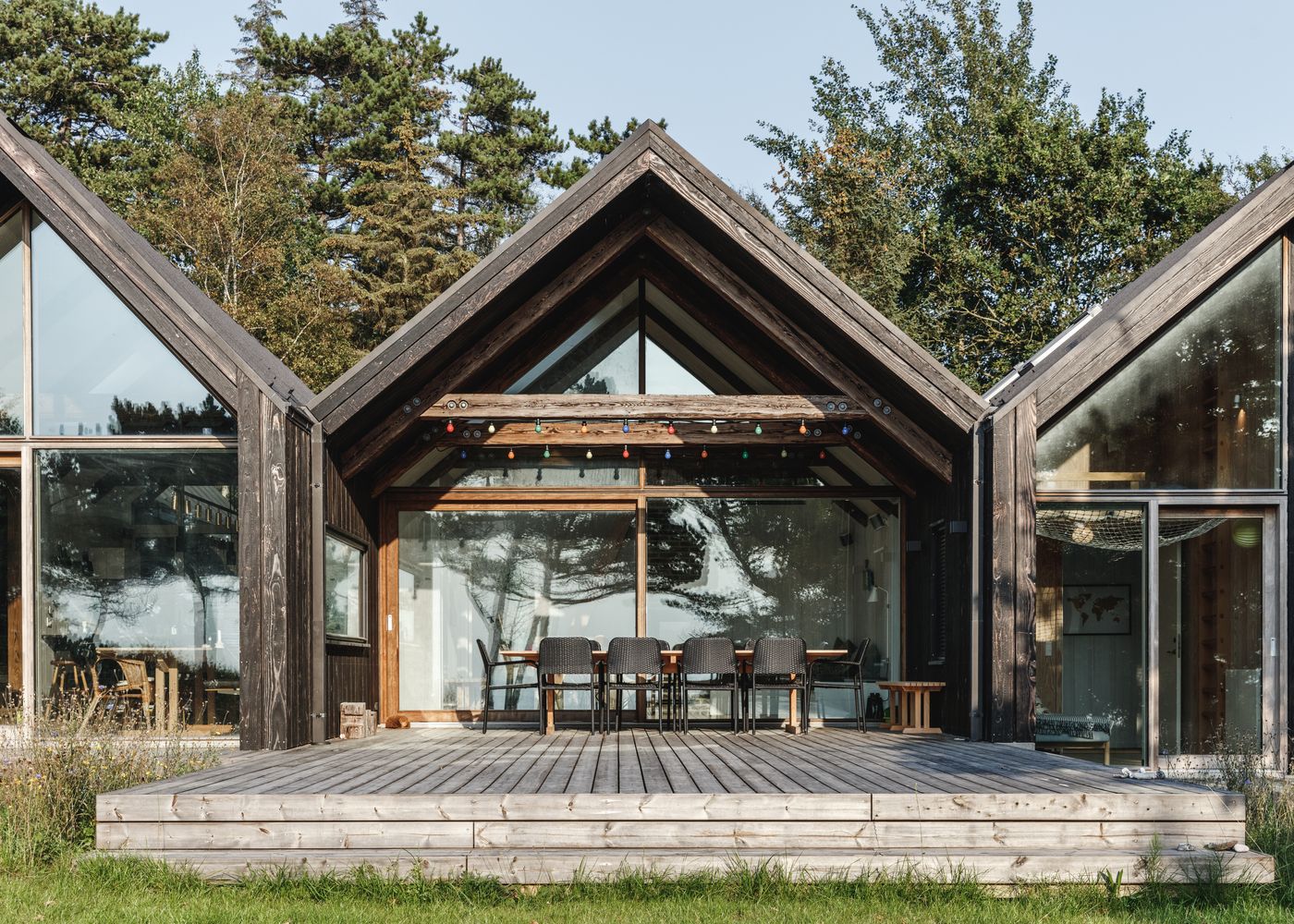 Kopenhaska firma architektoniczna Lendager Group stworzyła niezwykły dom wakacyjny wykorzystując recykling materiałów. nowoczesna stodoła dyskretnie chowa się między drzewami rosnącymi na wzgórzu w pobliżu plaży. Jej rozmiar nie przytłacza, ponieważ na pierwszy rzut oka wygląda tak, jakby składała się z kilku małych chatek. Pięć połączonych ze sobą budynków ze szklanymi fasadami zbudowano zgodnie z zasadami komunikacyjnymi dla domów rodzinnych. Zaprojektowano je z pełnym poszanowaniem dla tutejszego środowiska naturalnego.