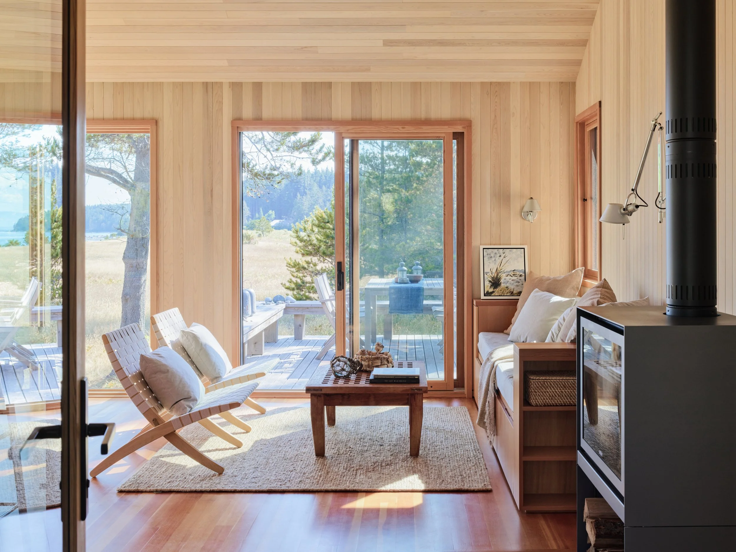 Na odległej wyspie archipelagu Northern Gulf Islands, na granicy szerokiej łąki, piaszczystej plaży i podmokłego lasu, powstał kameralny zespół budynków, który rozwija historię rodzinnego letniska istniejącego tu od czterdziestu lat. Projekt autorstwa Laura Killam Architecture został pomyślany jako subtelne rozszerzenie wielopokoleniowego siedliska – miejsca, które z jednej strony daje schronienie, a z drugiej pozostaje głęboko zanurzone w krajobrazie.