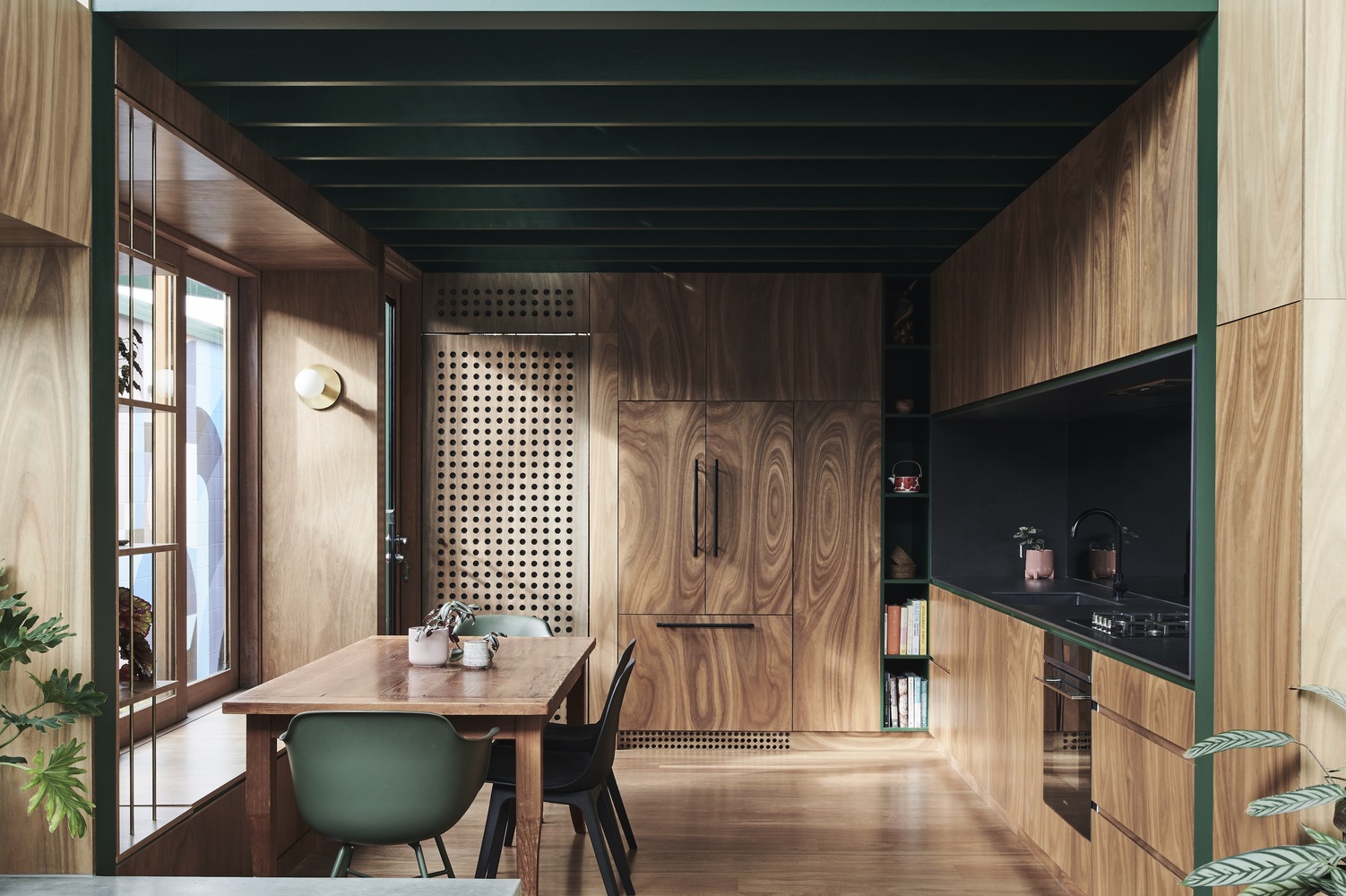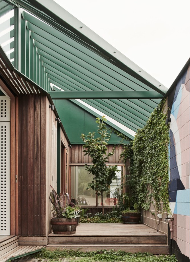 Położony w tętniącym życiem przedmieściu Richmond w Melbourne, Hot Top Peak House to odważny eksperyment urbanistyczny i przykład, jak może wyglądać nowoczesna stodoła w miejskim kontekście. Ten dom jednorodzinny został wzniesiony na niewielkiej działce o powierzchni zaledwie 175 m², z dwoma frontami ulicznymi. Projekt pokazuje, jak w ograniczonej przestrzeni można stworzyć elastyczny dom miejski, gotowy do adaptacji i współdzielenia. W odróżnieniu od typowego podejścia do rozbudowy domów – czyli dodawania otwartej strefy dziennej z tyłu – Hot Top Peak House oferuje zróżnicowane strefy mieszkalne rozmieszczone wokół centralnej części z kuchnią i jadalnią. Dzięki temu układowi możliwe jest przekształcenie budynku w dwie osobne jednostki mieszkalne, co otwiera perspektywy wynajmu i generowania dochodu pasywnego.