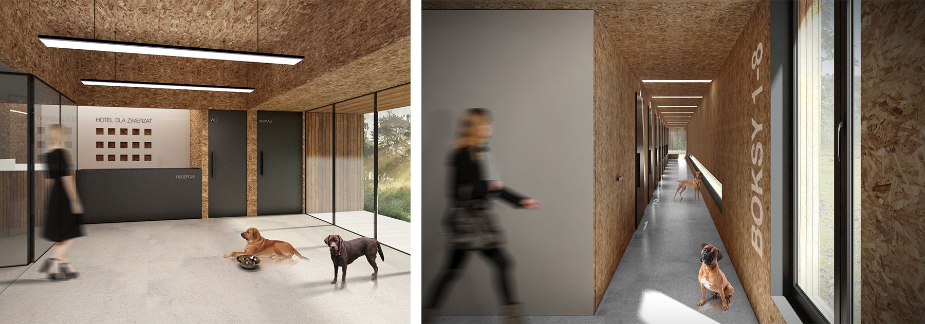 Pierwszy w Polsce hotel dla zwierząt powstał w bezpośrednim sąsiedztwie lasu w okolicach Częstochowy jako prosty, funkcjonalny obiekt przeznaczony dla psów i innych zwierząt domowych podczas wakacyjnych wyjazdów, długich weekendów i delegacji służbowych ich właścicieli. Program obiektu obejmuje nie tylko noclegi dla zwierząt, lecz także szkolenia dla psów, konsultacje weterynaryjne oraz zwierzęce mini spa, zapewniające komfort, bezpieczeństwo i relaks. Architektura budynku, inspirowana lokalną tradycją budownictwa drewnianego, nawiązuje do form takich jak nowoczesna stodoła, harmonijnie wpisując się w leśny krajobraz i naturalne otoczenie.