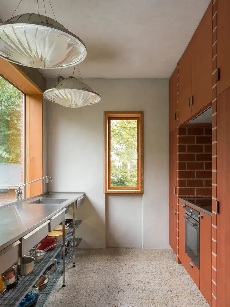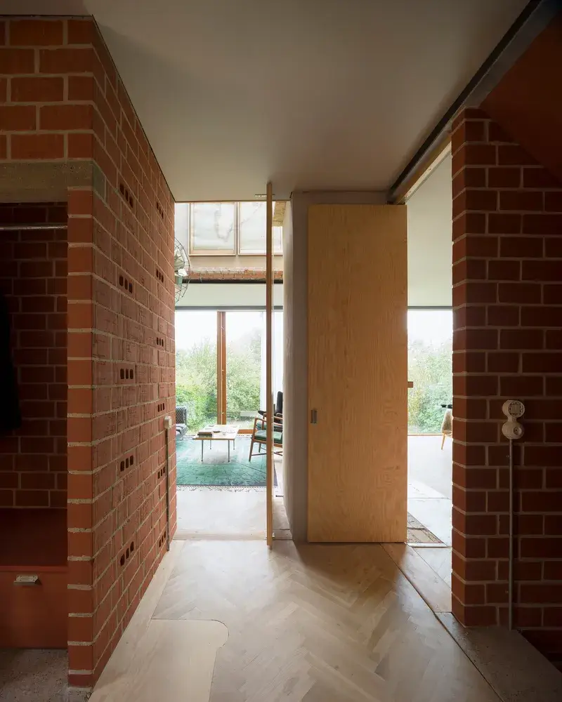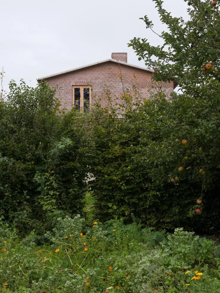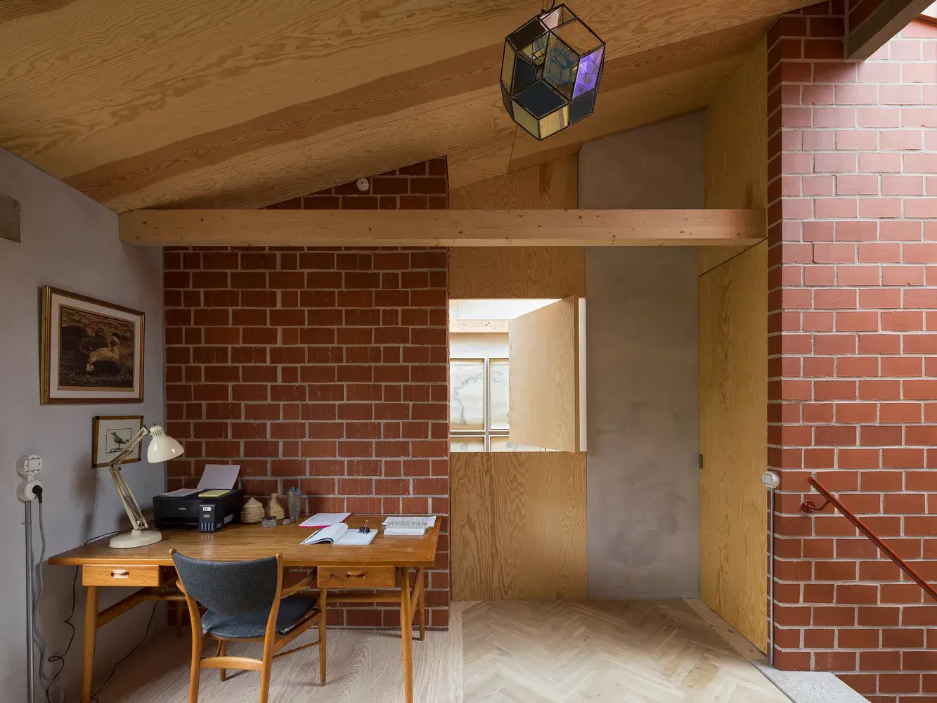 Dom jednorodzinny z cegły, wybudowany w 1951 roku, był uosobieniem powojennego stylu mieszkaniowego. Dwupiętrowa sześcienna bryła z równomiernie rozmieszczonymi oknami, fasadą z czerwonej cegły i dwuspadowym dachem. Pomimo solidności strukturalnej, jego zdolność dostosowywania się do stale zmieniających się sposobów życia była ograniczona. Na wczesnych etapach procesu wprowadzono trzy ułożone obok siebie rdzenie murowe zawierające istotne elementy domu – magazyn, schody i rurociągi. Pomiędzy nimi wyłaniają się resztkowe przestrzenie, nie ograniczone ścianami. Funkcjonują jako płynne byty, które można zamieszkiwać na różne sposoby.