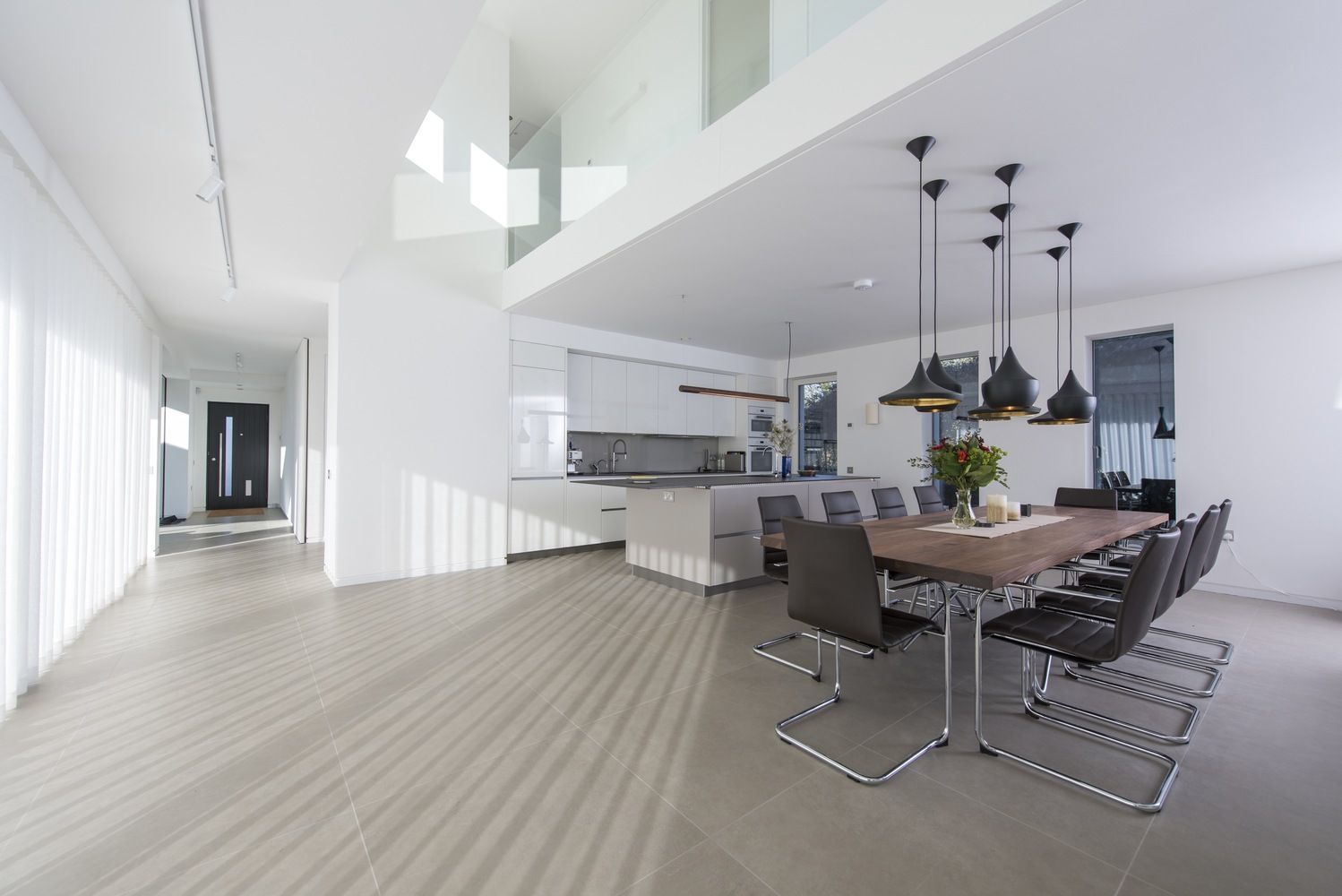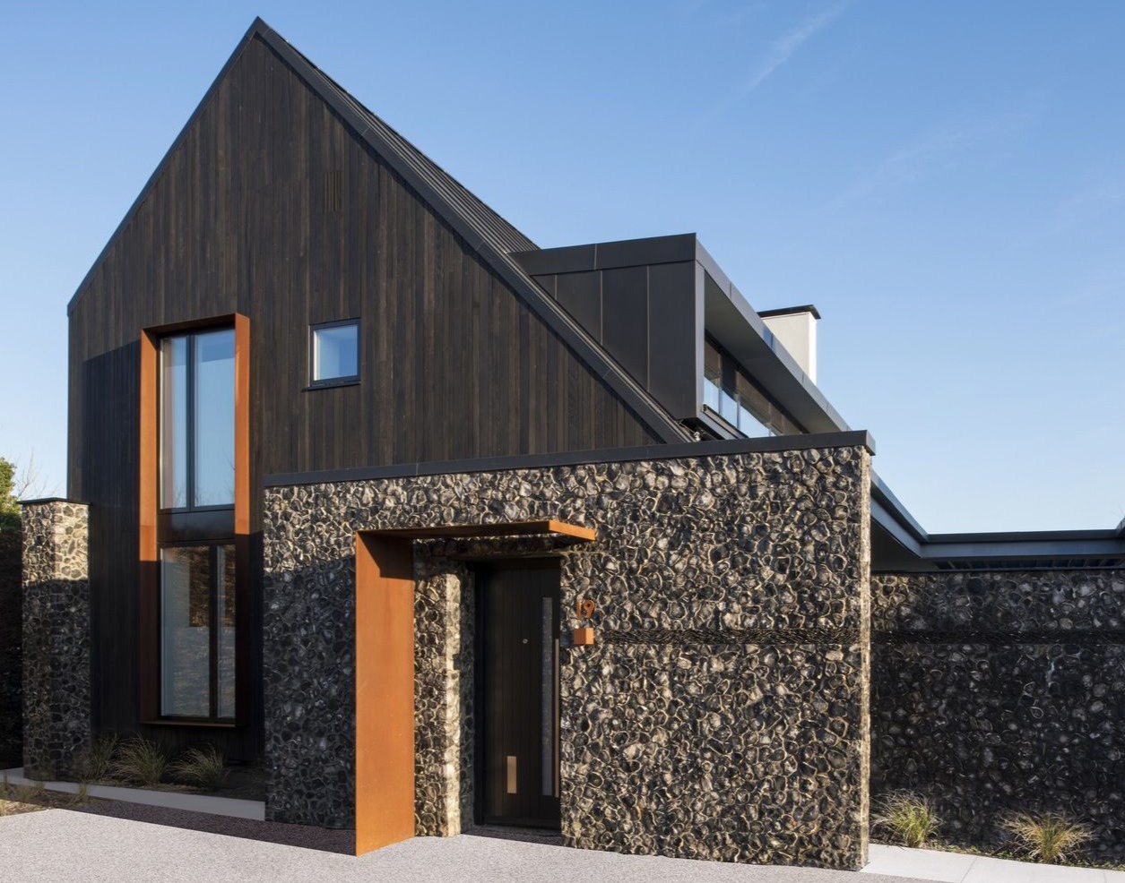 Zewnętrze domu zostało wykonane z delikatnie barwionego cedru, dach pokryto blachą cynkową, a elementy ze stali kortenowskiej podkreślają nowoczesny charakter projektu. Wnętrza zaprojektowano wokół podwójnej wysokości przestrzeni i długiego rzędu okien, co sprzyja naturalnej wentylacji i doświetleniu. Funkcjonalność łączy się tu z estetyką – ekologiczny system ogrzewania podłogowego, panoramiczne okna, a także praktyczne rozwiązania, jak zadaszenie nad południową fasadą, tworzą komfortowy i energooszczędny dom. House 19 to doskonały przykład nowoczesnej stodoły wpisanej w historyczne otoczenie, który szanuje lokalny krajobraz i społeczność.