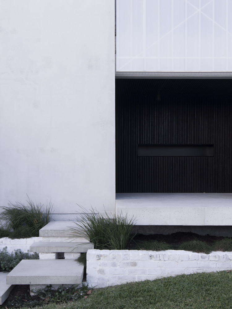 Dom zbudowano z myślą o zachowaniu istniejących drzew oraz domu z lat 50., łącząc nowoczesność z elementami natury. Dzięki innowacyjnemu rozkładowi przestrzeni, projekt pozwala na prywatność i otwartość bez potrzeby stosowania drzwi i ścian, co nadaje wnętrzu płynność. Ogród od frontu wykorzystuje rodzimą roślinność i pełni rolę przestrzeni dziennej na świeżym powietrzu, co dodatkowo zwiększa komfort mieszkańców. Taki sposób kształtowania krajobrazu ma istotne korzyści zarówno kulturowe, jak i środowiskowe, zapewniając zieloną przestrzeń w miarę rozwoju miast. Zrównoważony charakter domu obejmuje także podziemny zbiornik na deszczówkę, panele słoneczne oraz użycie materiałów z recyklingu.