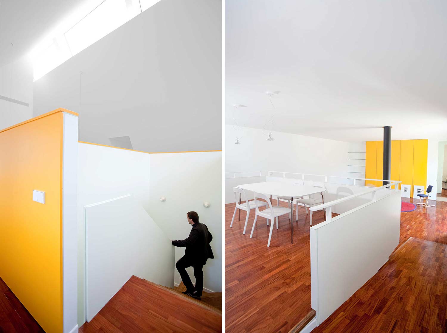 Zachowując oryginalną kamienną konstrukcję i ograniczając ingerencję budowlaną do minimum, architektom udało się stworzyć nowoczesną, funkcjonalną przestrzeń mieszkalną z poszanowaniem historycznej formy. W najniższej części domu, reagując na mniejszą nośność istniejącej ściany, wykonano duże otwarcie z odpowiednimi wzmocnieniami, wpuszczając do wnętrza naturalne światło i spektakularne widoki. Powstała tam druga strefa dzienna z salonem i jadalnią, podczas gdy pozostałe przestrzenie zachowują elementy dawnego charakteru budynku, połączone z nową estetyką i współczesnymi rozwiązaniami funkcjonalnymi.