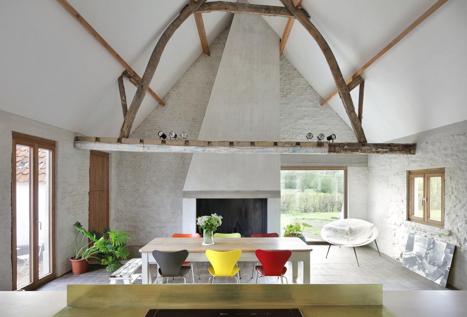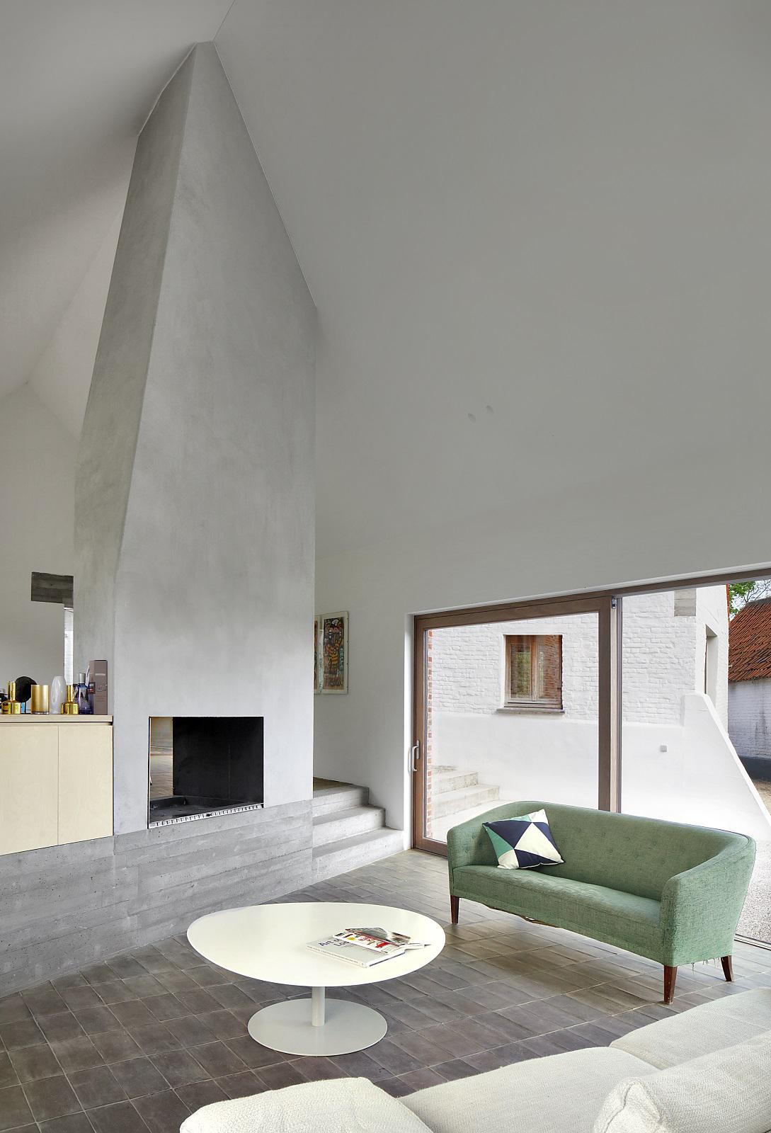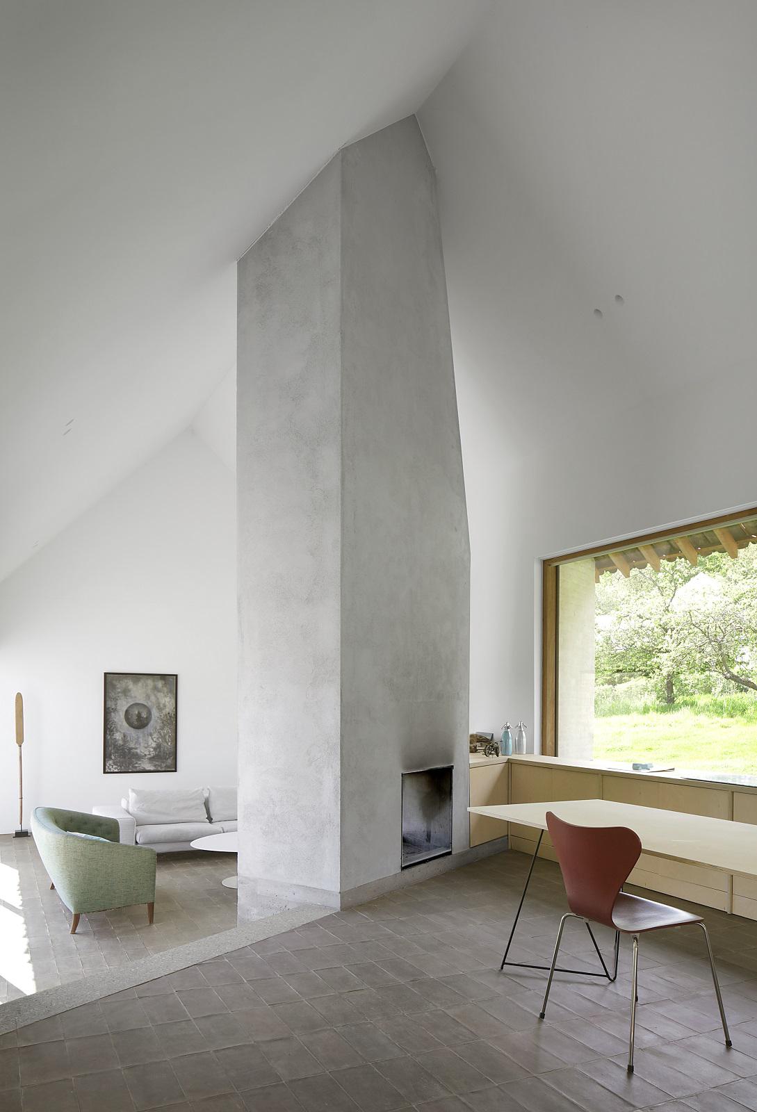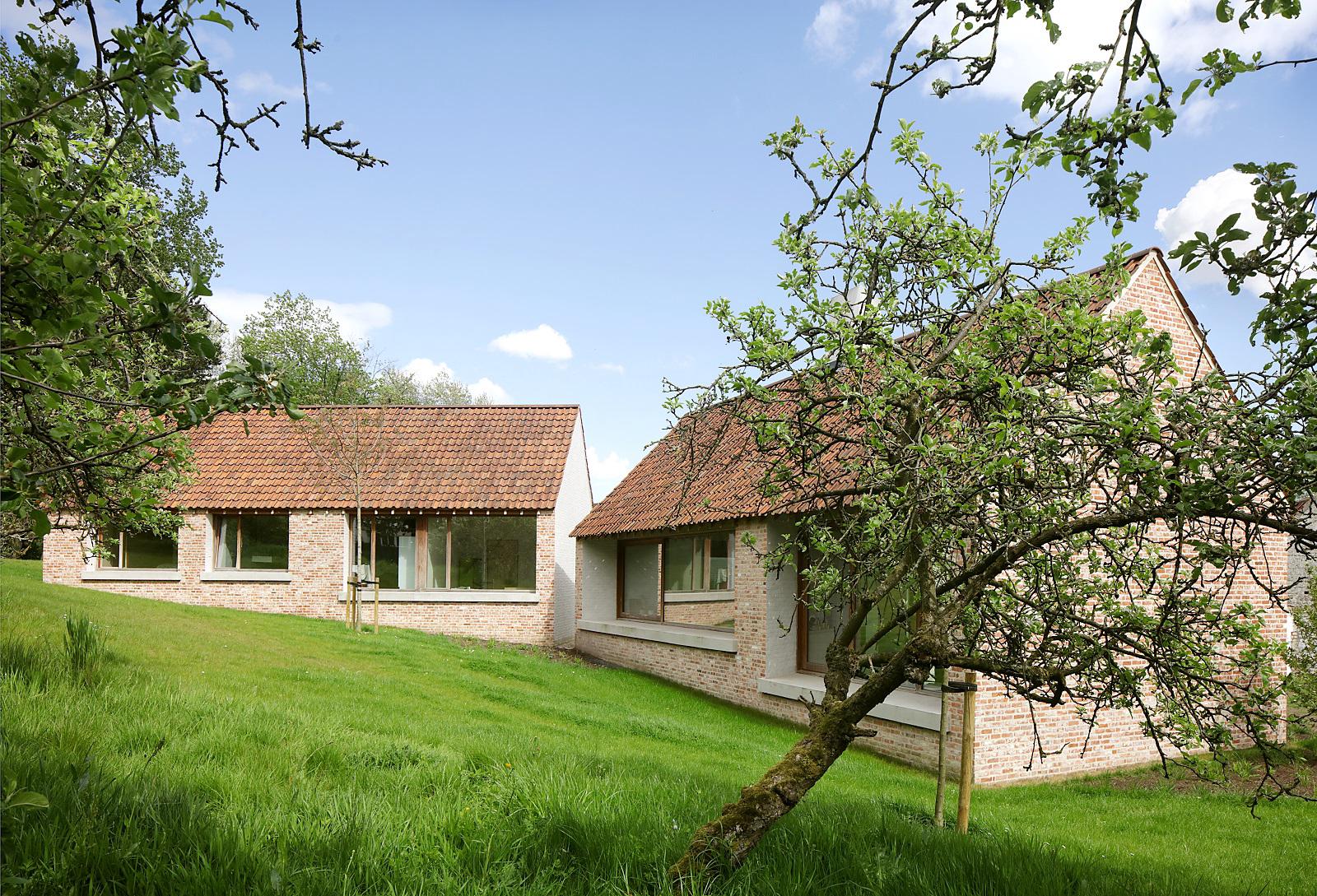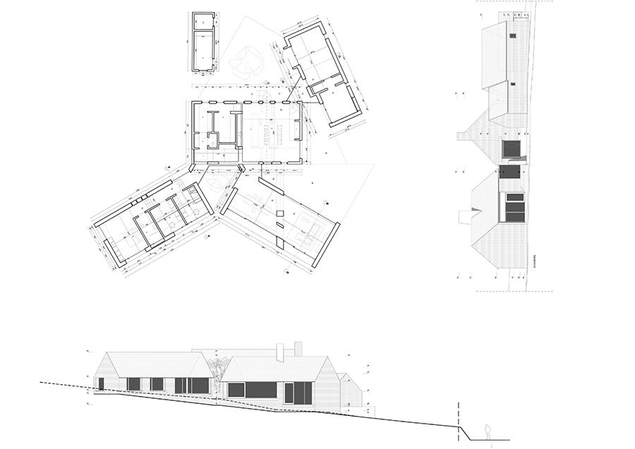 „Ograniczamy ingerencje w istniejące woluminy do minimum, udostępniając kilka otworów, które są niezbędne do zapewnienia odpowiedniej cyrkulacji” – wyjaśniają architekci. Dwa nowe skrzydła są umieszczone po zachodniej stronie głównej bryły, tworząc zamknięte patio. Całość projektu, mimo że zachowuje silną wizualną separację pomiędzy starymi a nowymi elementami, skutkuje stworzeniem spójnego przejścia do ogrodu, co wzmacnia zasadę skupienia na przestrzeni.