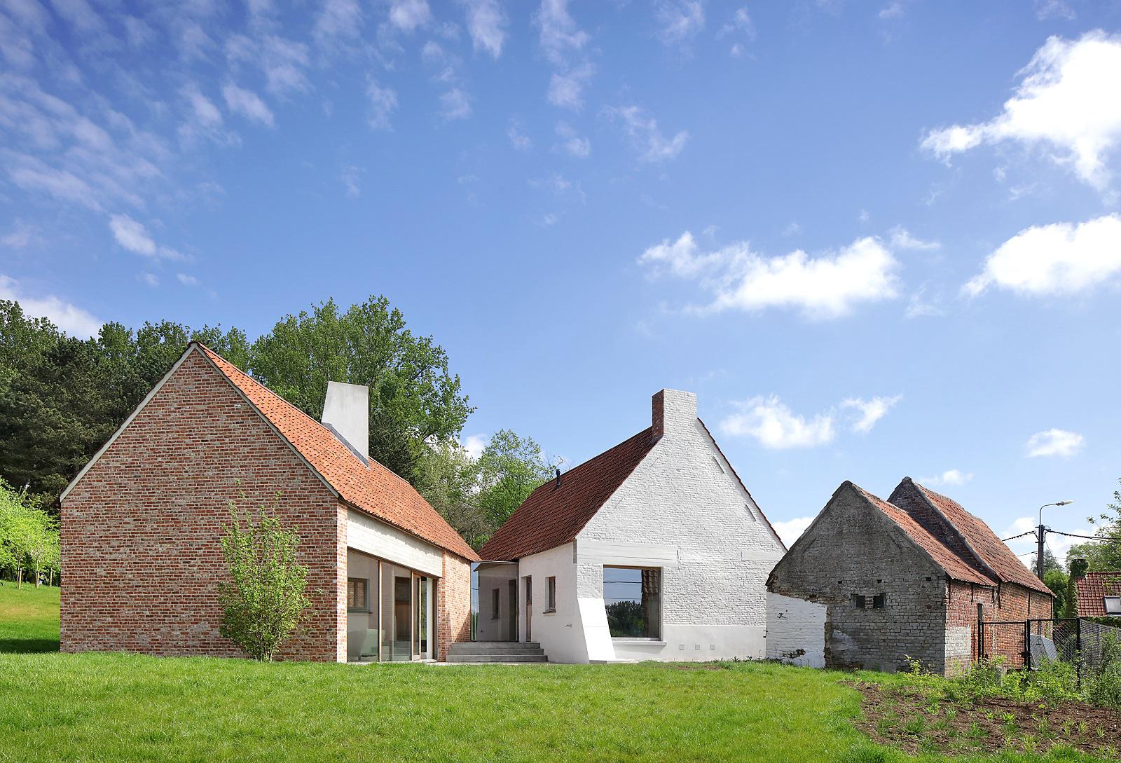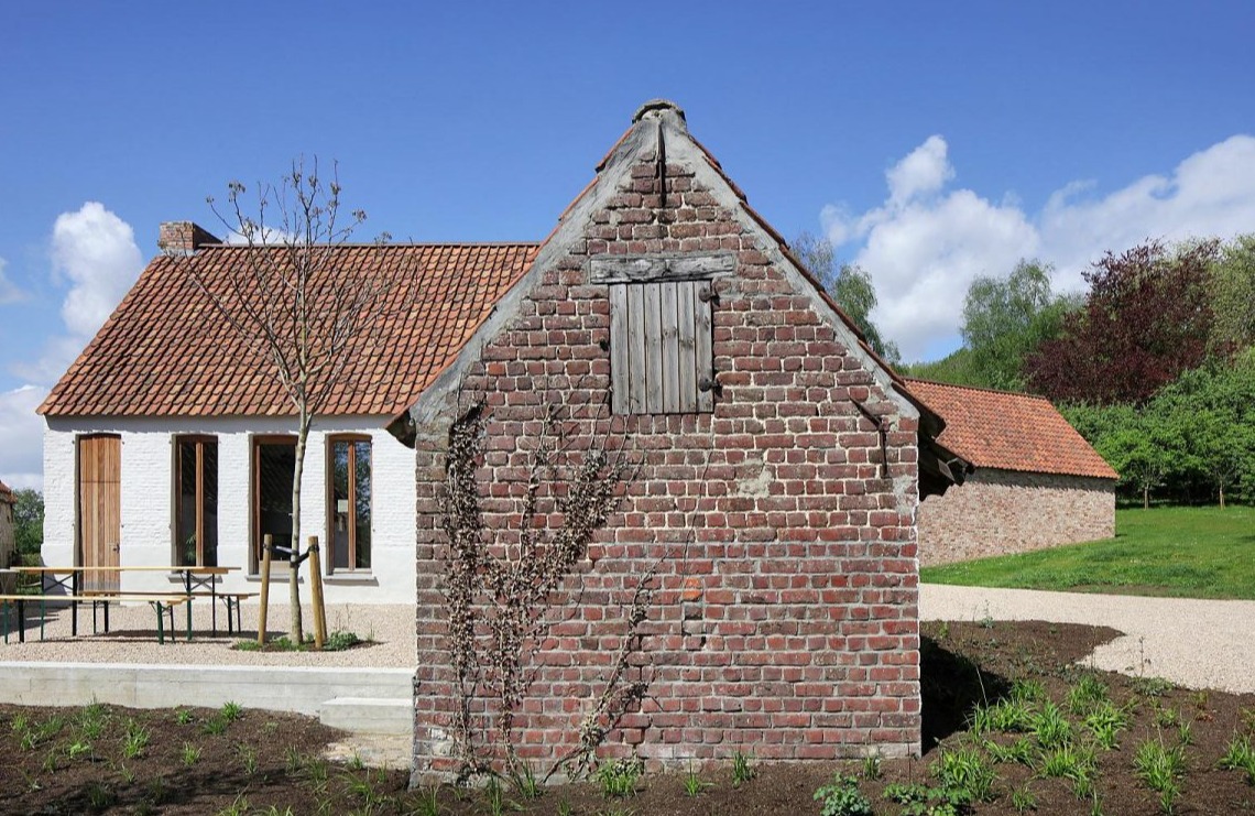 Gospodarstwo BS składa się z trzech podstawowych brył (mieszkanie, stajnia i chlew), wokół centralnego placu z widokiem na elewacje zabudowy szeregowej. Te ceglane konstrukcje z dwuspadowym dachem są charakterystyczne dla regionu, zarówno pod względem materiałów, jak i formy. Zróżnicowanie w wielkości i układzie tych brył wprowadza fascynującą atmosferę oraz zapewnia wyjątkowe wrażenie różnorodności urbanistycznej. Projekt, inspirowany tym historycznym zestawieniem, wprowadza dwie dodatkowe, symetryczne bryły z dwuspadowymi dachami.