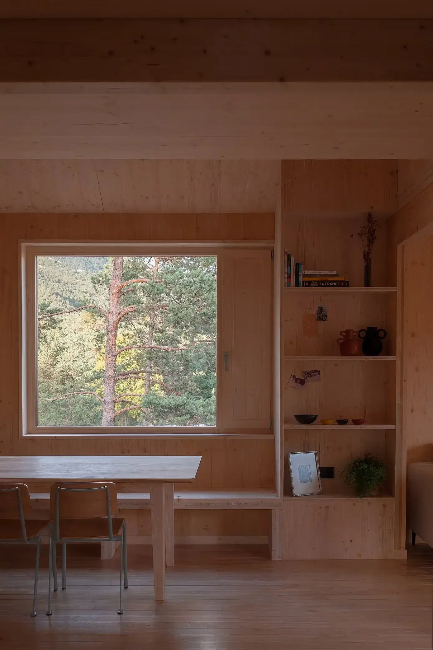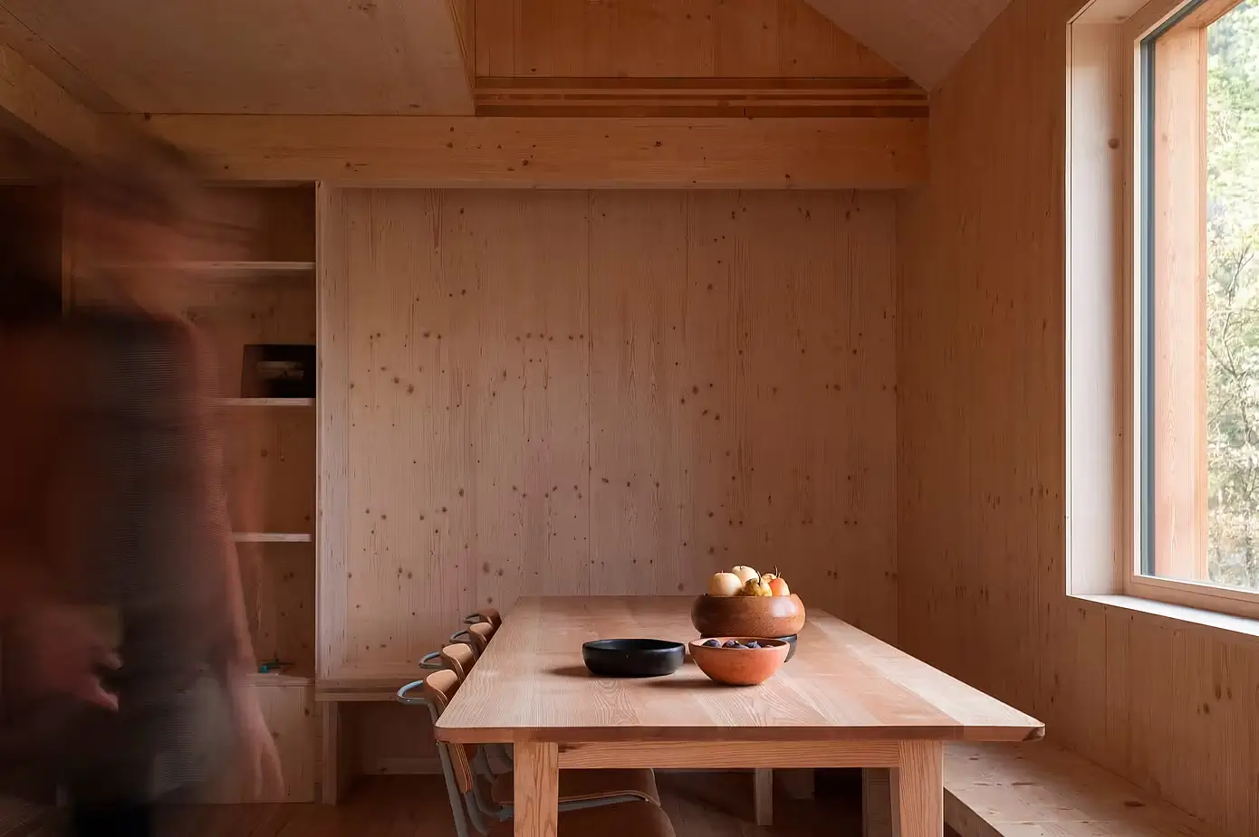 Lokalizacja ta pozwala na odkrywanie historii miejsca, gdzie ścieżki przecinają stok. Gęsty las i smukłe pnie drzew tworzą krajobrazy pod wysokim baldachimem, z widokami na góry i szczyty. Kompaktowy program domu zakłada funkcjonalność i integrację z naturą, pozwalając mieszkańcom na cieszenie się zmiennym krajobrazem przez cały rok.