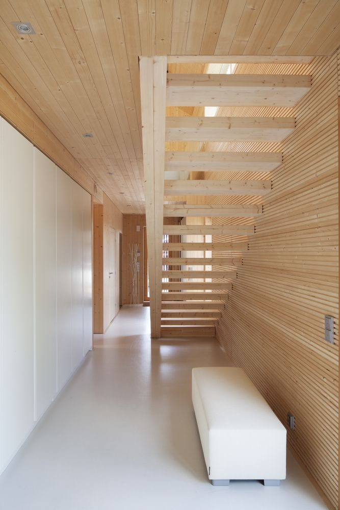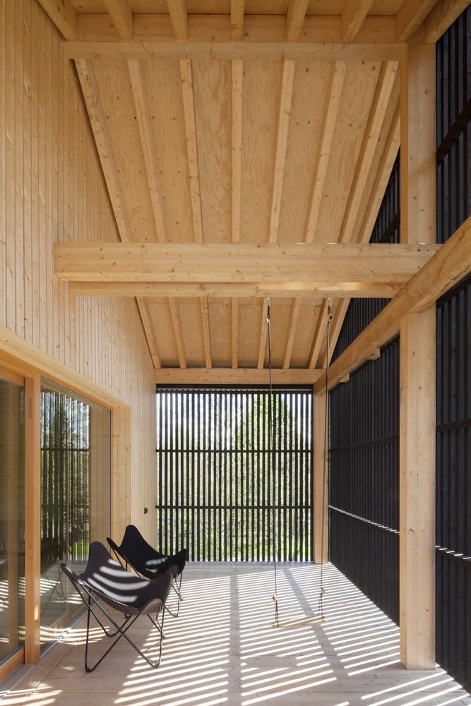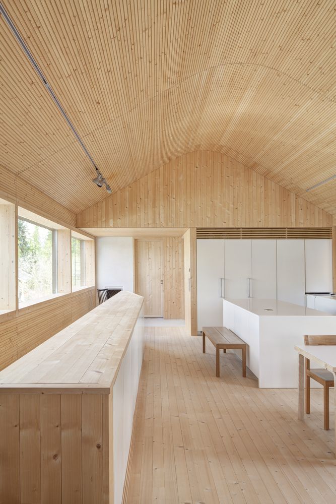 Nowoczesna stodoła została wykonana z naturalnych materiałów idealnie harmonizujących z otoczeniem, a jednocześnie odzwierciedlających indywidualny gust architekta. Dom składa się z dwóch części: budynku głównego oraz przybudówki. W głównym budynku, wbrew tradycji, sypialnie i pomieszczenia gospodarcze znajdują się na parterze, podczas gdy przestrzeń dzienna – salon – została umieszczona na piętrze, by maksymalnie wykorzystać dostępne widoki.