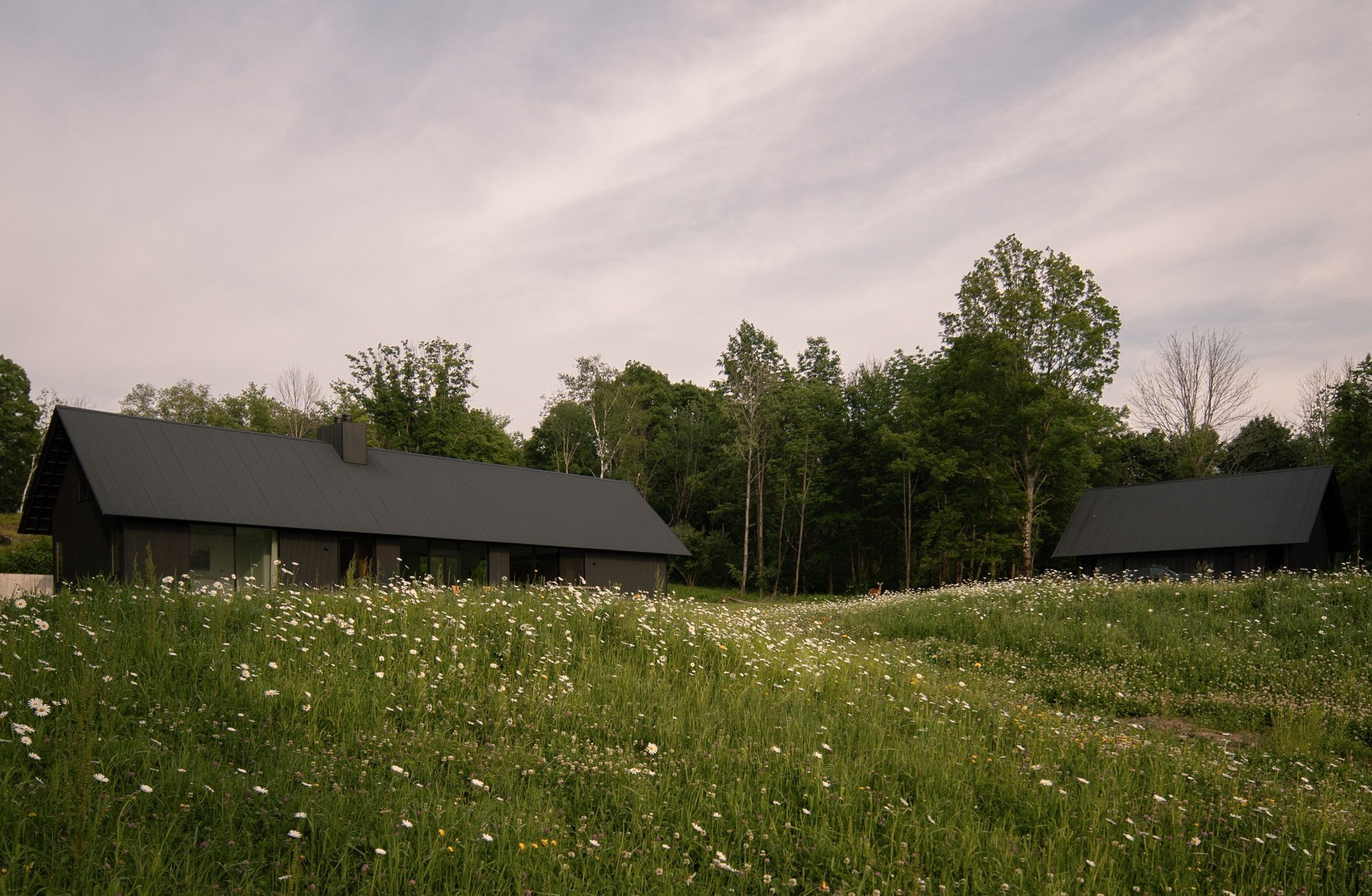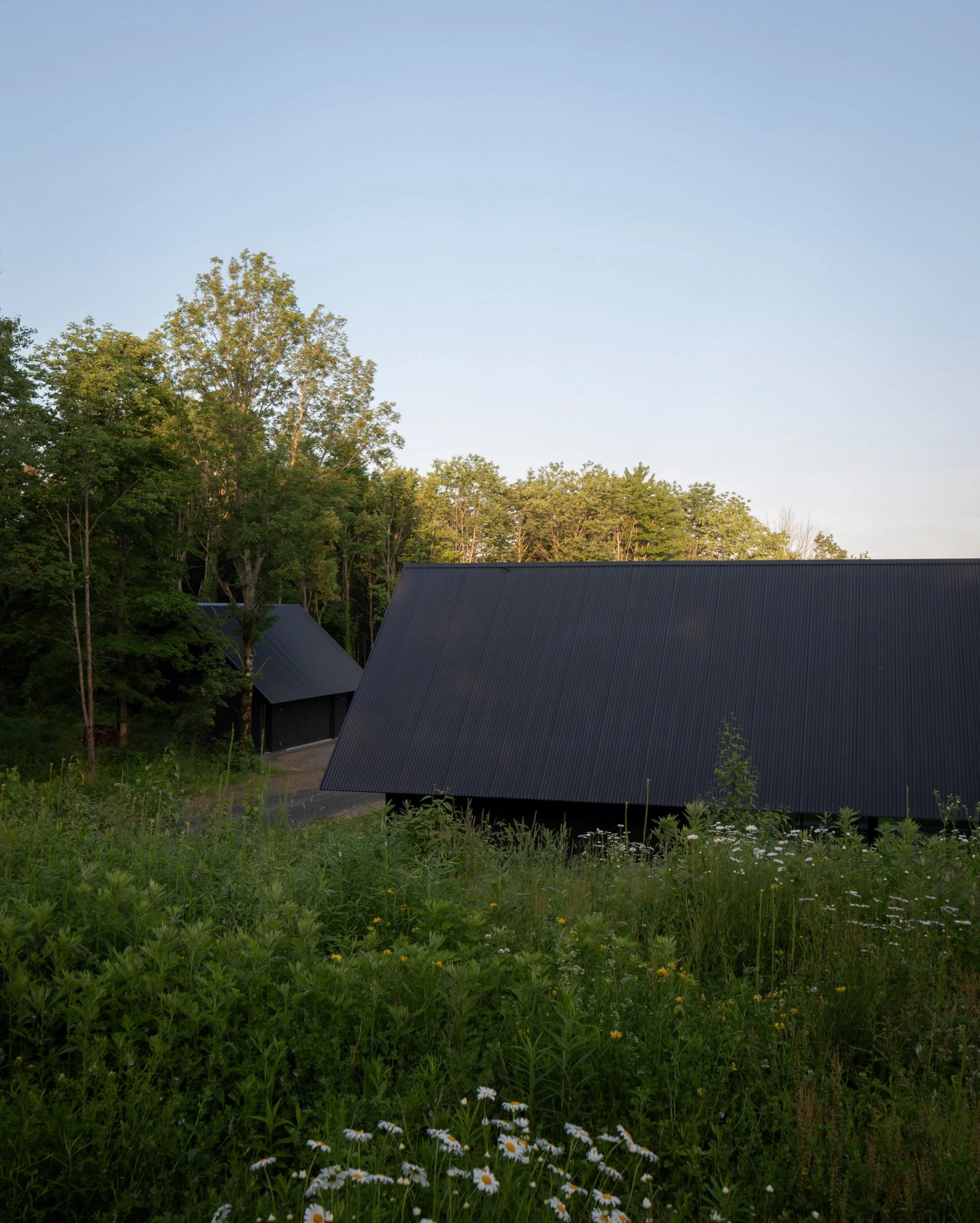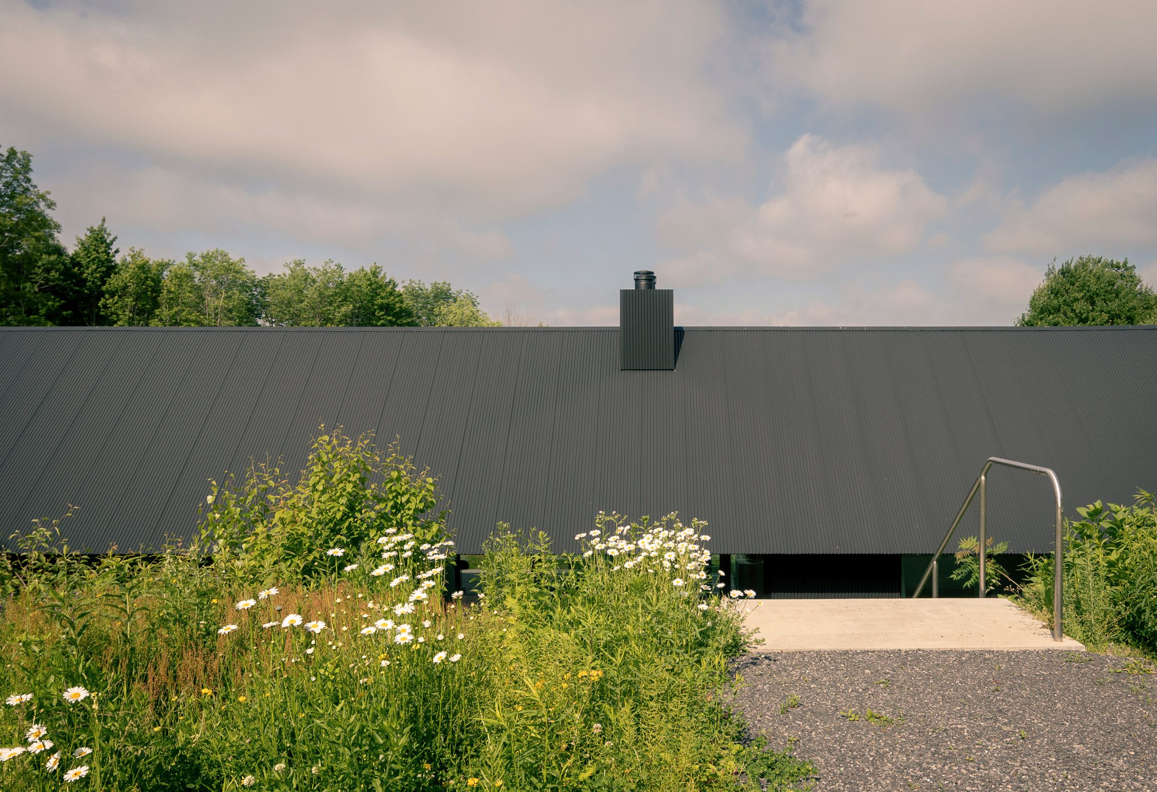 Brooklynskie studio Group Projects Architecture zaprojektowało podłużny dom z dwuspadowym dachem, pokryty blachą falistą, położony na polanie w North East w stanie Nowy Jork. Dom o powierzchni 260 m² znajduje się na zalesionej działce o powierzchni 30 akrów, z której rozciąga się widok na góry Catskills.