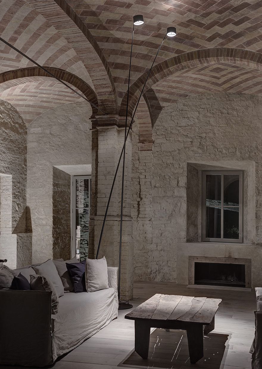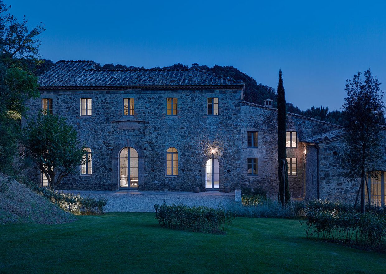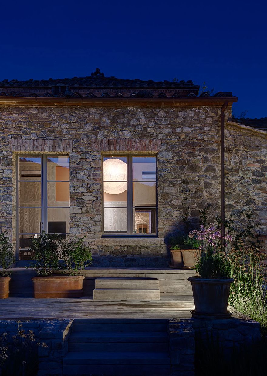 Budynek posiada dwa piętra i trzy poziomy funkcjonalne: na parterze zaprojektowano przestronną kuchnię oraz elegancki salon, piętro mieści sypialnie i pomieszczenia prywatne, natomiast w piwnicy znalazło się miejsce na basen, strefę fitness i piwniczkę na wino. Zabytkowy kościółek zaadaptowano na klimatyczny domek dla gości. Szczególną rolę w projekcie odgrywa oświetlenie architektoniczne – zarówno wewnętrzne, jak i zewnętrzne – które spaja całą posiadłość, podkreśla jej dziedzictwo i buduje wyjątkową atmosferę po zmroku. Starannie zaplanowane światło prowadzi gości do domu, ociepla wnętrza i nadaje całości magiczny, niemal baśniowy charakter, czyniąc tę wiejską rezydencję idealnym miejscem do wypoczynku i relaksu.