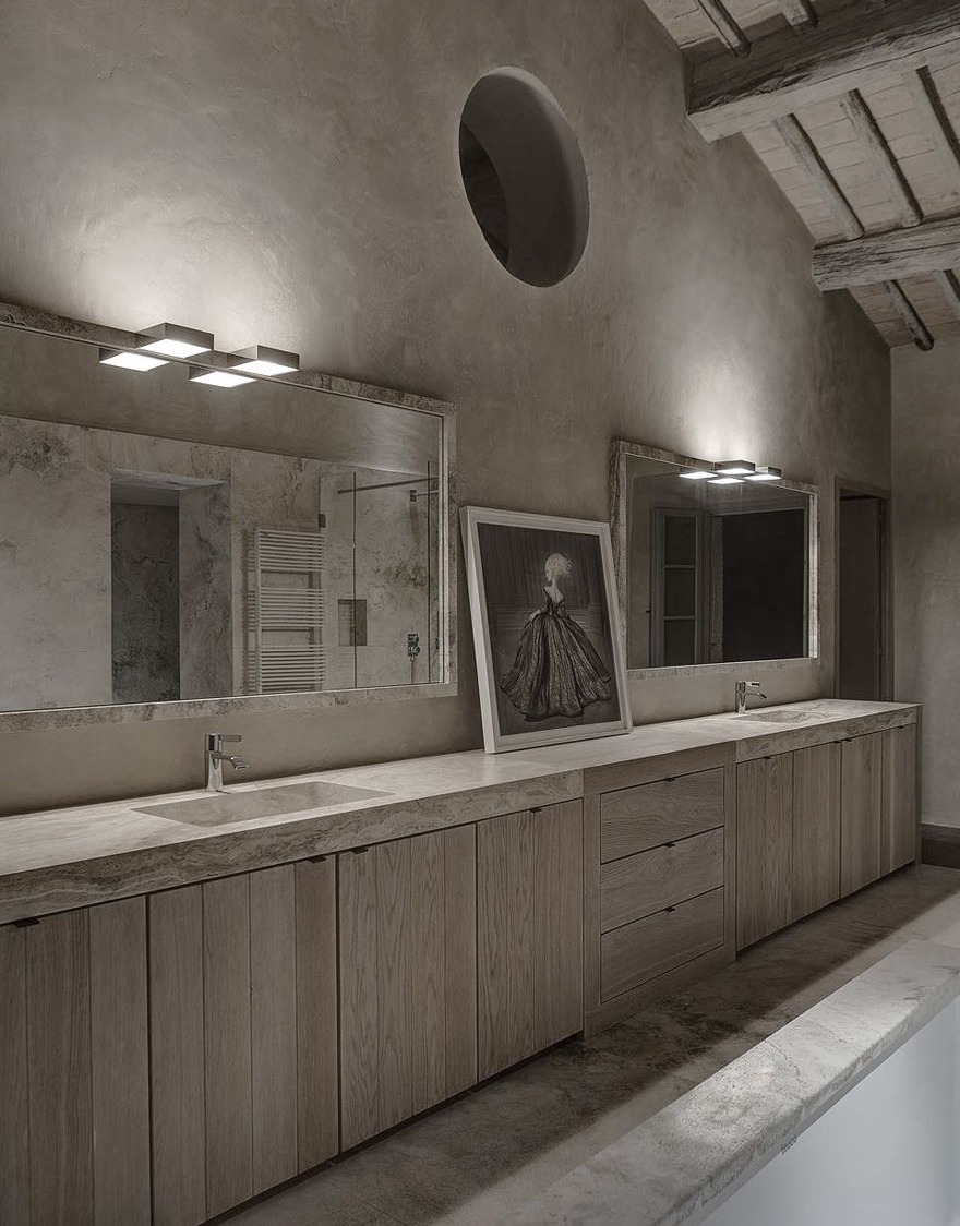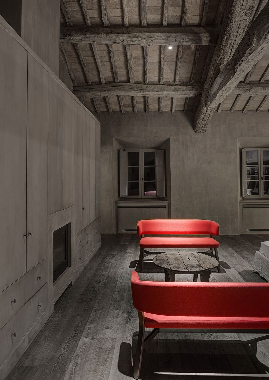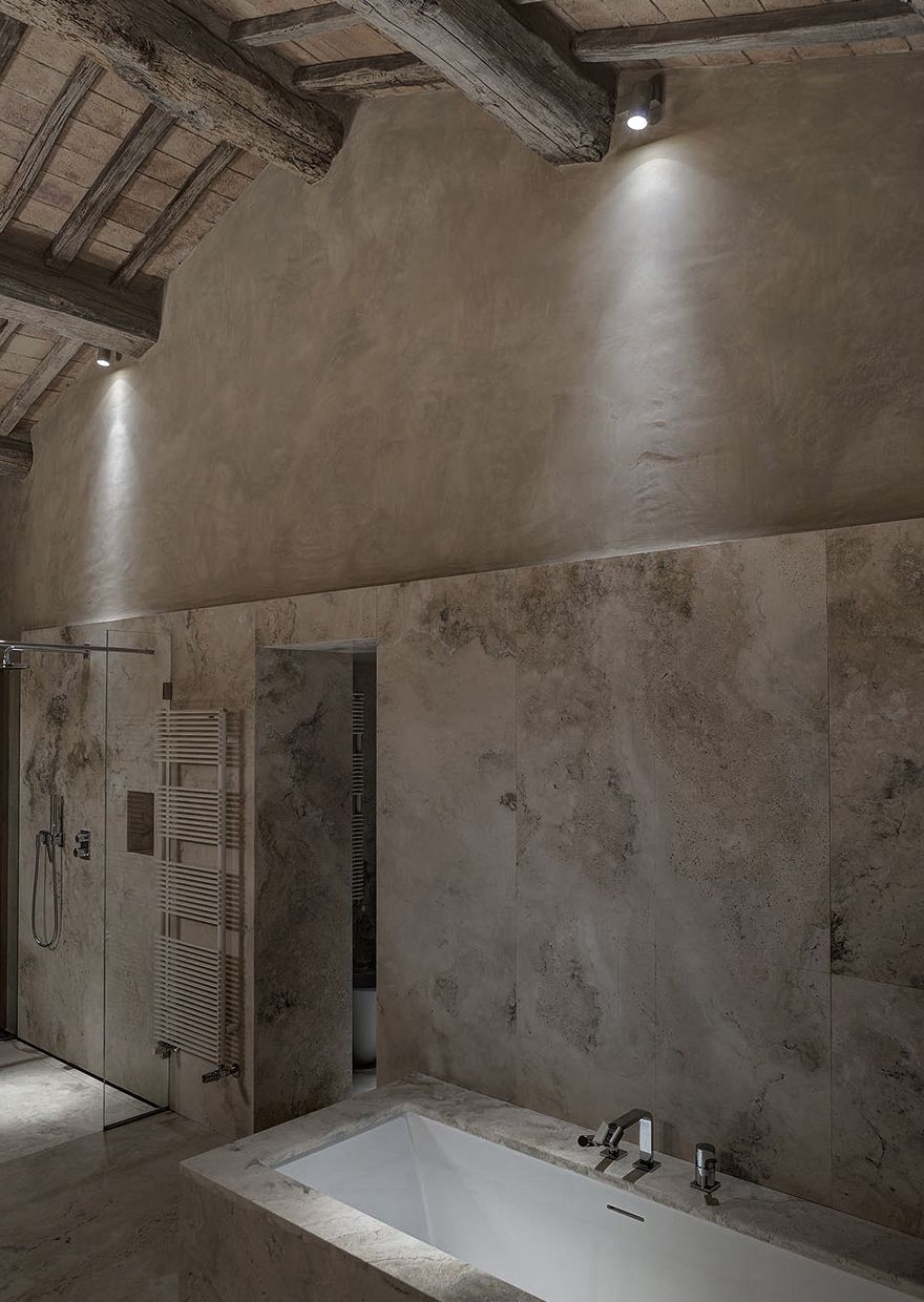 Budynek posiada dwa piętra i trzy poziomy funkcjonalne: na parterze zaprojektowano przestronną kuchnię oraz elegancki salon, piętro mieści sypialnie i pomieszczenia prywatne, natomiast w piwnicy znalazło się miejsce na basen, strefę fitness i piwniczkę na wino. Zabytkowy kościółek zaadaptowano na klimatyczny domek dla gości. Szczególną rolę w projekcie odgrywa oświetlenie architektoniczne – zarówno wewnętrzne, jak i zewnętrzne – które spaja całą posiadłość, podkreśla jej dziedzictwo i buduje wyjątkową atmosferę po zmroku. Starannie zaplanowane światło prowadzi gości do domu, ociepla wnętrza i nadaje całości magiczny, niemal baśniowy charakter, czyniąc tę wiejską rezydencję idealnym miejscem do wypoczynku i relaksu.