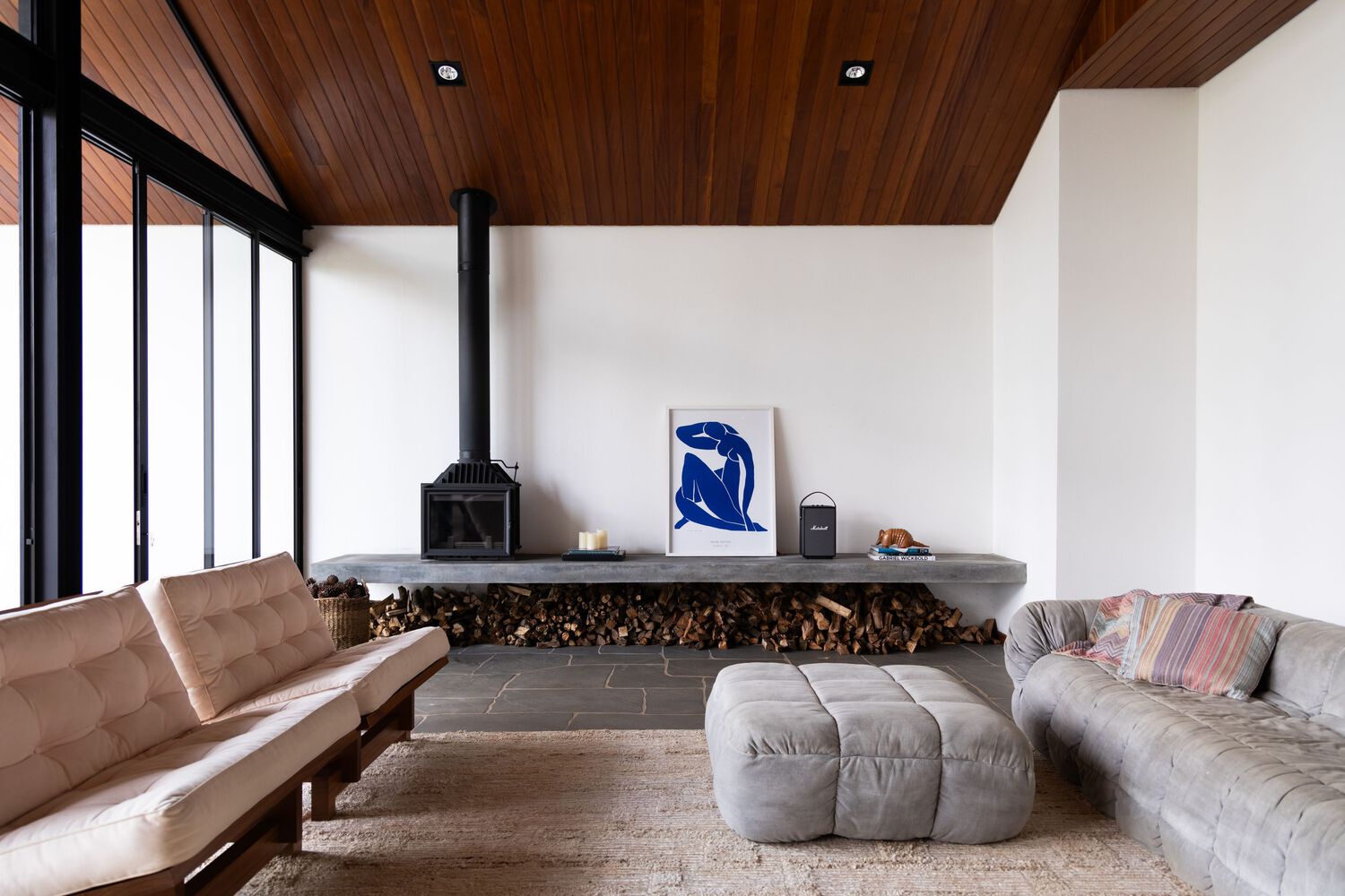 Naturalne materiały, takie jak drewno i kamień, są używane do pokrycia budynku i ochrony go przed dużą wilgotnością, wynikającą z bliskości lasu. Sypialnie są ogrzewane dzięki kontrolowanemu nasłonecznieniu, natomiast strefa dzienna, z centralnym kominkiem, zapewnia przyjemne ciepło w chłodniejszych miesiącach.