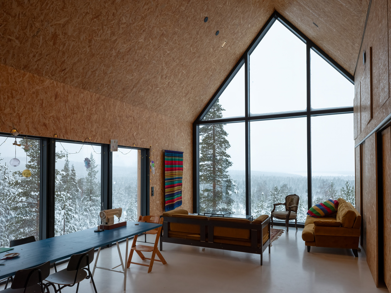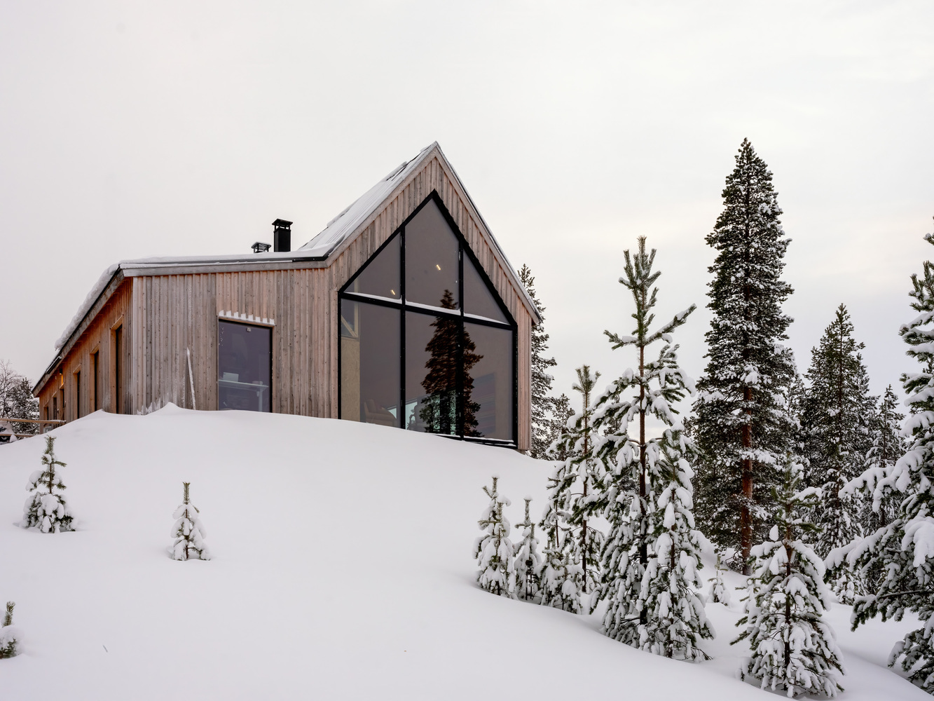 Dom powstał w Inari, na dalekiej północy Finlandii, w miejscu, gdzie surowy krajobraz jezior i lasów wyznacza rytm codzienności. Otoczenie sprzyja wyciszeniu i skupieniu, a bliskość natury odgrywa kluczową rolę w odbiorze architektury. Projekt autorstwa Pirinen Salo Oy czerpie z lokalnego kontekstu, zarówno geograficznego, jak i emocjonalnego, nawiązując do osobistych wspomnień inwestora związanych z regionem Savo w środkowej Finlandii.