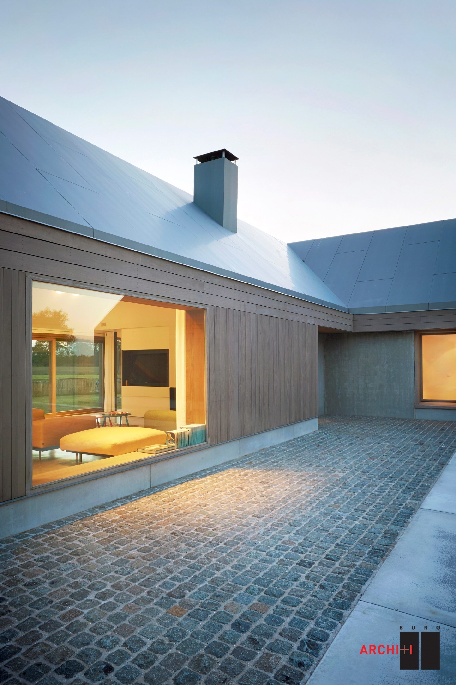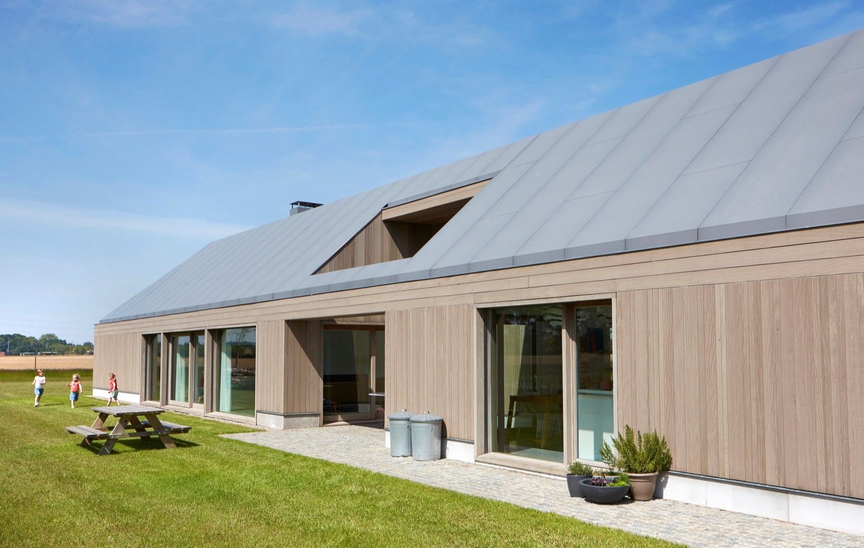 W regionie Roeselare w Belgii tradycyjne farmy składały się zazwyczaj z dwóch budynków ustawionych równolegle lub prostopadle, jednak w tym projekcie architekci zdecydowali się na odważne odejście od schematu. Powstał dom w kształcie litery „L”, ustawiony naprzeciwko istniejącej zabudowy gospodarczej, w którym to część mieszkalna przejęła nadrzędną rolę w układzie całej farmy. Centralnym punktem działki stała się nowoczesna stodoła, pełniąca funkcję swoistej osi orientacyjnej i wizualnej podstawy całego założenia. Prosta bryła oraz zastosowanie współczesnych materiałów, takich jak drewno i cynk, sprawiają, że budynek stanowi nowoczesną interpretację historycznej architektury rolniczej, harmonijnie wpisując się w krajobraz, a jednocześnie subtelnie wyróżniając się na tle tradycyjnych ceglanych stodół.