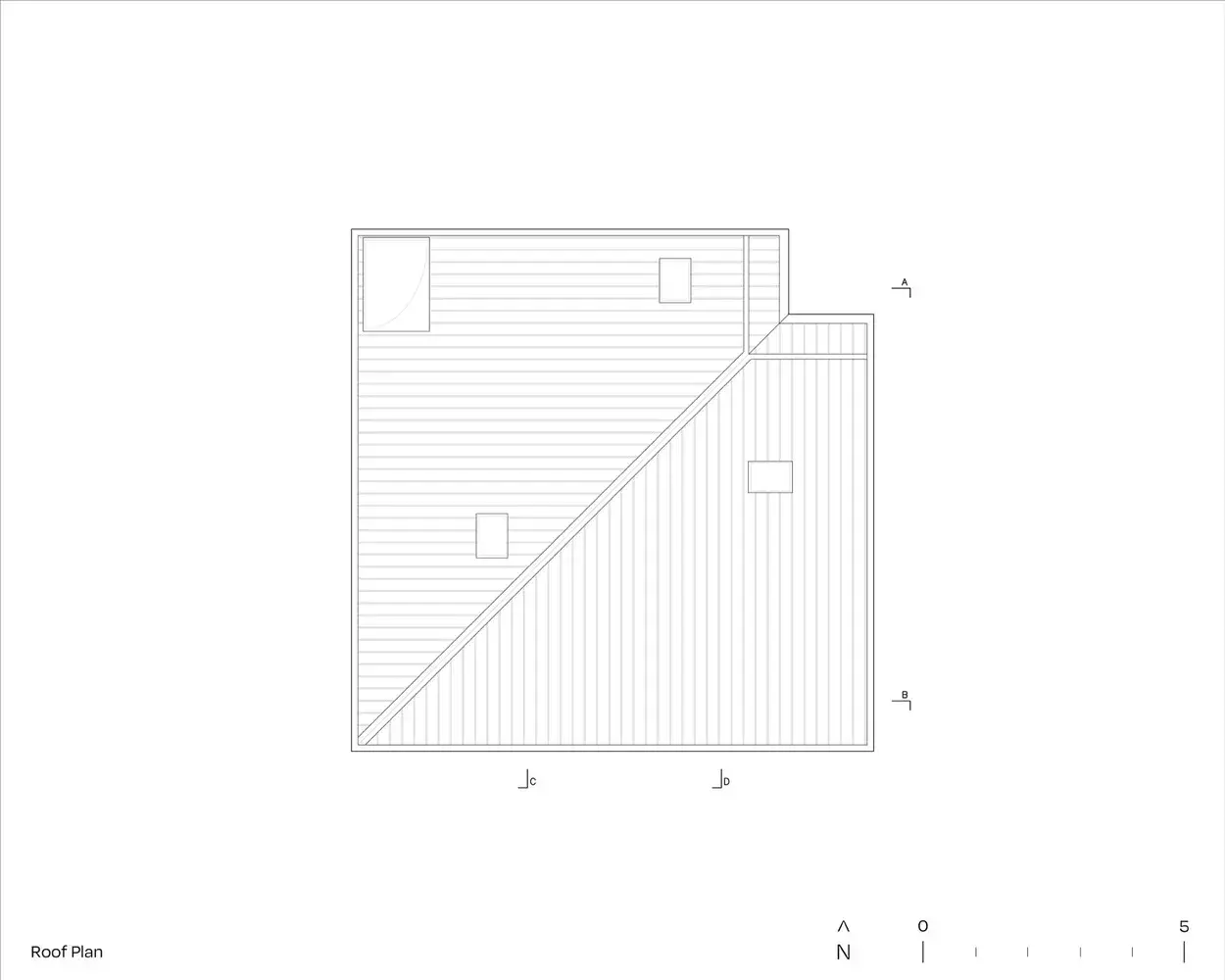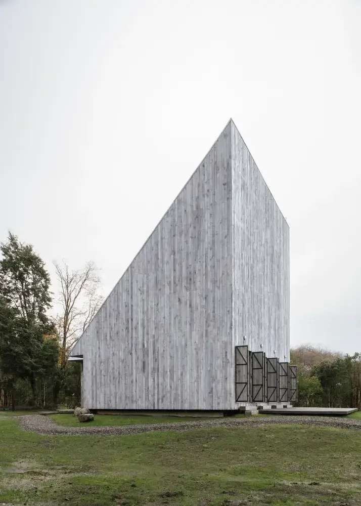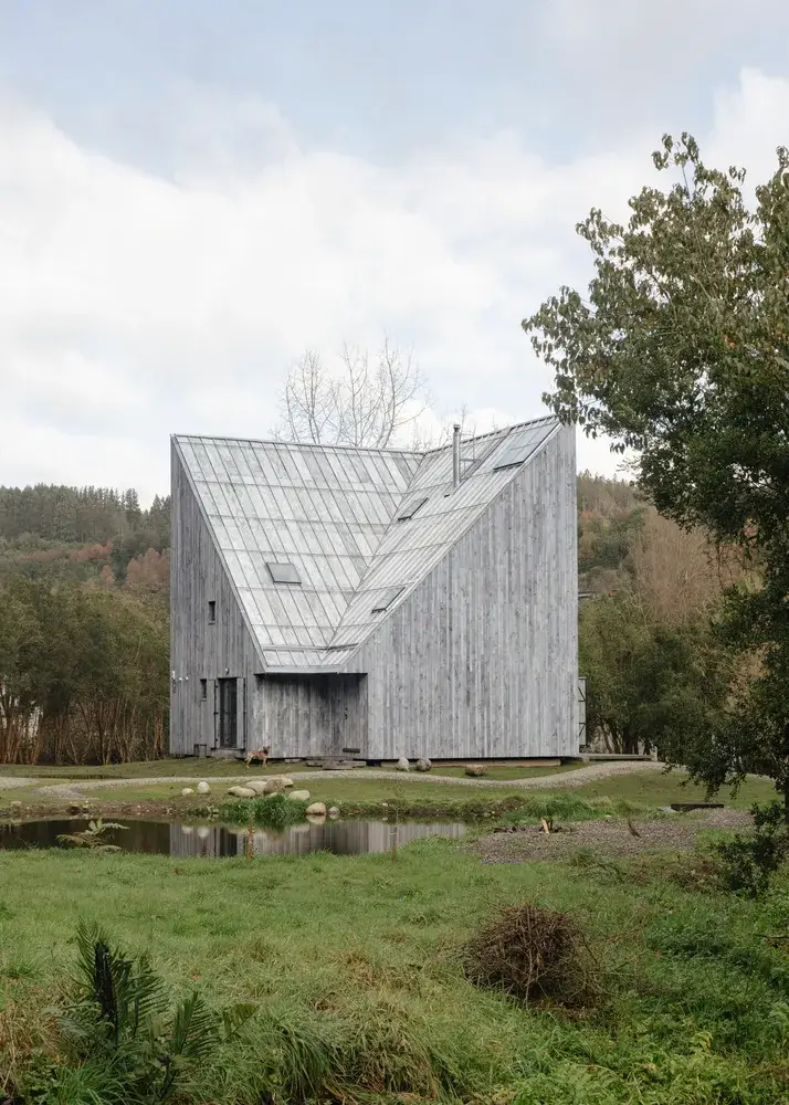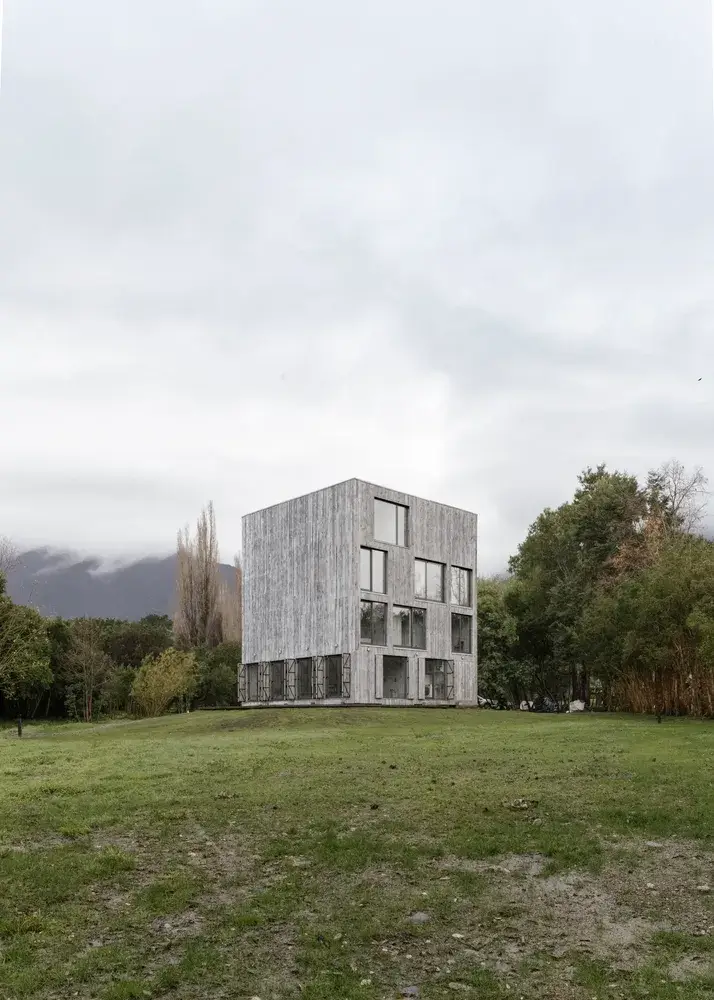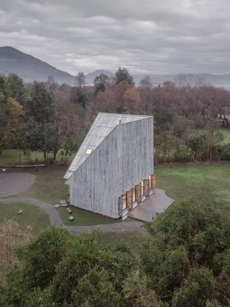 Znajduje się na południu Chile, na naturalnej polanie na długim kawałku ziemi, który kończy się jeziorem. Cały projekt obraca się wokół artykulacji przeciwstawnych par. Dwie większe fasady otwierają się na dalekie widoki na jezioro i teren na parterze. Dwie mniejsze są niemal całkowicie ślepe, osłaniając wejście w dolnym rogu. Minimalizm, ale nie nuda.