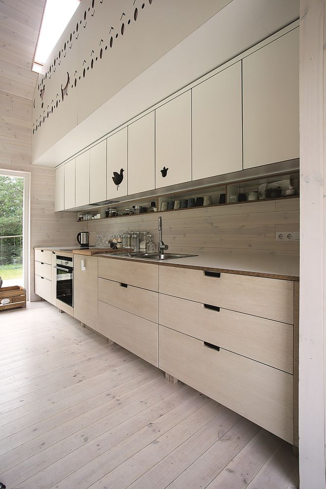 Architektura inspirowana naturą i litewską tradycją widoczna jest zarówno na zewnątrz, jak i we wnętrzach domu. Elewacje oraz dekoracje wnętrza zdobią elementy sztuki ludowej – motywy zwierząt, ptaków i słoneczne ornamenty. Symbolizują one szczęście, wspólnotę i spójność życia rodzinnego. Dzięki temu domek myśliwski jest nie tylko miejscem odpoczynku, ale również przestrzenią pielęgnującą lokalne dziedzictwo i wartości życia blisko natury.