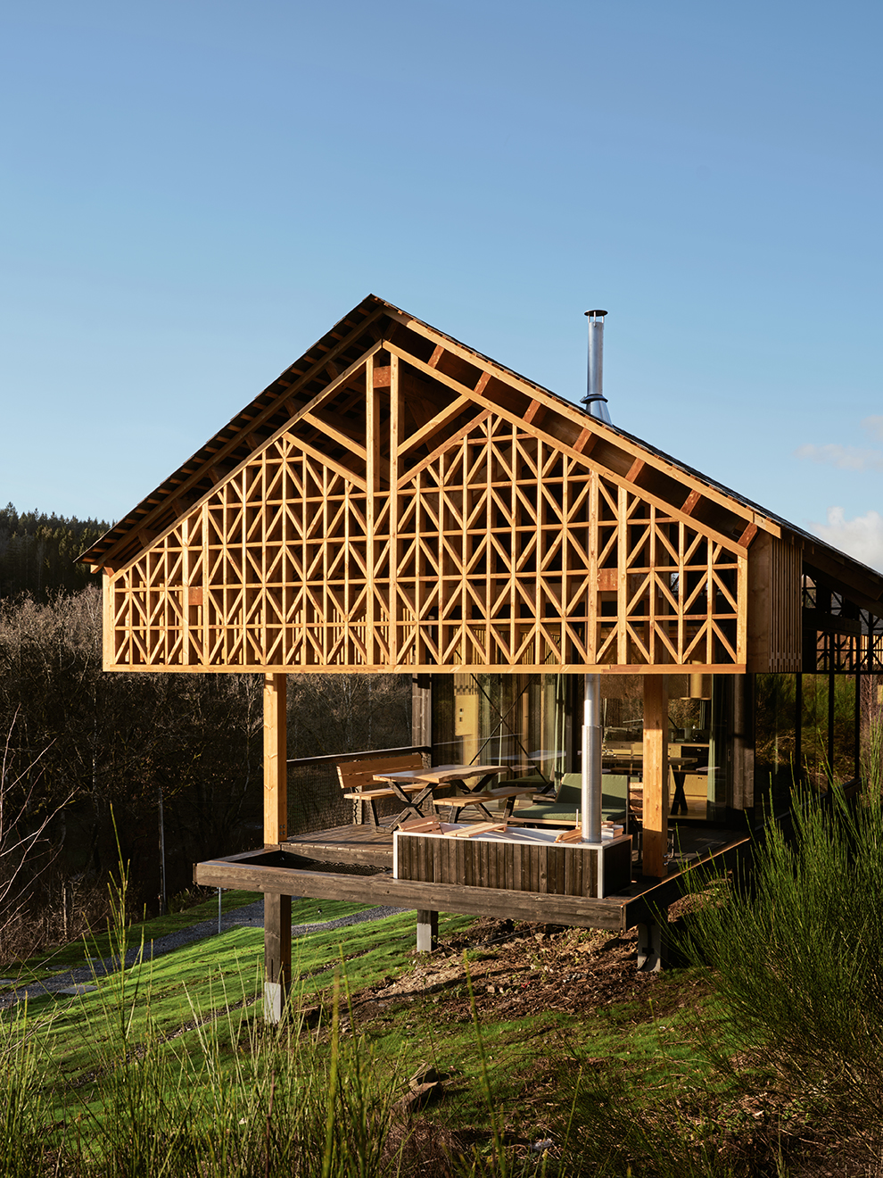 Projekt łączy ideę „slow living” z nowoczesnym komfortem – oferuje możliwość odpoczynku w ciszy, kontaktu z naturą i odcięcia się od codzienności, bez rezygnacji z wygody. Naturalne materiały, lokalne surowce i demontowalna konstrukcja wpisują się również w podejście zrównoważonego budownictwa.
