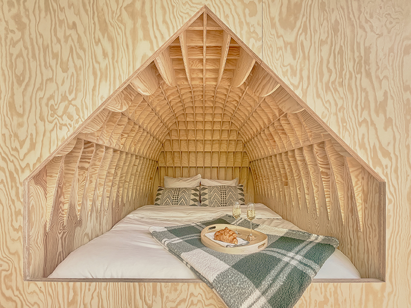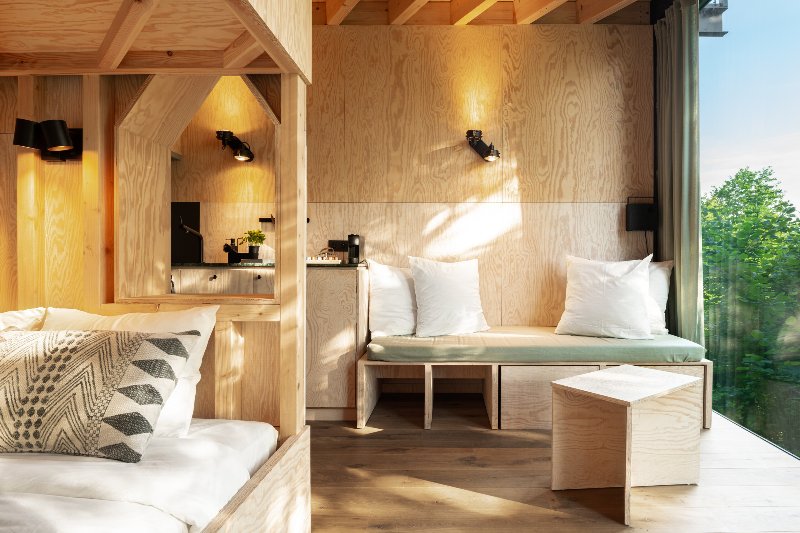 Forma kabin przypomina precyzyjnie złożoną strukturę – architekci inspirowali się zarówno architekturą szwajcarską, jak i japońską, co widać w sposobie łączenia elementów oraz minimalizmie detalu. Każdy centymetr przestrzeni został maksymalnie wykorzystany, co pozwoliło stworzyć funkcjonalne, kompaktowe wnętrza.