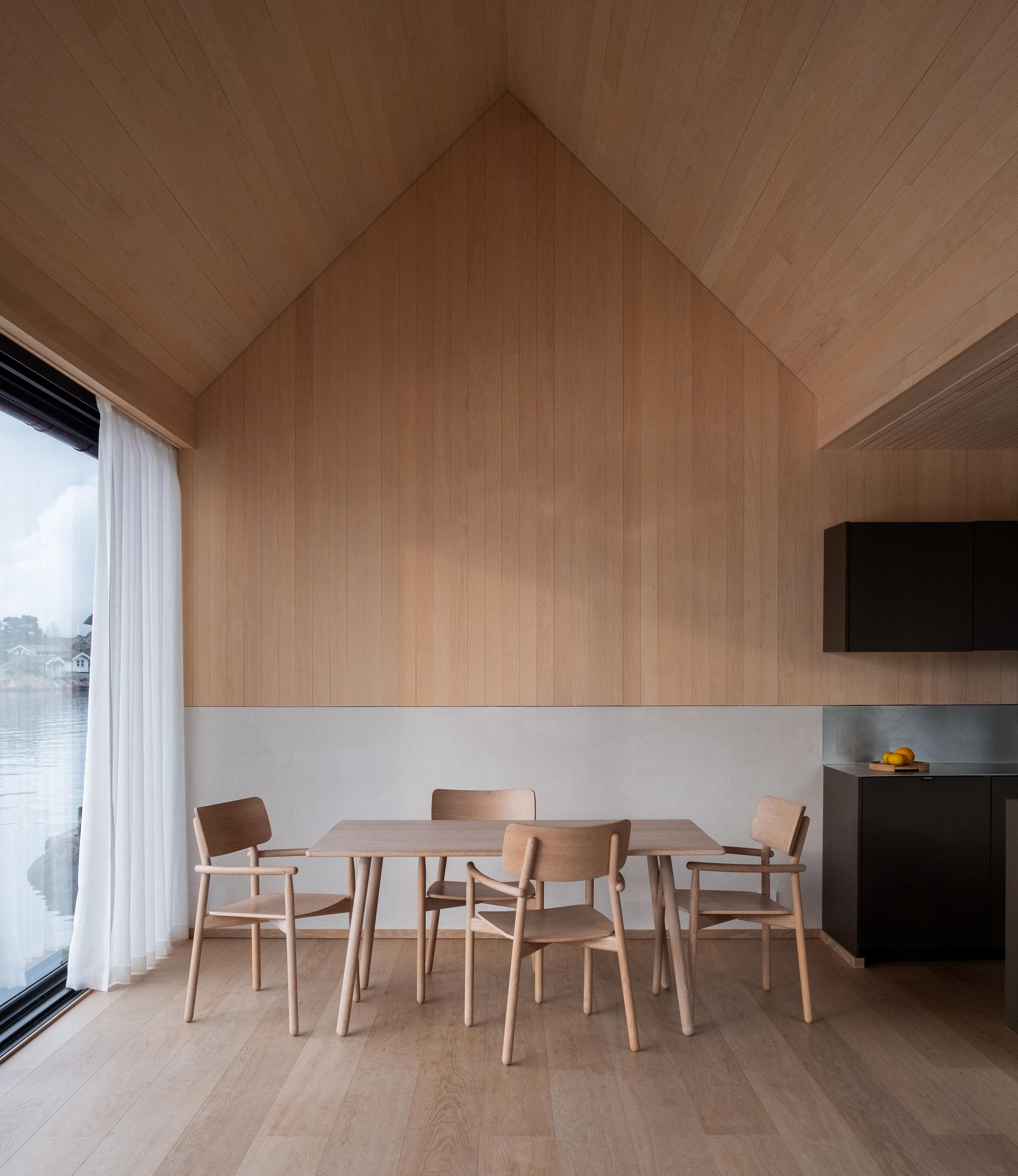Hytte Portør został zaprojektowany z myślą o harmonii z surowym, norweskim krajobrazem. Minimalistyczna forma i prostota bryły nawiązują do tradycyjnych domków letniskowych, jednocześnie wprowadzając nowoczesne elementy, takie jak przeszklenia na pełną wysokość ścian. Dzięki temu wnętrze i zewnętrze płynnie się przenikają, oferując mieszkańcom wyjątkowe widoki na nadmorskie pejzaże.
