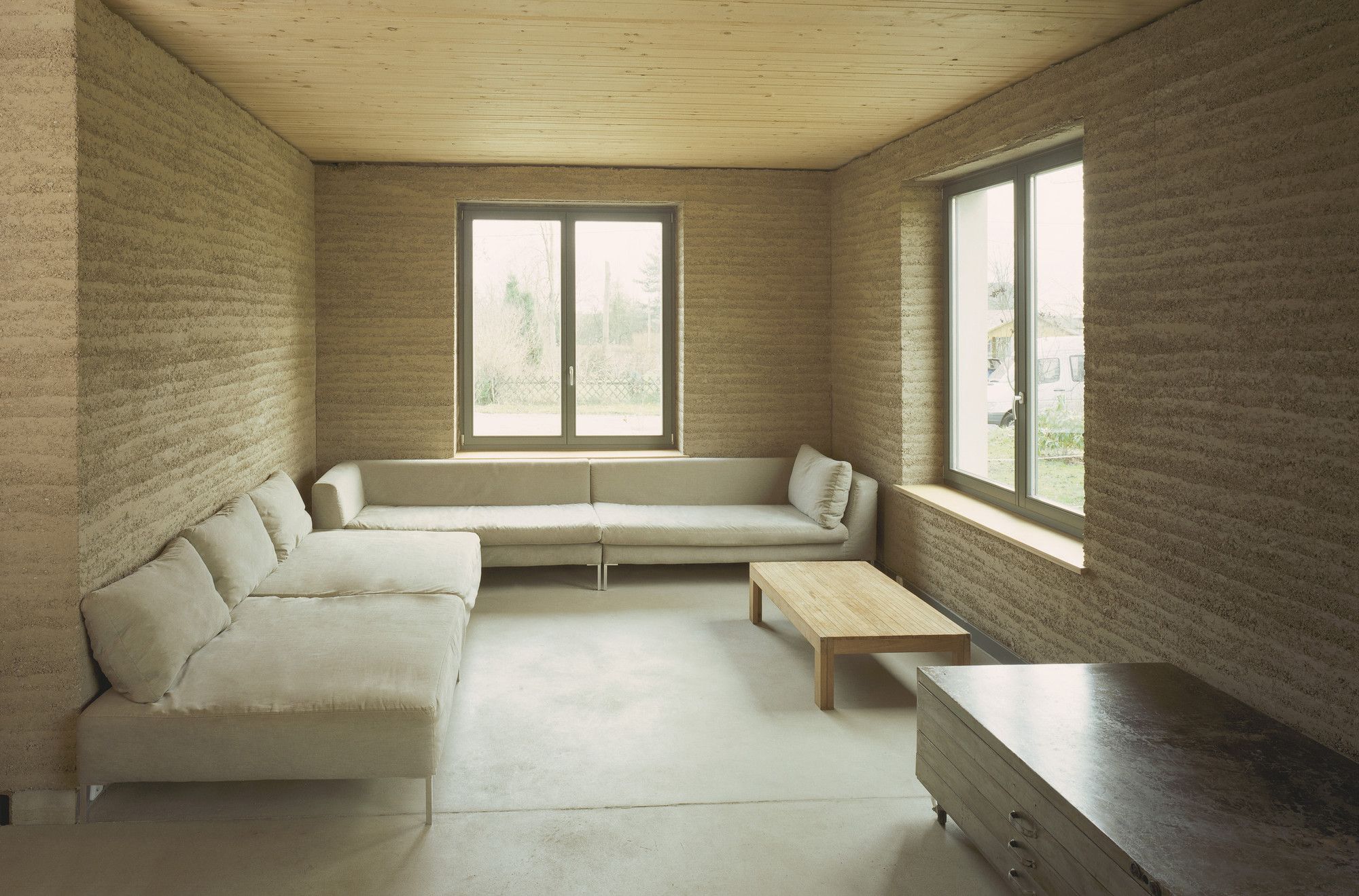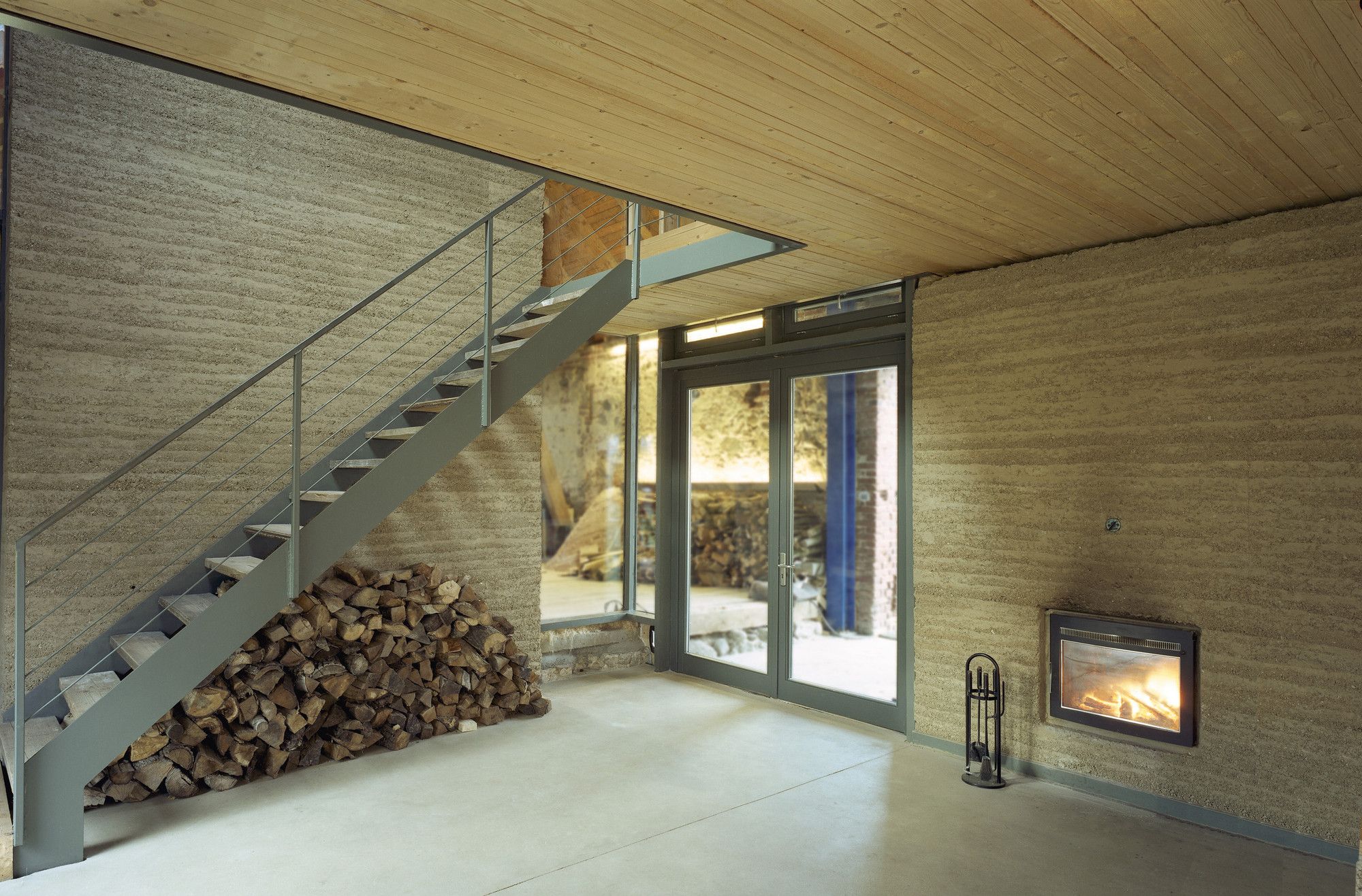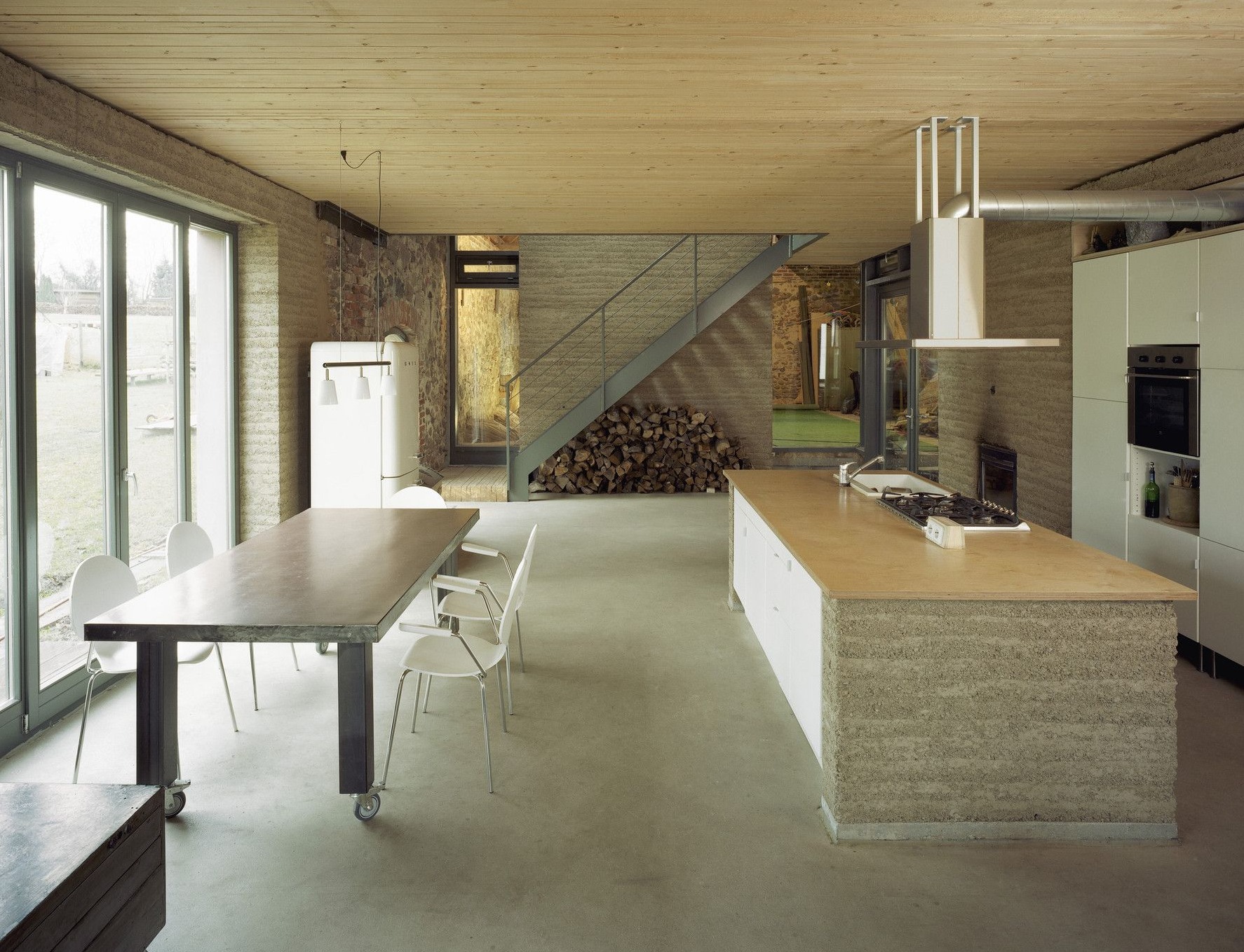 Parter domu zamknięty jest ścianami z ubitej ziemi posadowionymi na żelbetowych fundamentach — to technika znana od wieków, lecz rzadko stosowana we współczesnym budownictwie. Ihlow House jest pierwszym od lat 50. XX wieku domem w Niemczech wzniesionym w całości w tej technologii. Specjalnie zaprojektowane docieplenie ścian ziemnych zostało tu po raz pierwszy przetestowane. Piętro wykonano w konstrukcji drewnianej, wypełnionej włóknem konopnym, a elewacje docieplono panelami z konopi. Dzięki wykorzystaniu naturalnych materiałów, surowców z odzysku i energooszczędnych rozwiązań powstał w pełni zrównoważony, komfortowy dom, który redefiniuje pojęcie, jakim dziś jest nowoczesna stodoła.