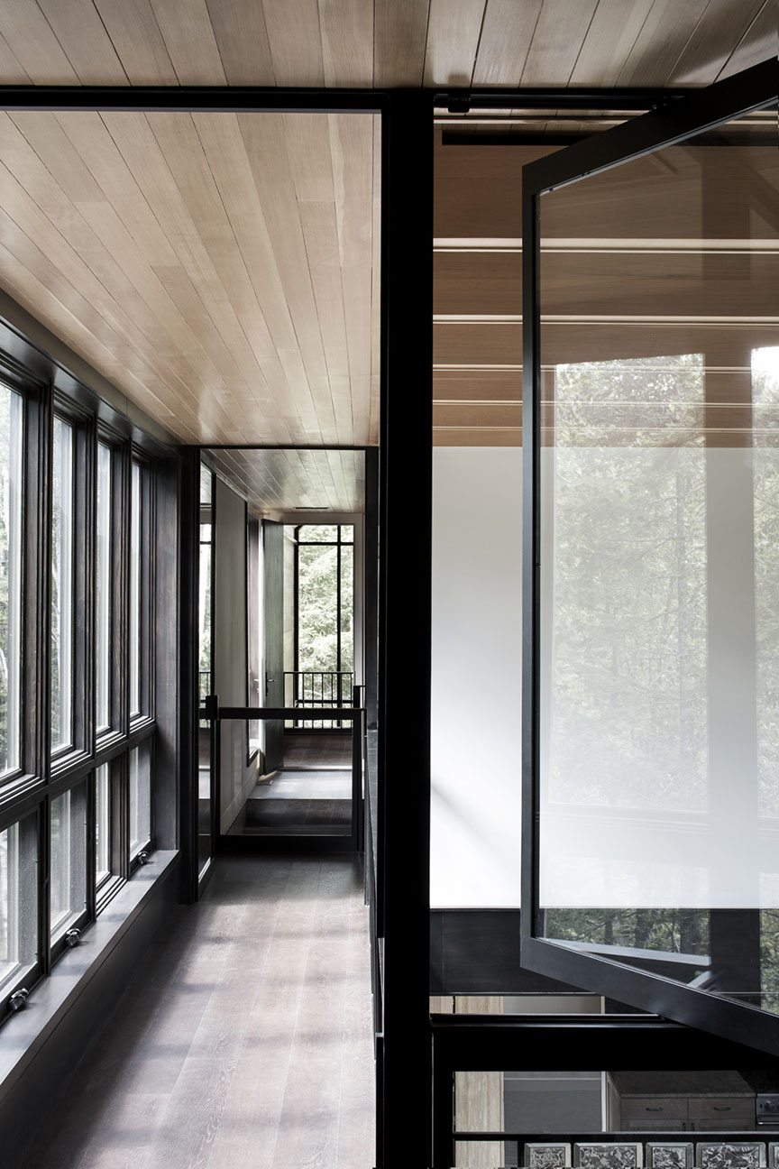 Zachowane mokradła i widok na jezioro nadają projektowi unikalny charakter. Przeszklona galeria, chroniąca przed komarami, pełni funkcję rodzinnego centrum życia. Les Marais to współczesna odpowiedź na tradycyjną architekturę w stylu nowoczesnej stodoły – łącząca naturę, funkcjonalność i prostotę formy.