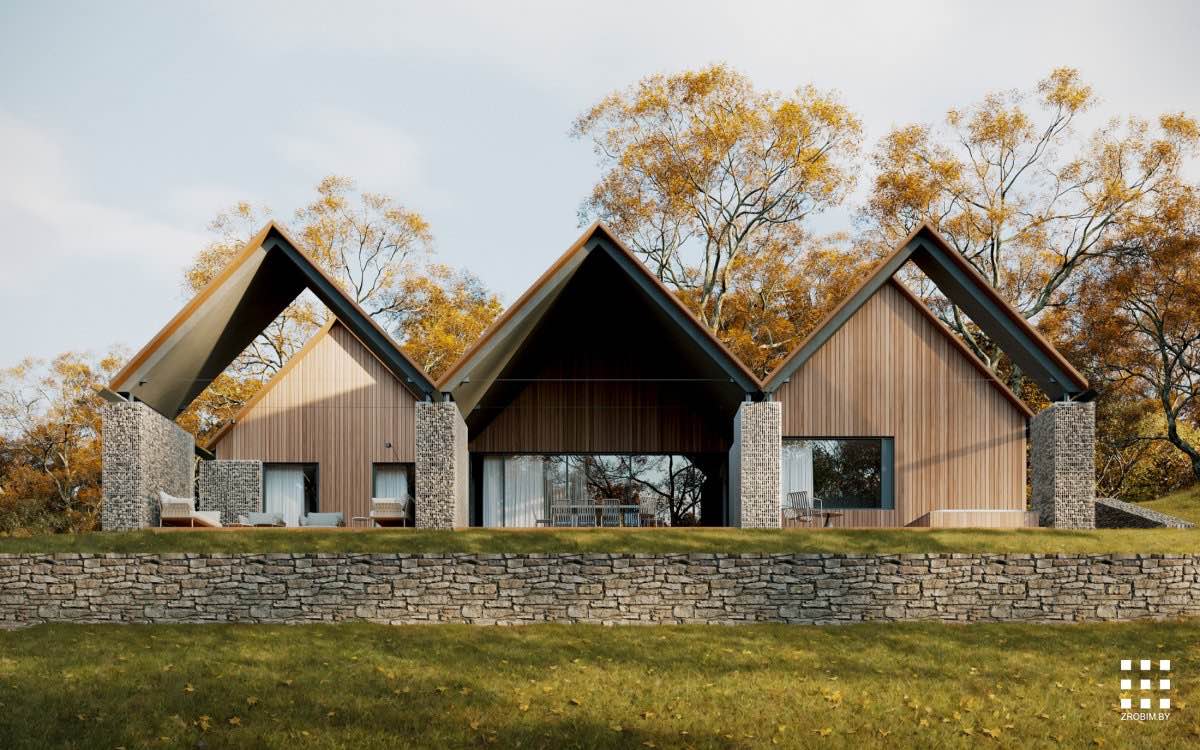 Bryła Immigrant House składa się z trzech połączonych ze sobą domów typu barnhouse. Każdy z nich posiada inną wysokość i delikatnie przesunięty układ, co tworzy rytm oraz architektoniczną ekspresję. Mimo tej dynamiki forma pozostaje prosta i logiczna, a sama konstrukcja — ekonomiczna i łatwa w realizacji. Przestrzenie pomiędzy segmentami wykorzystano jako tarasy, płynnie przechodzące w naturalny krajobraz.