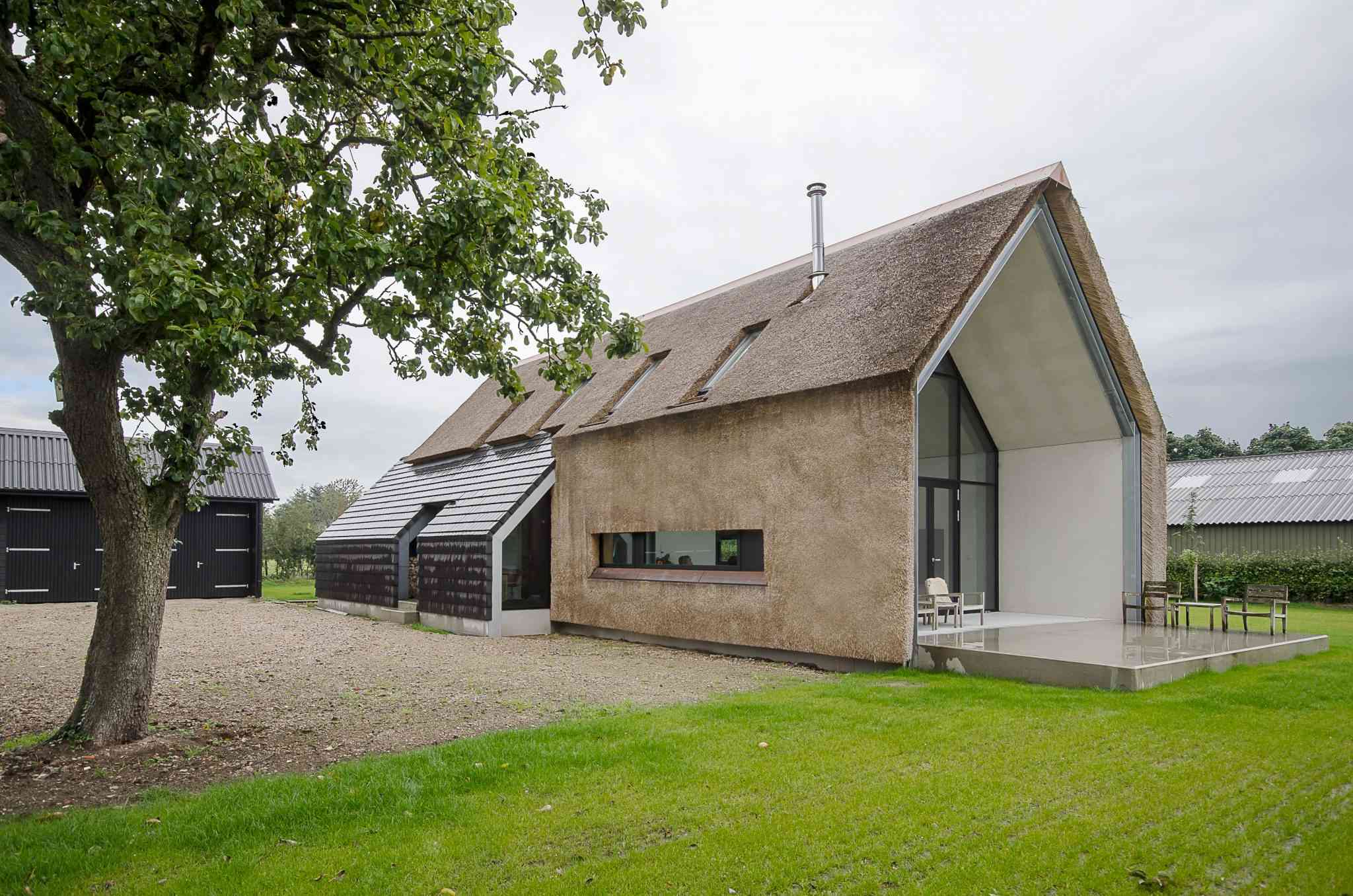 W pobliżu Zwolle powstał wyjątkowy dom na wsi, który łączy minimalistyczną formę z wyjątkowym komfortem. Ta nowoczesna stodoła imponuje swoim wyglądem, harmonijnie wpisując się w otoczenie. Duży loft sprawia, że wnętrze wydaje się lekkie i przestronne, a dach ze strzechy płynnie przechodzi w tradycyjną dachówkę. Podniesiony o 40 cm od poziomu gruntu budynek zapewnia panoramiczne widoki na krajobraz, w pełni integrując mieszkańców z przyrodą. Architekci zastosowali nowatorską metodę budowy, wykorzystując betonowe elementy szerokopłytowe z 24-centymetrową warstwą izolacyjną, co zapewnia doskonałą ochronę przed upałem, zimnem, hałasem i ogniem.