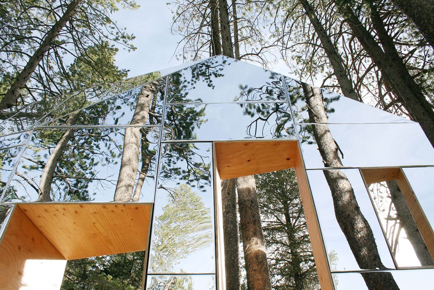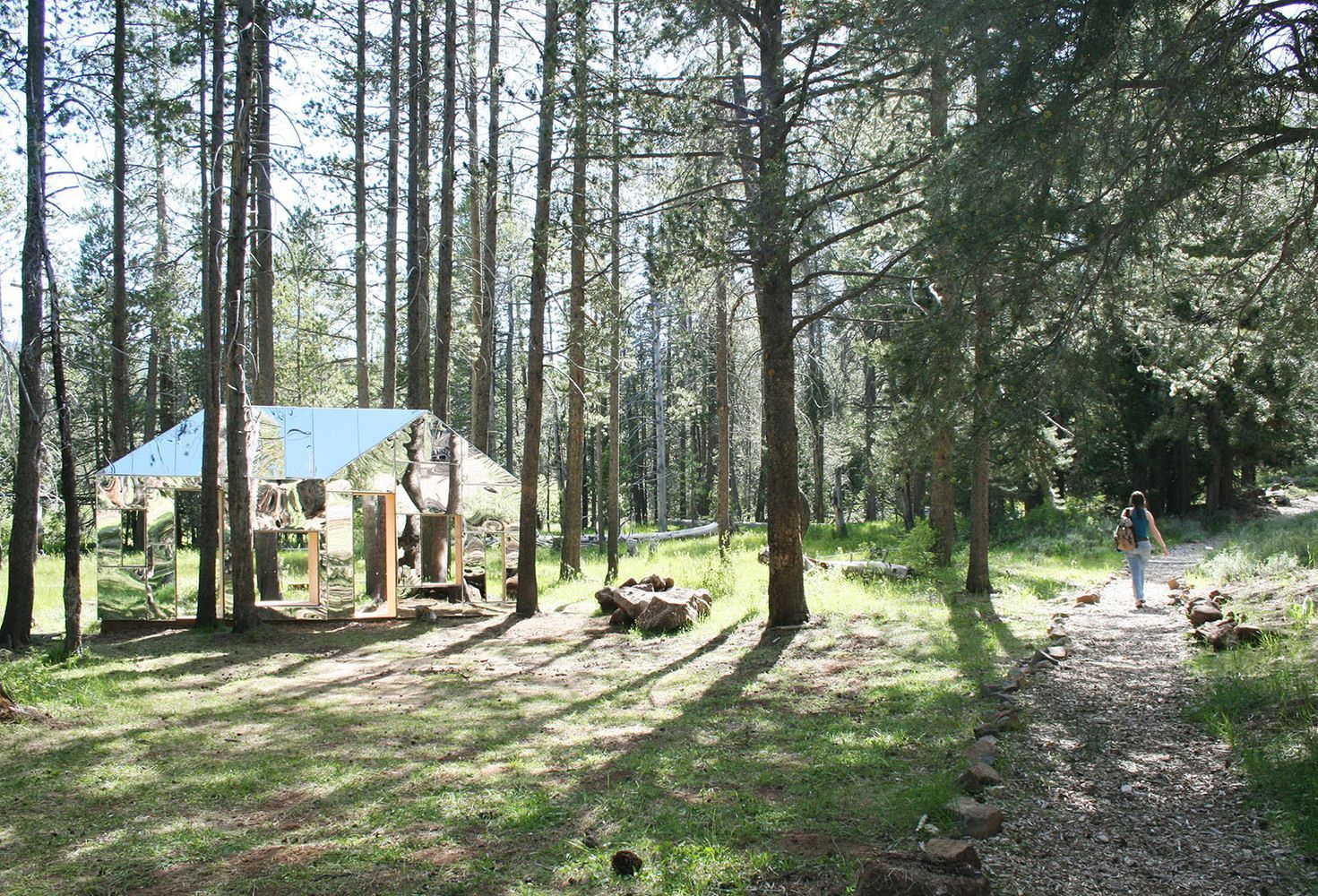 Niewidzialna stodoła stapiająca się z krajobrazem lasu