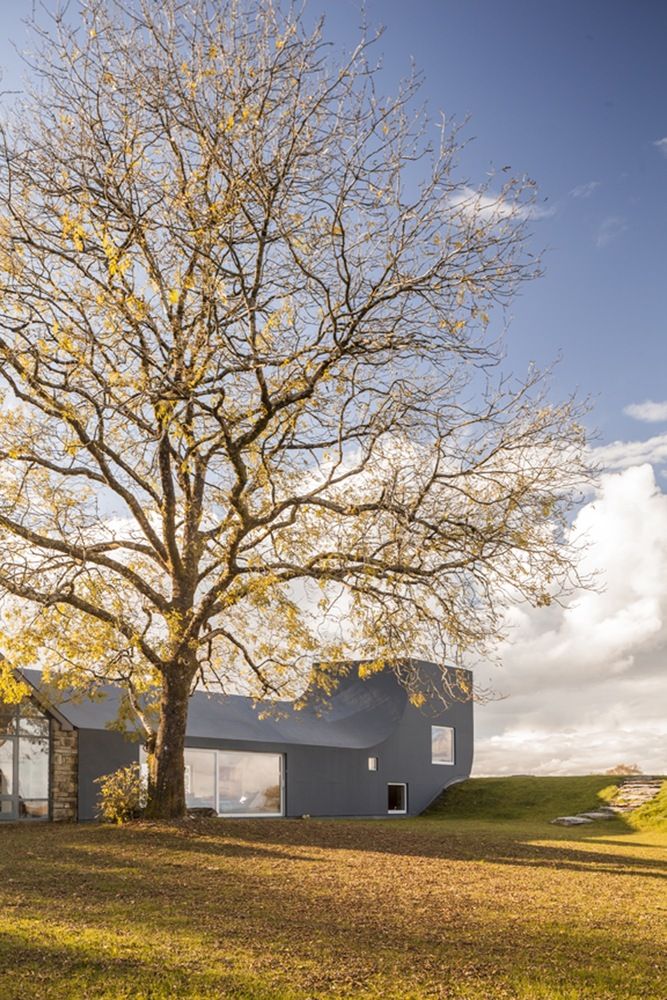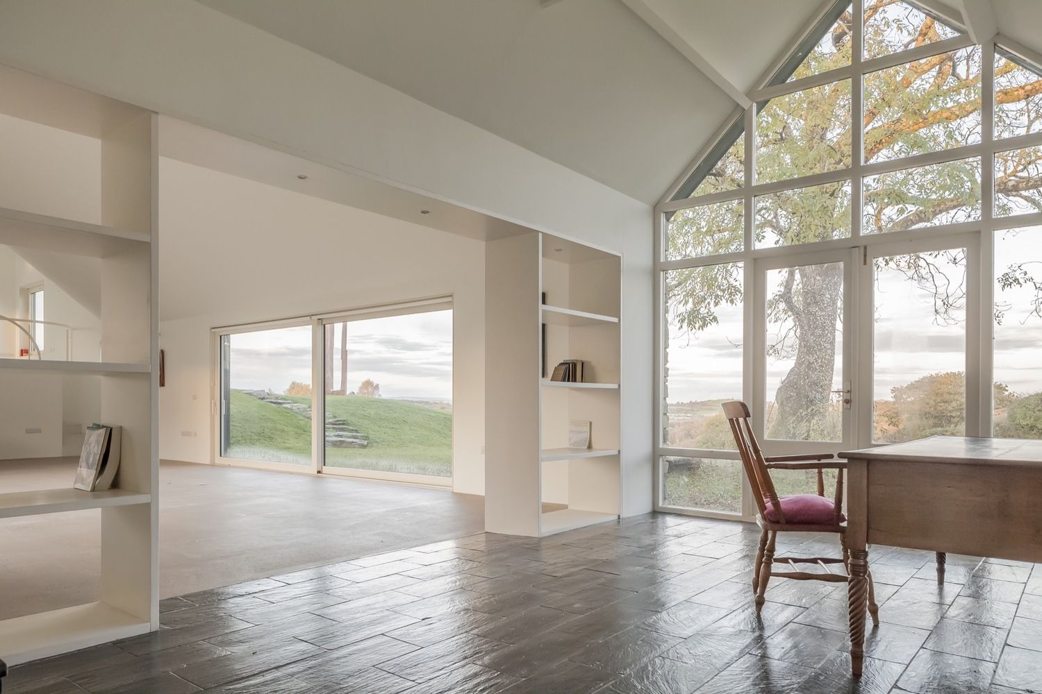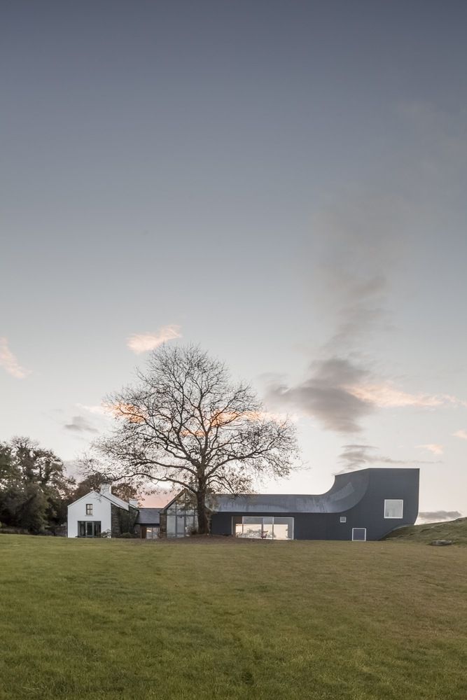 W malowniczym krajobrazie irlandzkiej wsi, pośród łagodnych wzgórz i otwartych przestrzeni, powstała wyjątkowa rozbudowa domu jednorodzinnego należącego do neurologa i psychiatry. Inwestor postawił sobie za cel powiększenie istniejącego budynku o nowe pokoje oraz główną sypialnię, która została usytuowana na uniesionej części wzgórza. Takie rozwiązanie architektoniczne pozwoliło nie tylko uzyskać spektakularne widoki na irlandzki krajobraz, lecz także wzmocnić relację domu z otaczającą naturą. Projekt rozbudowy domu na wsi opiera się na harmonijnym połączeniu architektury i topografii terenu, czerpiąc z idei, jakie często reprezentuje nowoczesna stodoła — prostota formy, silne powiązanie z krajobrazem i funkcjonalność.