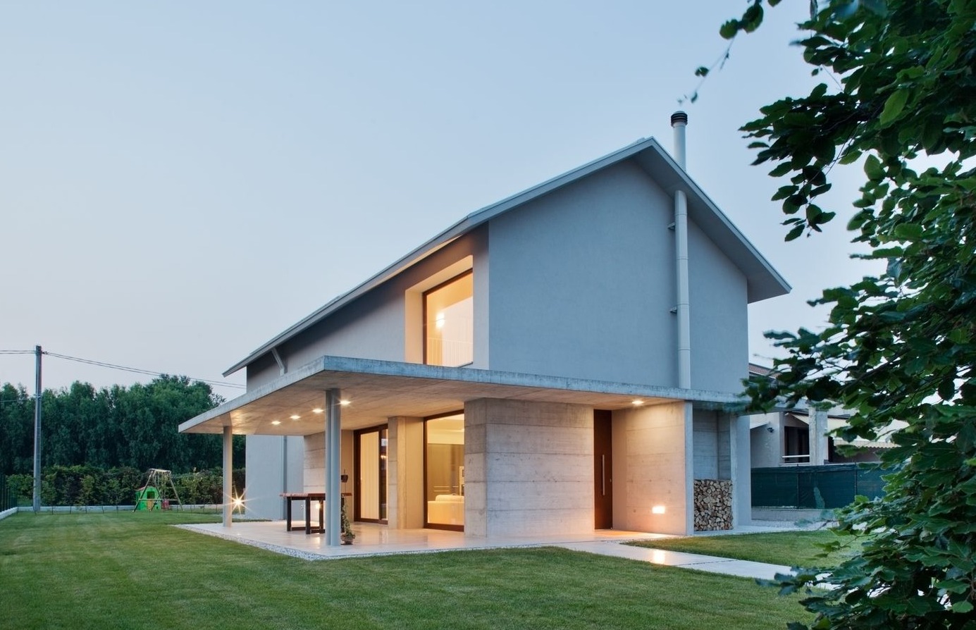 Ten wolnostojący dom jednorodzinny powstał na dużej działce w Fiesso d’Artico, niewielkiej miejscowości położonej nad rzeką Brenta w prowincji weneckiej. Projekt opracowany przez włoską pracownię MIDE architetti wyróżnia się czystą, minimalistyczną bryłą oraz precyzyjnymi liniami, które uzyskano m.in. dzięki ukryciu systemu rynien w konstrukcji dachu. Spokojna geometria i prostota formy wpisują budynek w nurt współczesnej architektury mieszkaniowej, nawiązującej do idei takich jak nowoczesna stodoła, gdzie liczy się klarowna forma i funkcjonalność.