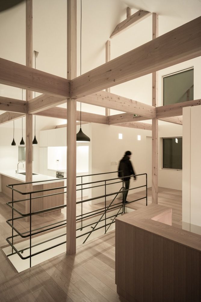 Dom to perfekcyjny kwadrat o otwartej przestrzeni, podzielonej jedynie belkami i kolumnami. Główna sypialnia i łazienka mogą tworzyć przestronny apartament wzdłuż wschodniej ściany. Wejście płynnie prowadzi na taras, będący „bramą” do natury. Elementy konstrukcji i układ pomieszczeń emanują prostotą.