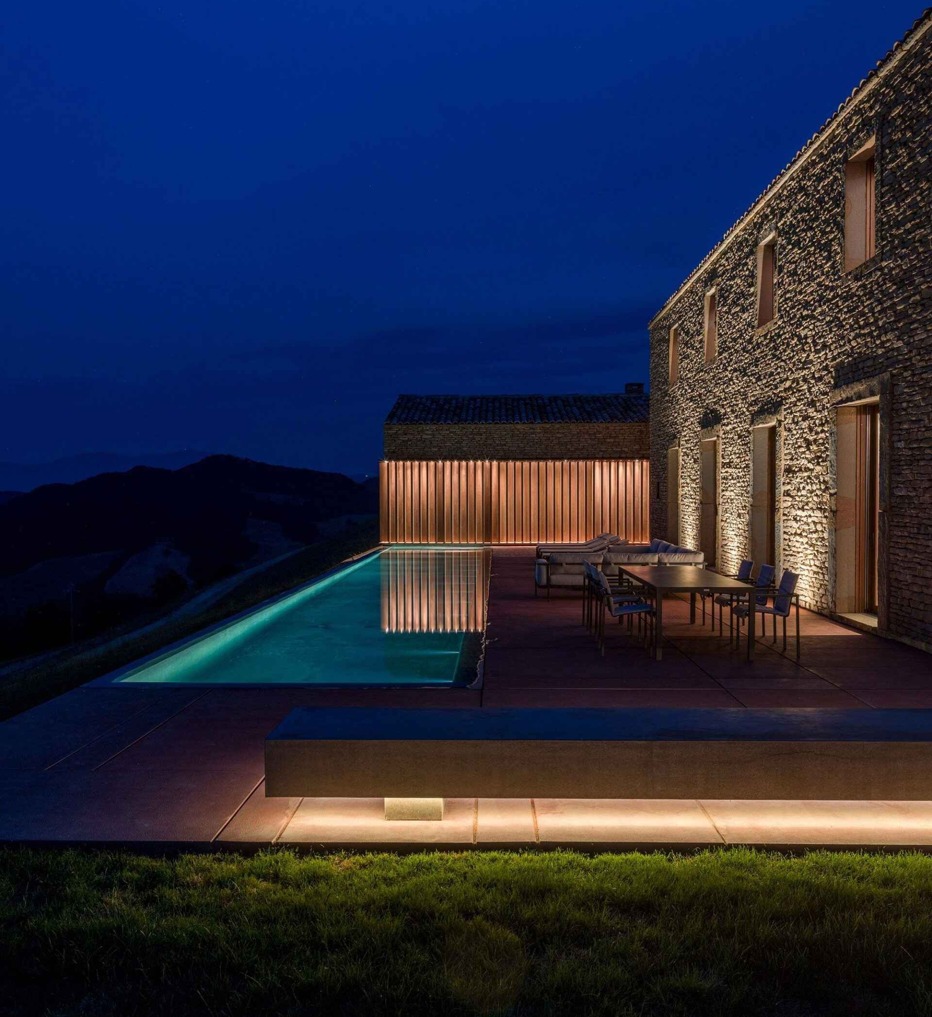 Ten kamienny dom w Urbino, położony na jednym z najwyższych wzgórz środkowych Włoch, stanowi wyważone połączenie tradycyjnej architektury regionalnej i nowoczesnego projektowania. Zaprojektowany przez GGA Architects, powstał w miejscu, gdzie wciąż widoczne są ślady dawnego budownictwa wiejskiego. Choć budynek jest bezsprzecznie współczesny, jego wiejski charakter, naturalne materiały i skala sprawiają, że doskonale wpisuje się w krajobraz. Lokalizacja zapewnia spektakularne widoki na pagórkowatą okolicę Urbino, czyniąc dom integralną częścią otaczającej przyrody. To podejście do architektury bliskie jest estetyce określanej dziś często jako nowoczesna stodoła.
