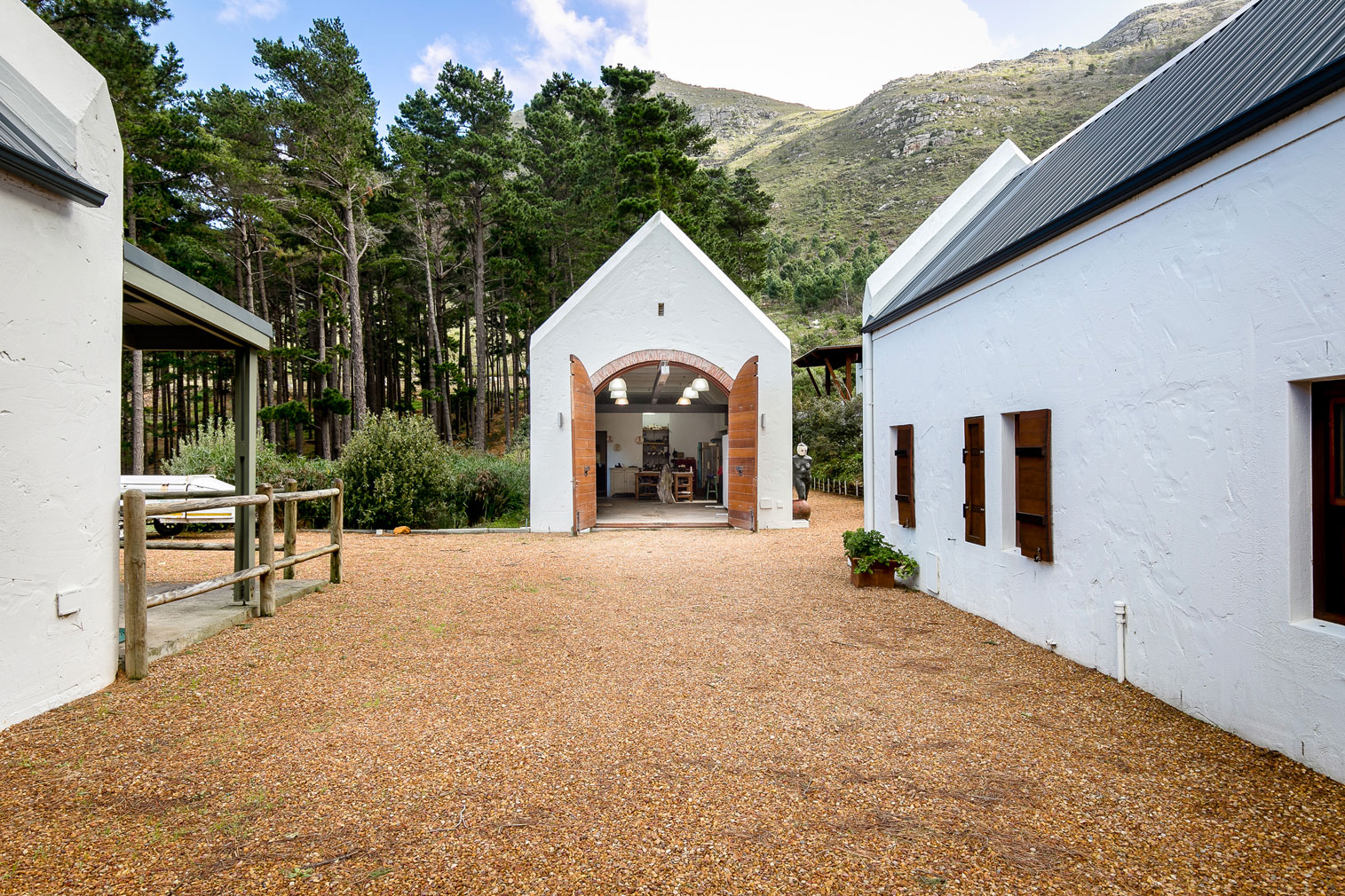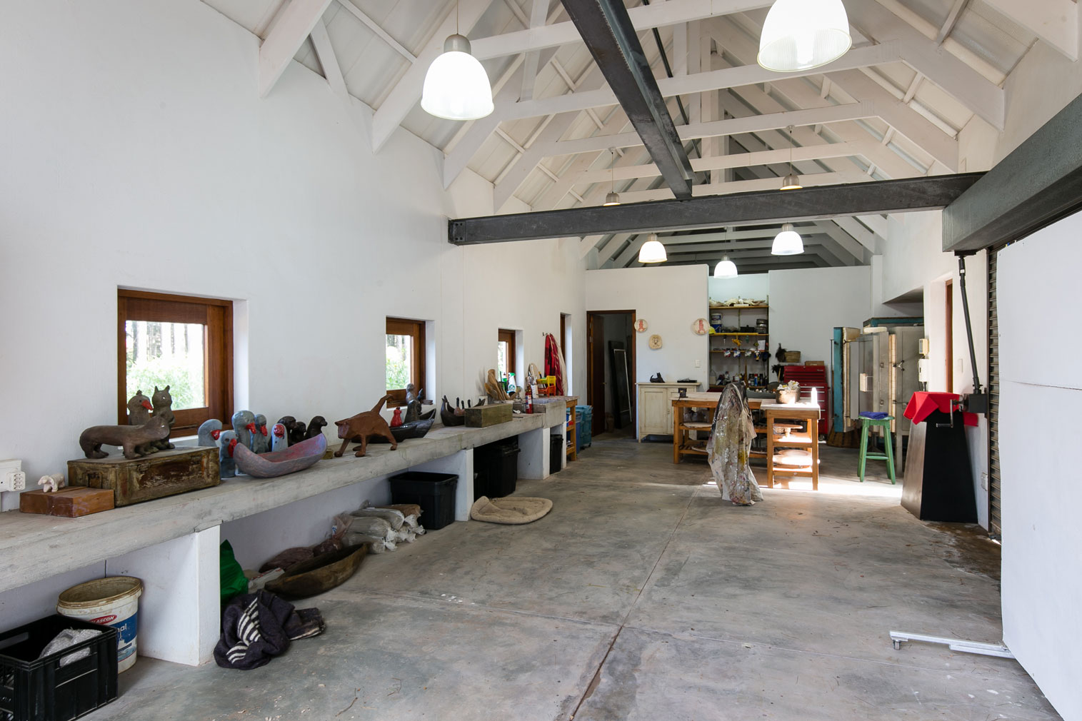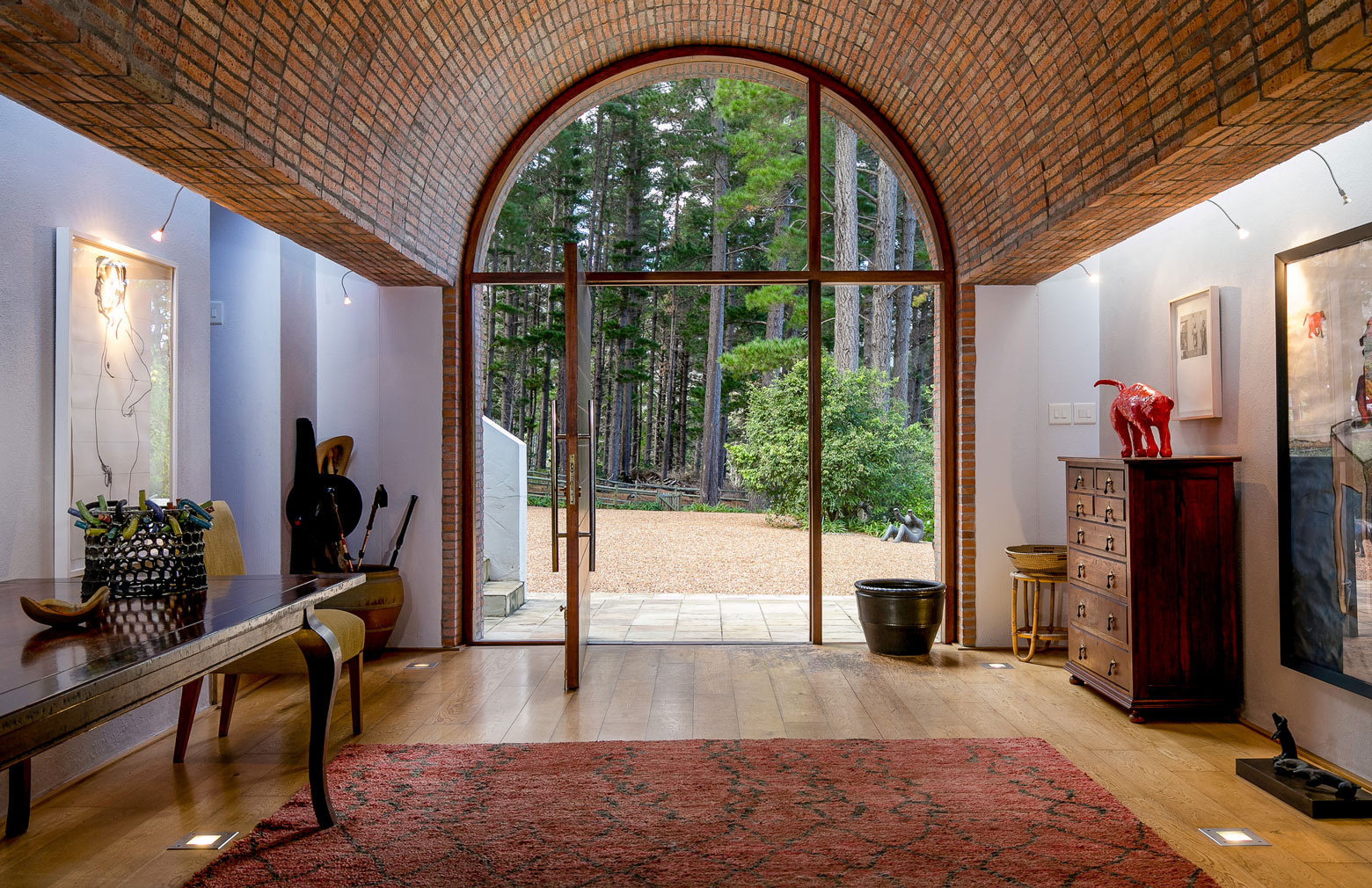Posiadłość obejmuje także studio artystyczne, stajnie, kwatery personelu, mały las oraz źródełko. Wnętrza, w tym wysokie, sklepione pomieszczenia mieszkalne, są oświetlone przez okna clerestory. Na zewnątrz znajduje się odkryty basen z tarasem, idealny do relaksu w malowniczym krajobrazie.
